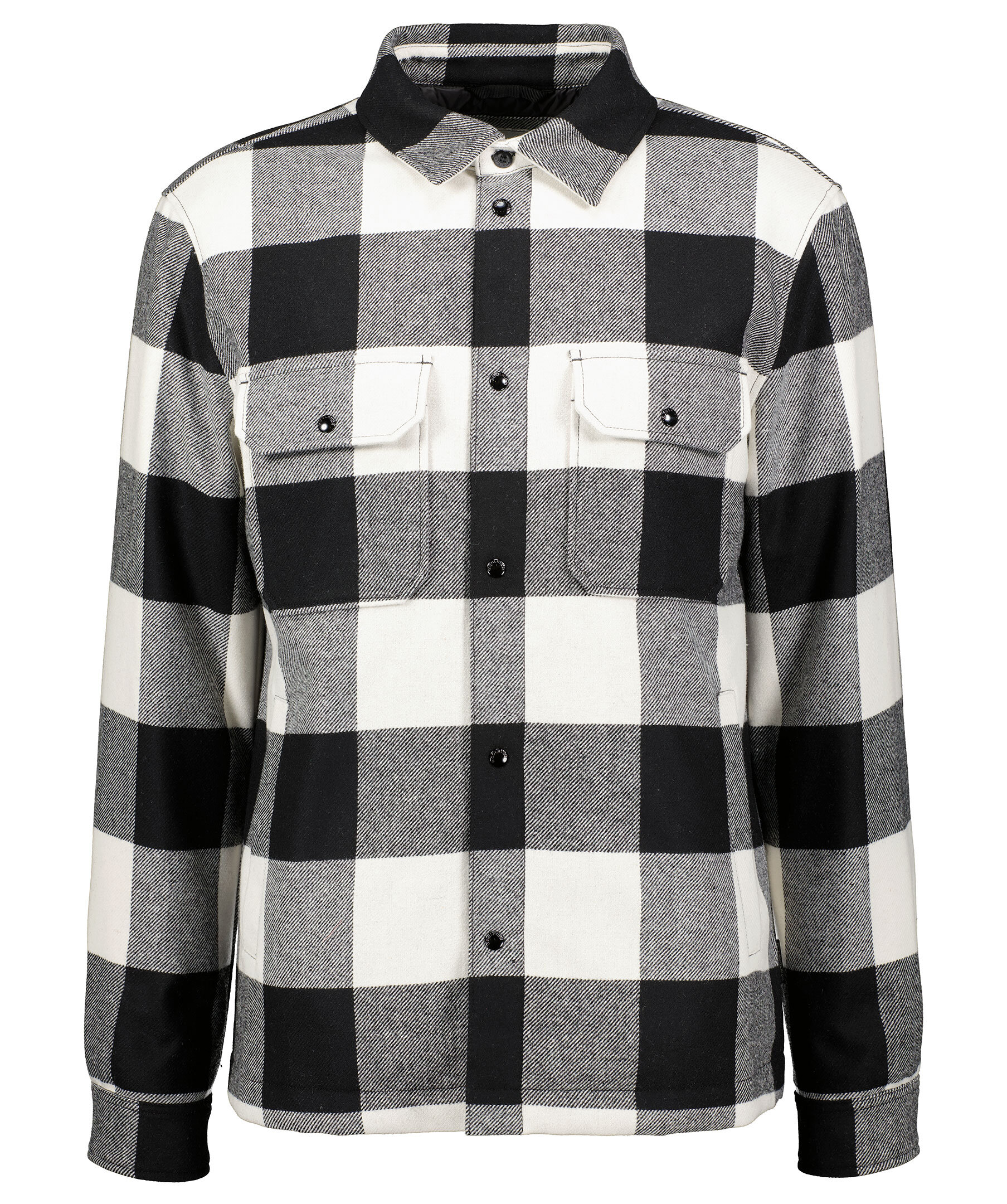 Vit och svart rutig dunvadderad overshirt från Woolrich. Stängs framtill med tryckknappar. Två bröstfickor som stängs med lock och tryckknappar, två fickor framtill som stängs med tryckknappar. Manschetter vid ärmslut. Tillverkad i ullblandning.