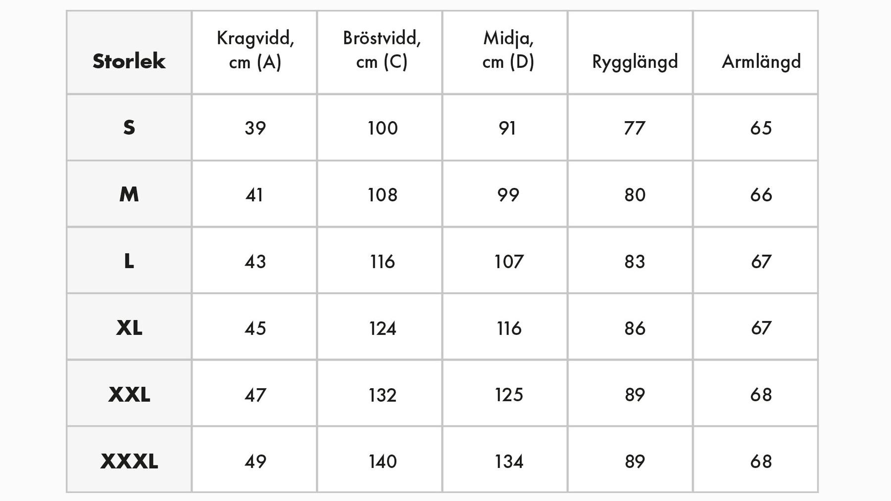Nu när du har alla dina mått kan du se i tabellen vilken skjorta som skulle passa dig bäst.