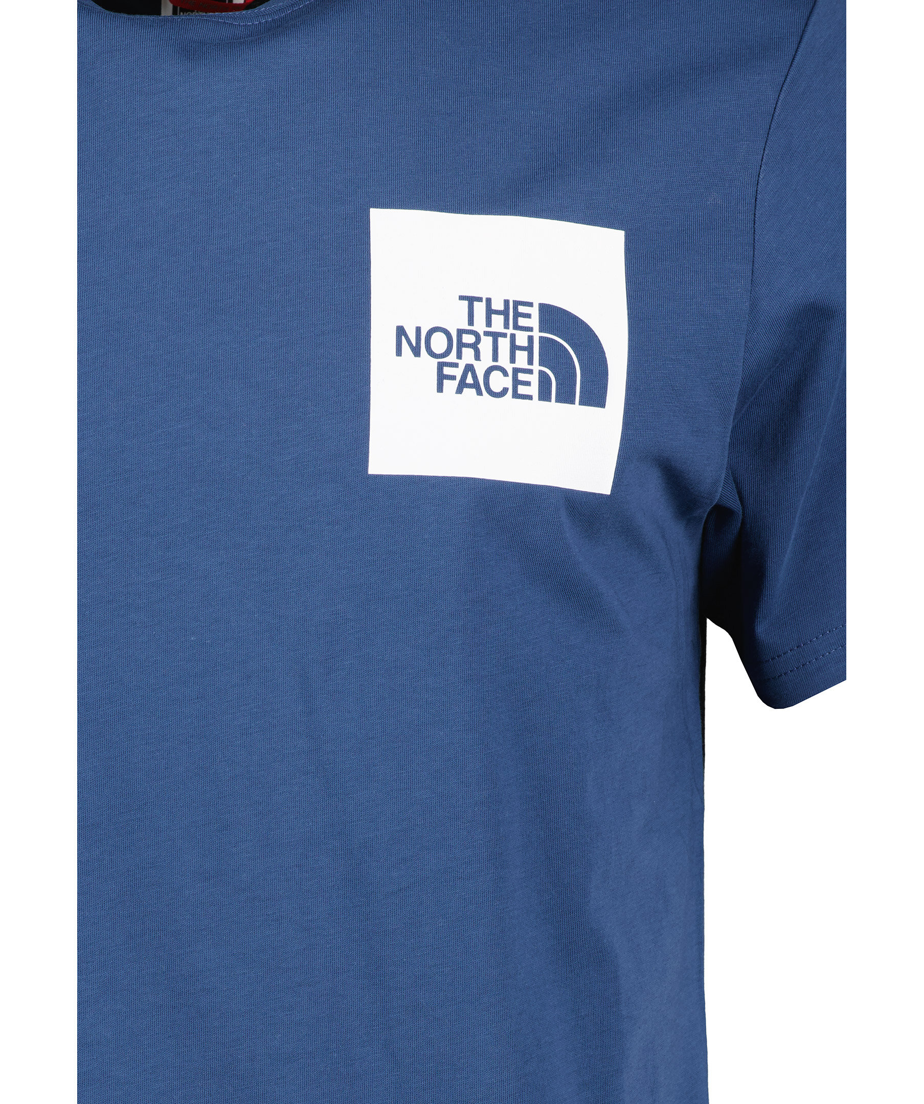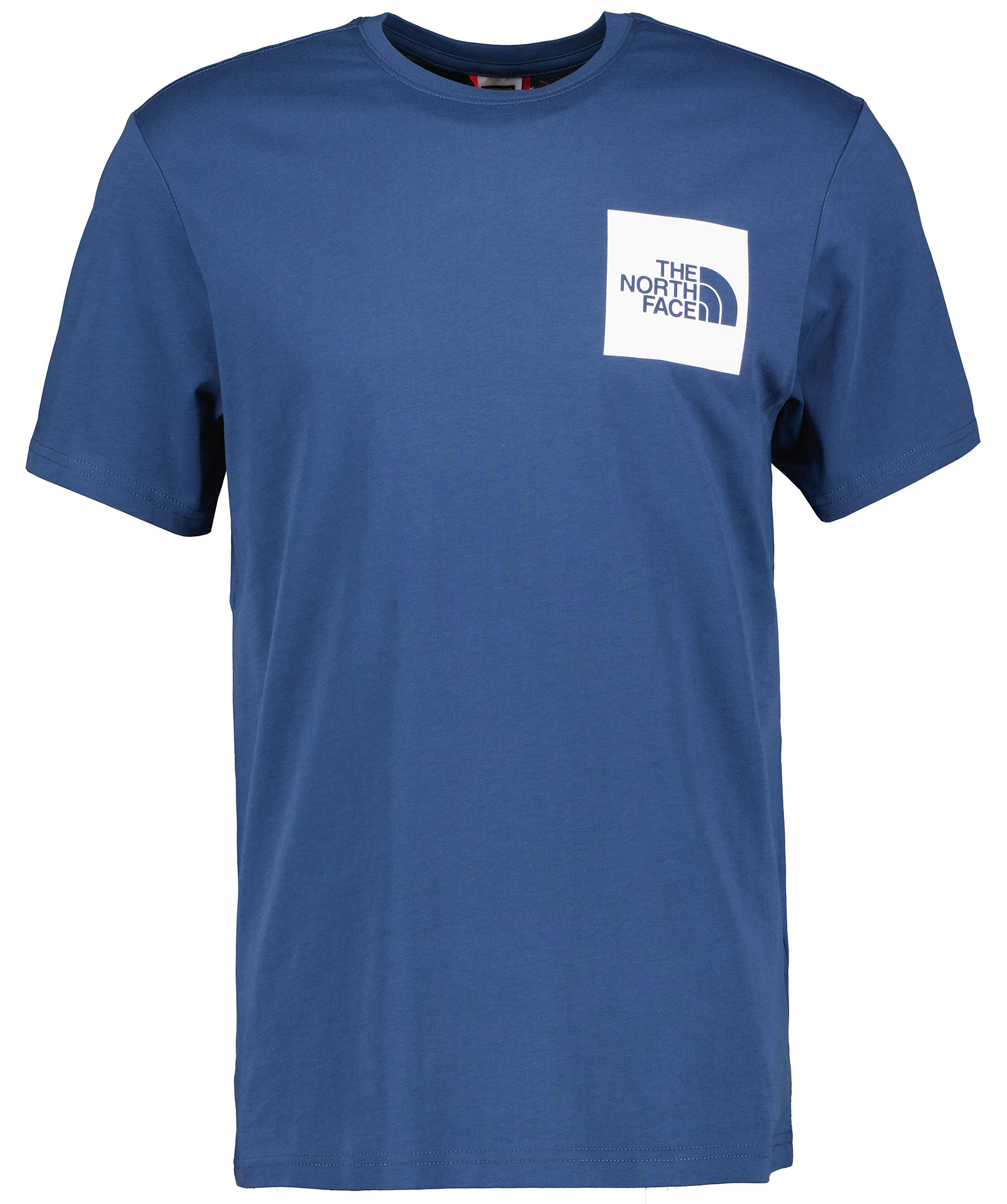 Blå t-shirt från The North Face gjord i 100% bomull. Vit ruta med blå logotyp på vänster sida på bröstet och en liten logga bak på axeln. Rundad halsringning och normal passform.
