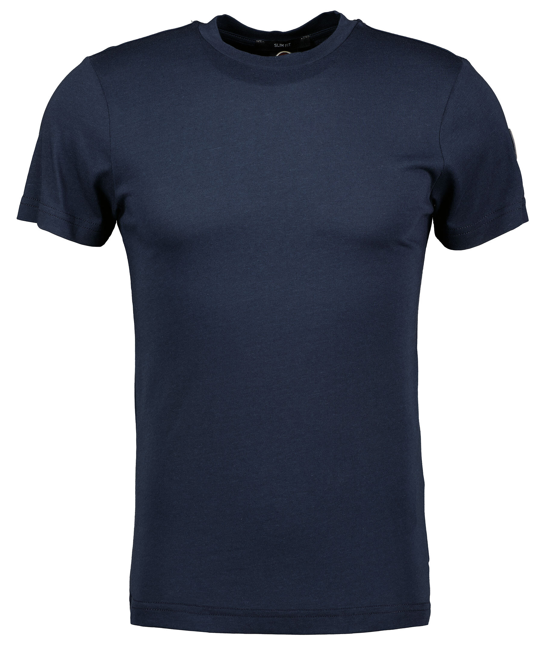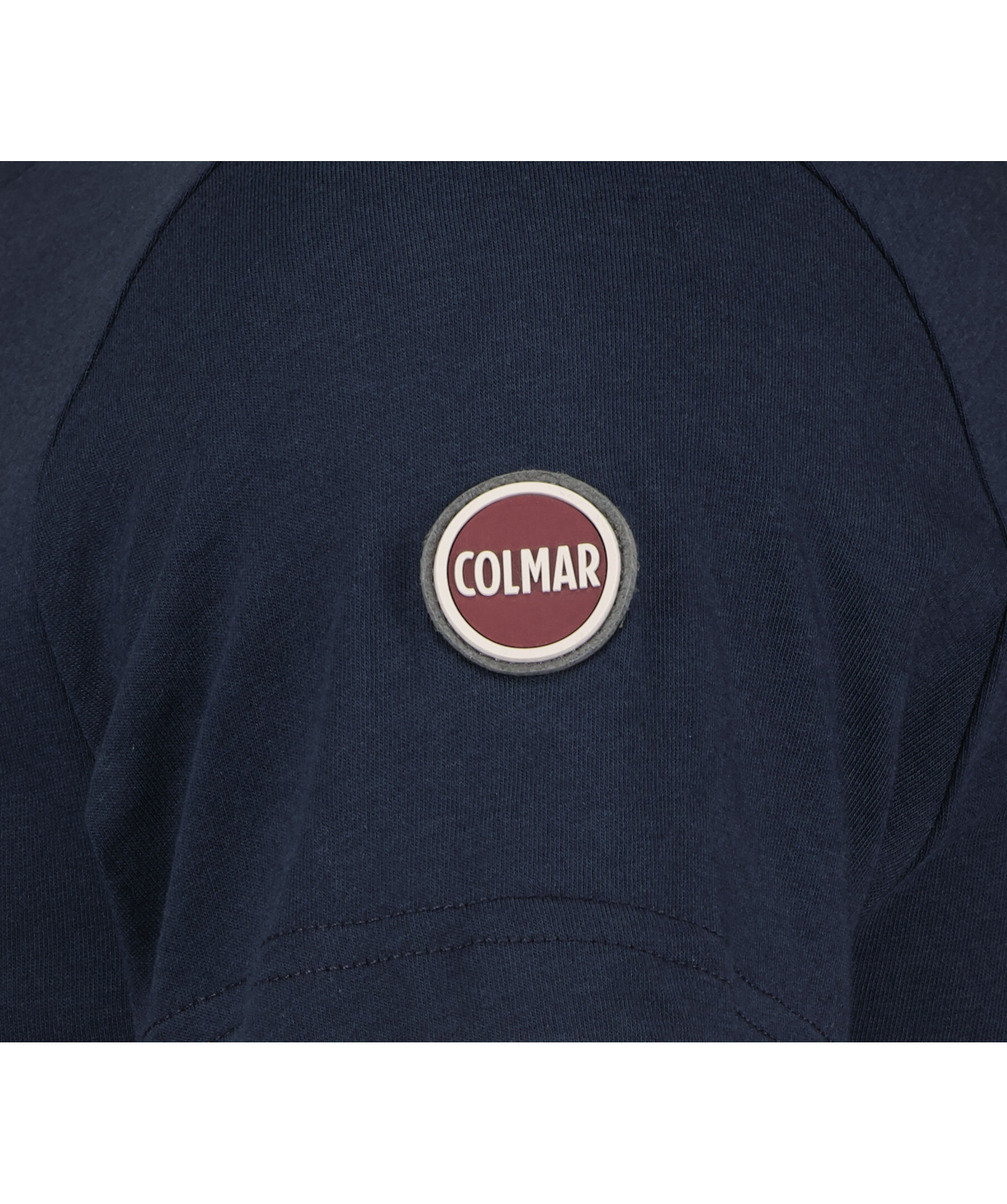 Marinblå t-shirt från Colmar i slim fit modell. Gummerad logotyp på vänster ärm och rundad halsringning. Tillverkad i bomullsblandning.