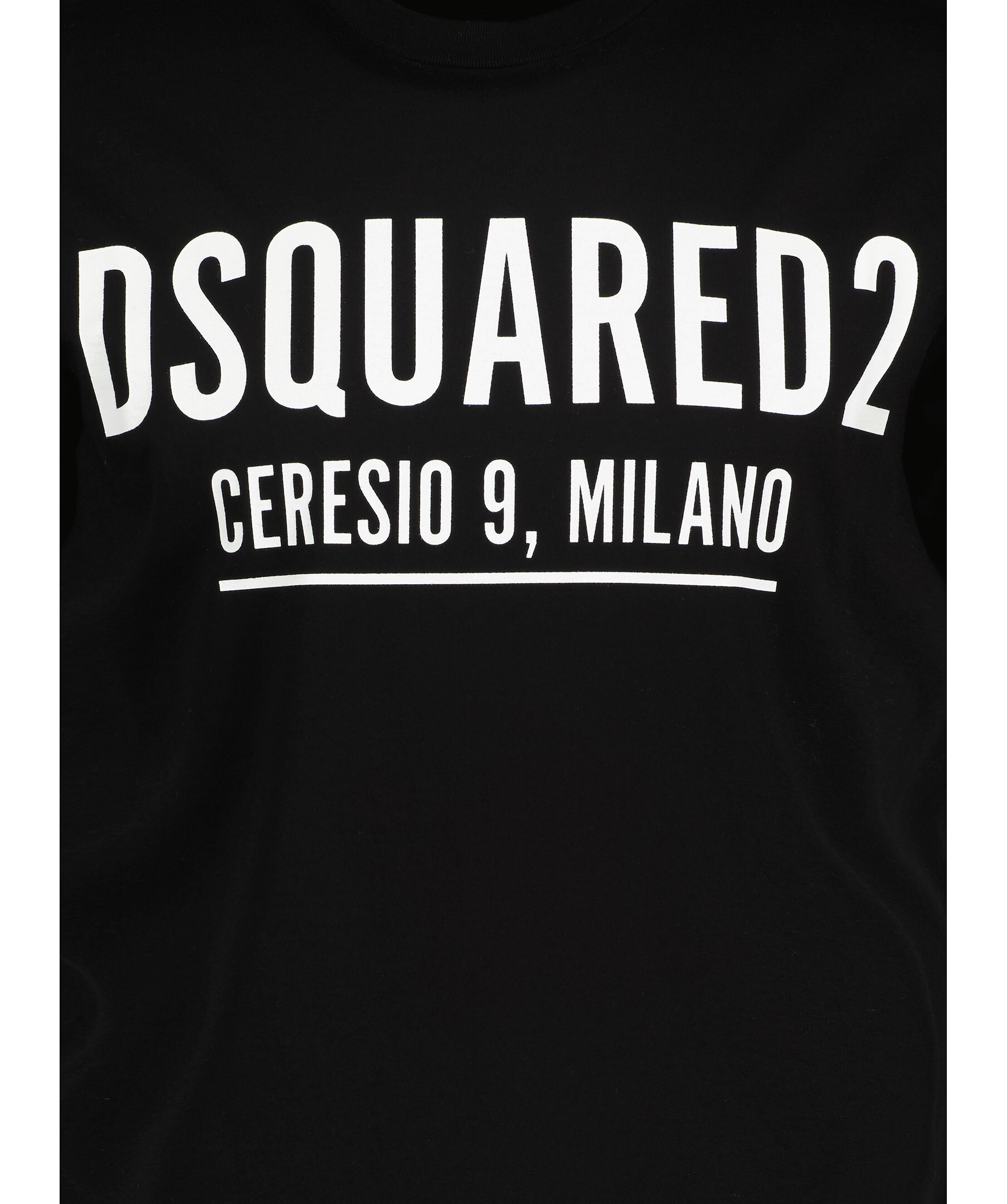 Svart t-shirt från Dsquared2 med stort tryck på bröstet. Tröjan är tillverkad i 100% bomull och har en rundad hals.