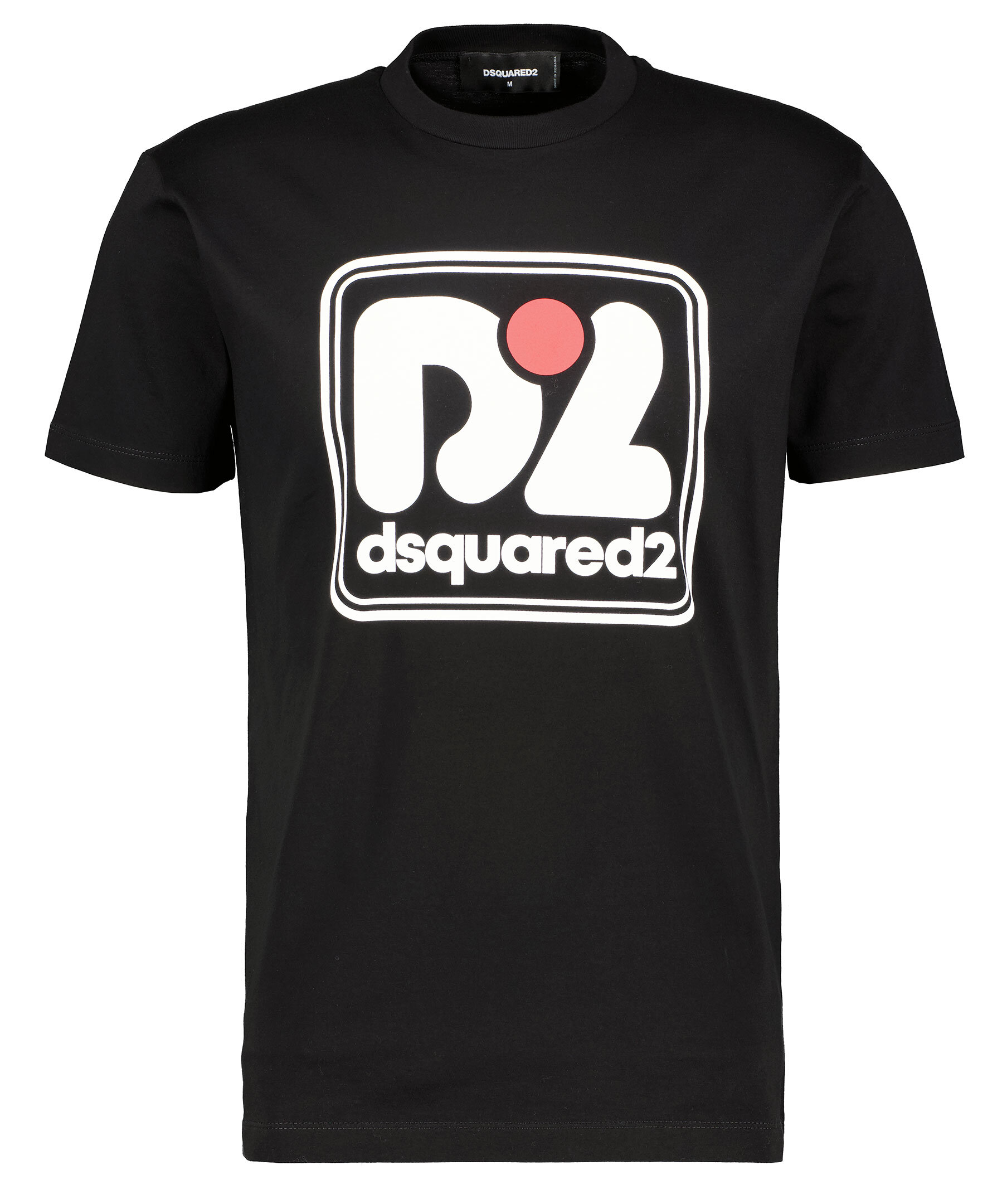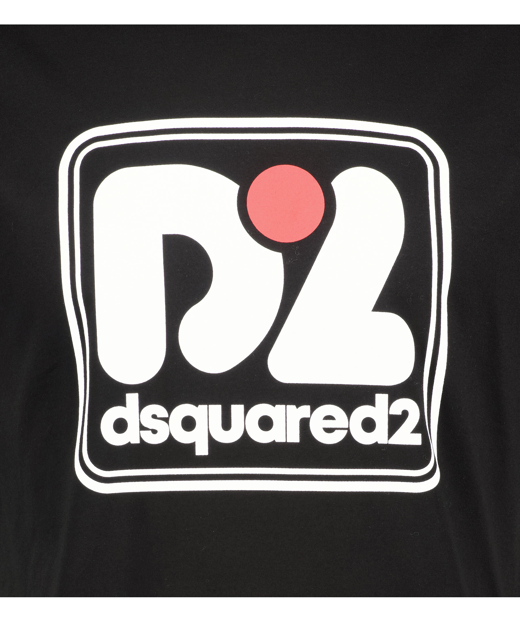 Svart t-shirt i 100% bomull från Dsquared2. Rak modell med rund halsringning. Tryckt logotyp mitt på bröstet.