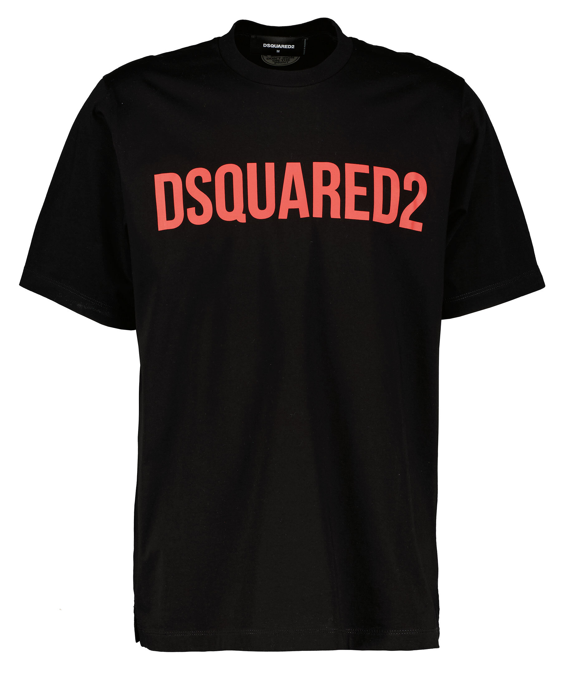 Svart t-shirt i 100% bomull från Dsquared2. Rund halsringning och rak modell samt korta slitsar i sidorna. Tryckt logotyp mitt på bröstet i rött.