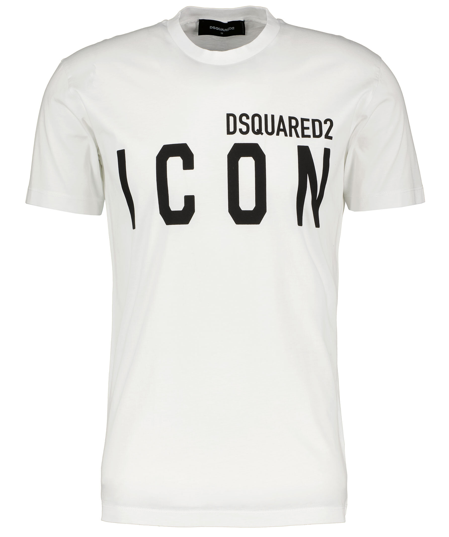 Vit t-shirt från Dsquared2. Stor, tryckt logotyp över hela bröstet i svart. Har rundad hals och är tillverkad i 100% bomull.