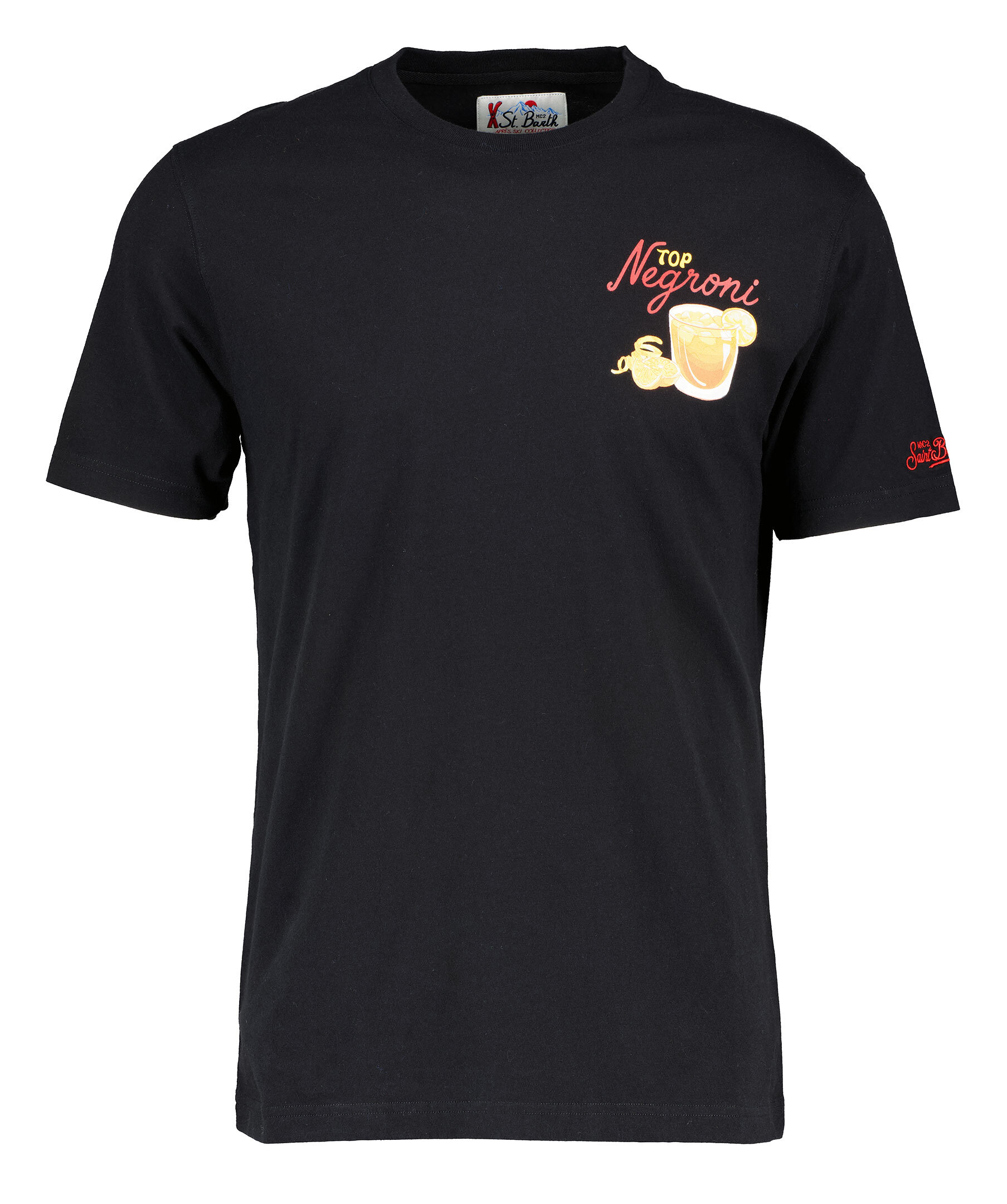 Svart t-shirt från Mc2 Saint Barth. Gjort i mjuk bomull. Drink motiv tryck på bröstet och ryggen.