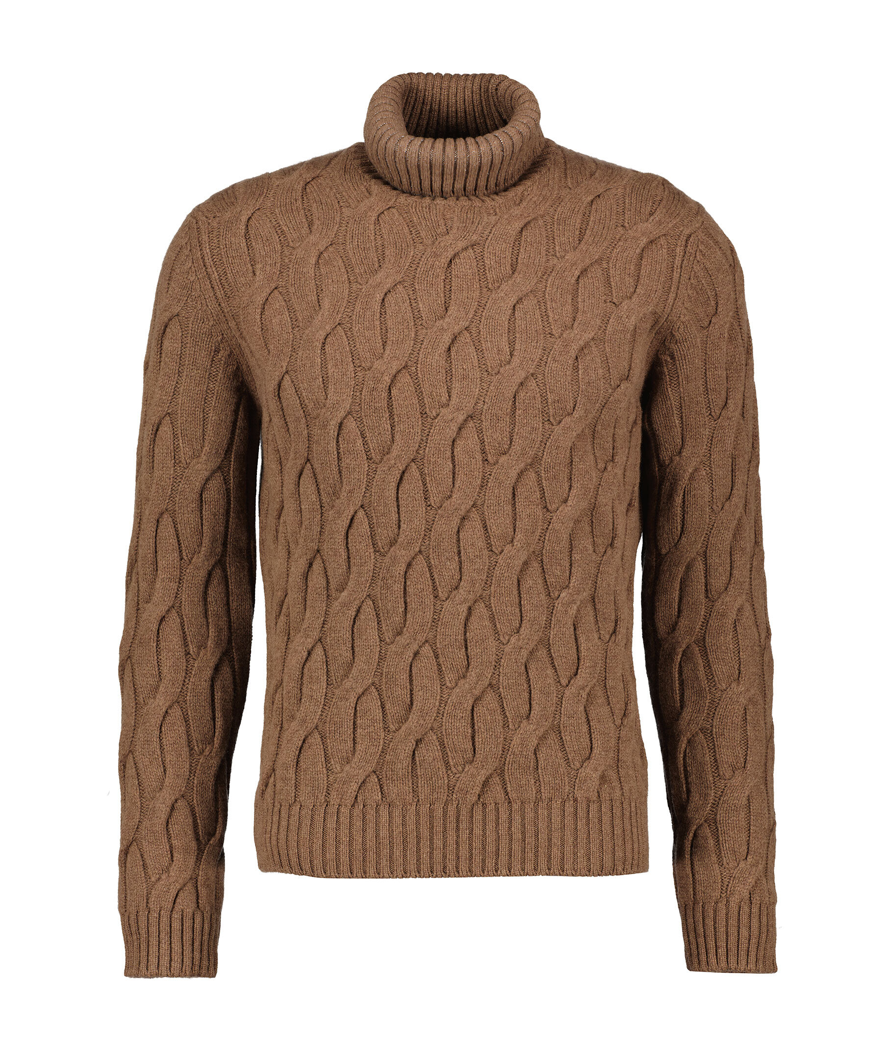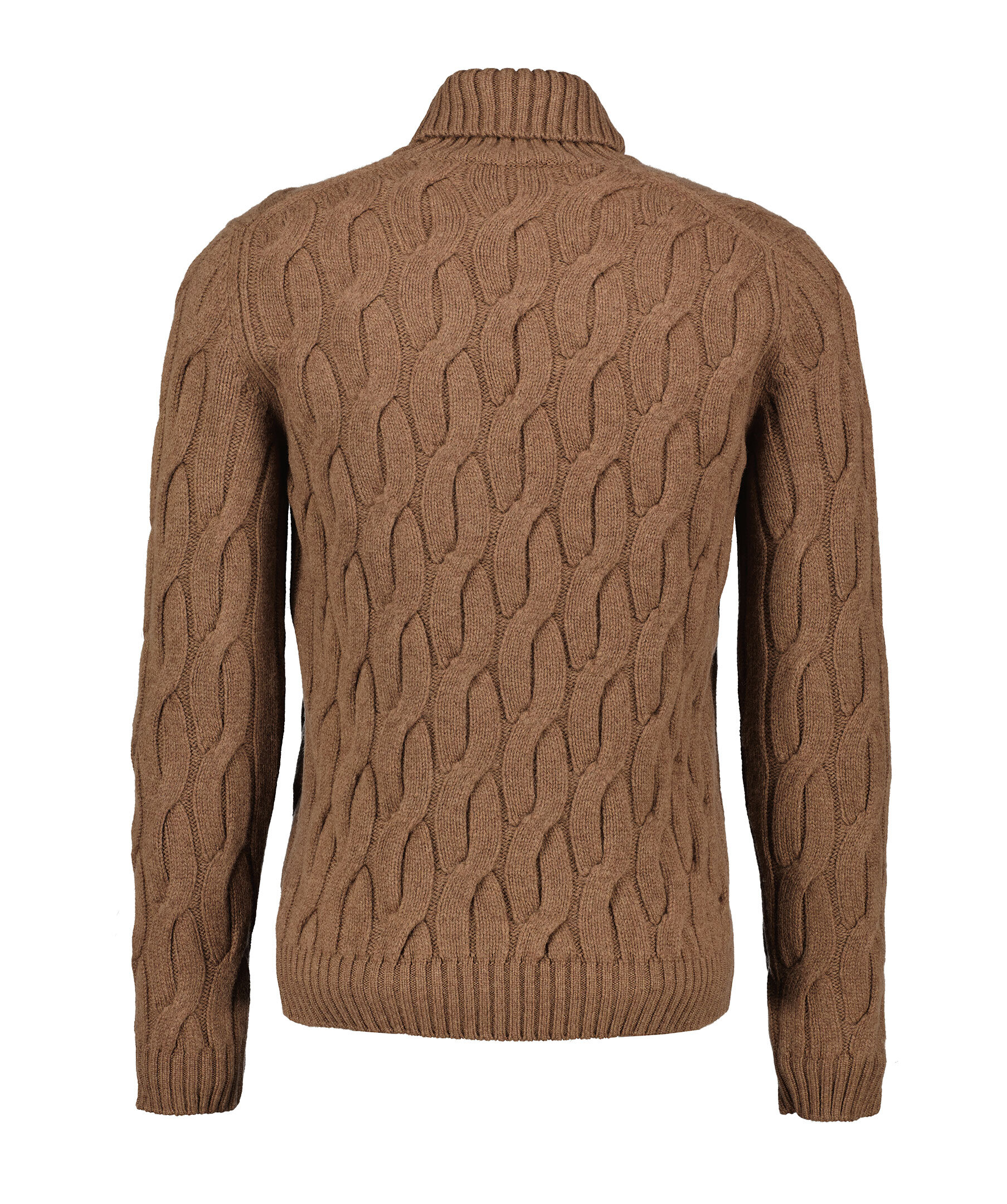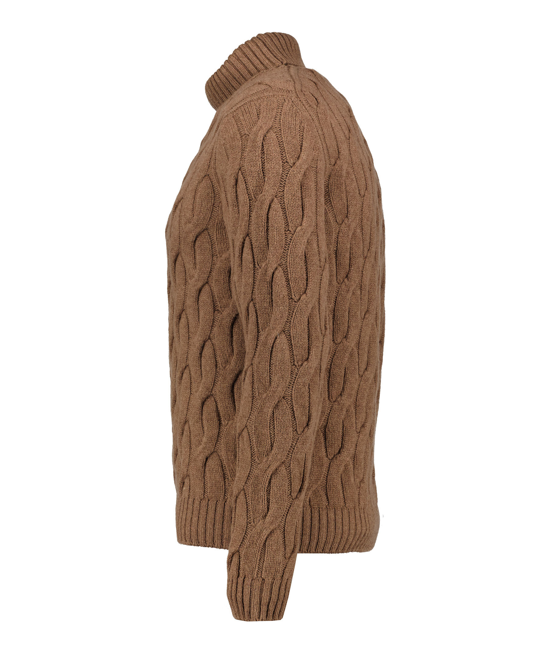 Brun kabelstickad polotröja från Zanone. Tröjan har ribbstickad hals och ribbstickade muddar vid ärm- och plaggslut. Tillverkad i 100% ull.