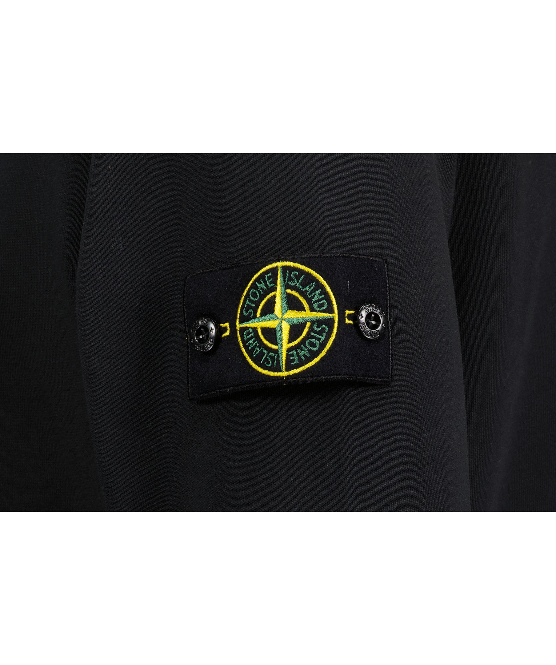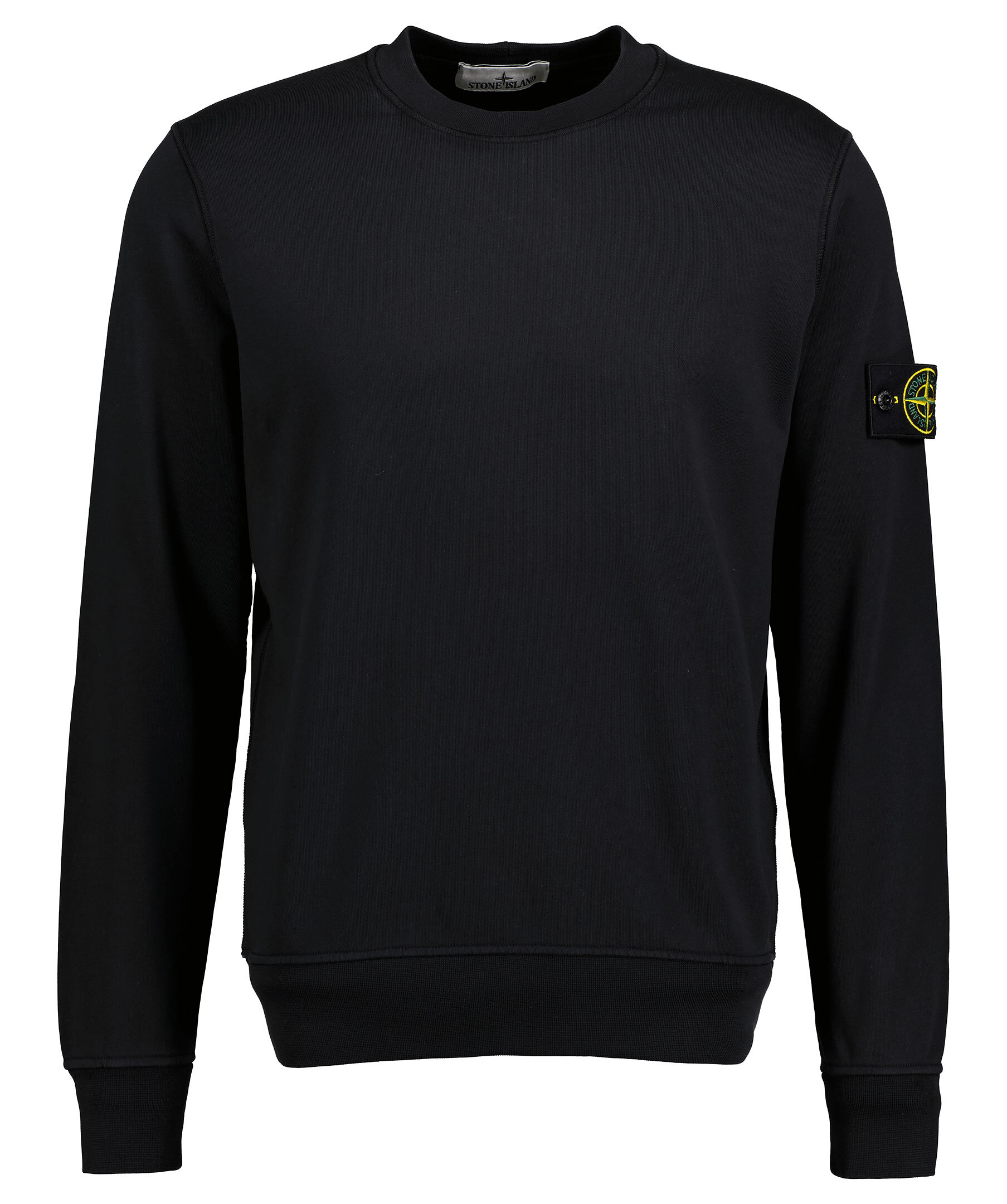 Svart sweatshirt från Stone Island gjord i 100% bomull. Ribbade muddar vid hals, ärm och plaggslut. Avtagbar tygpatch med logotyp på vänster överärm.