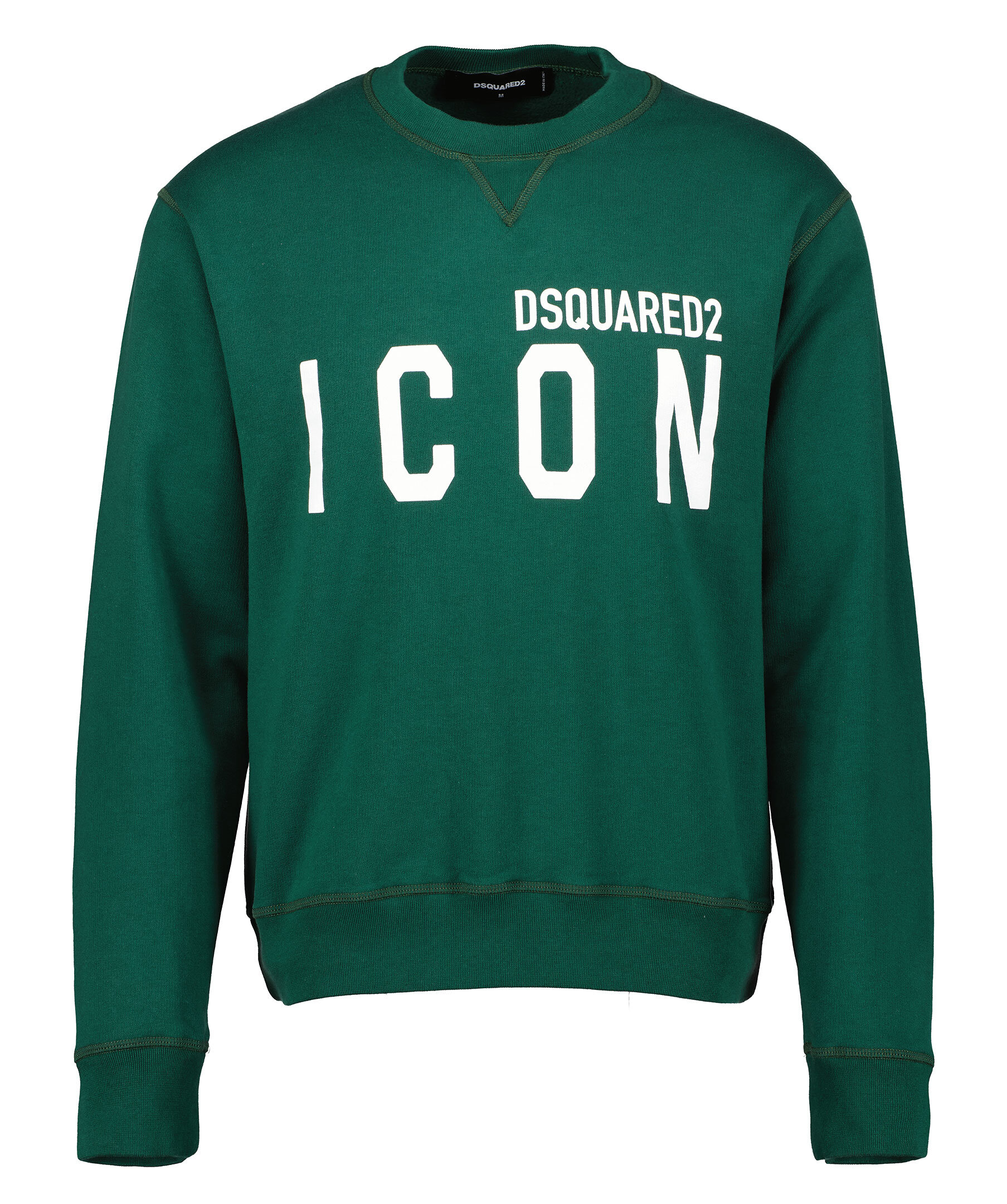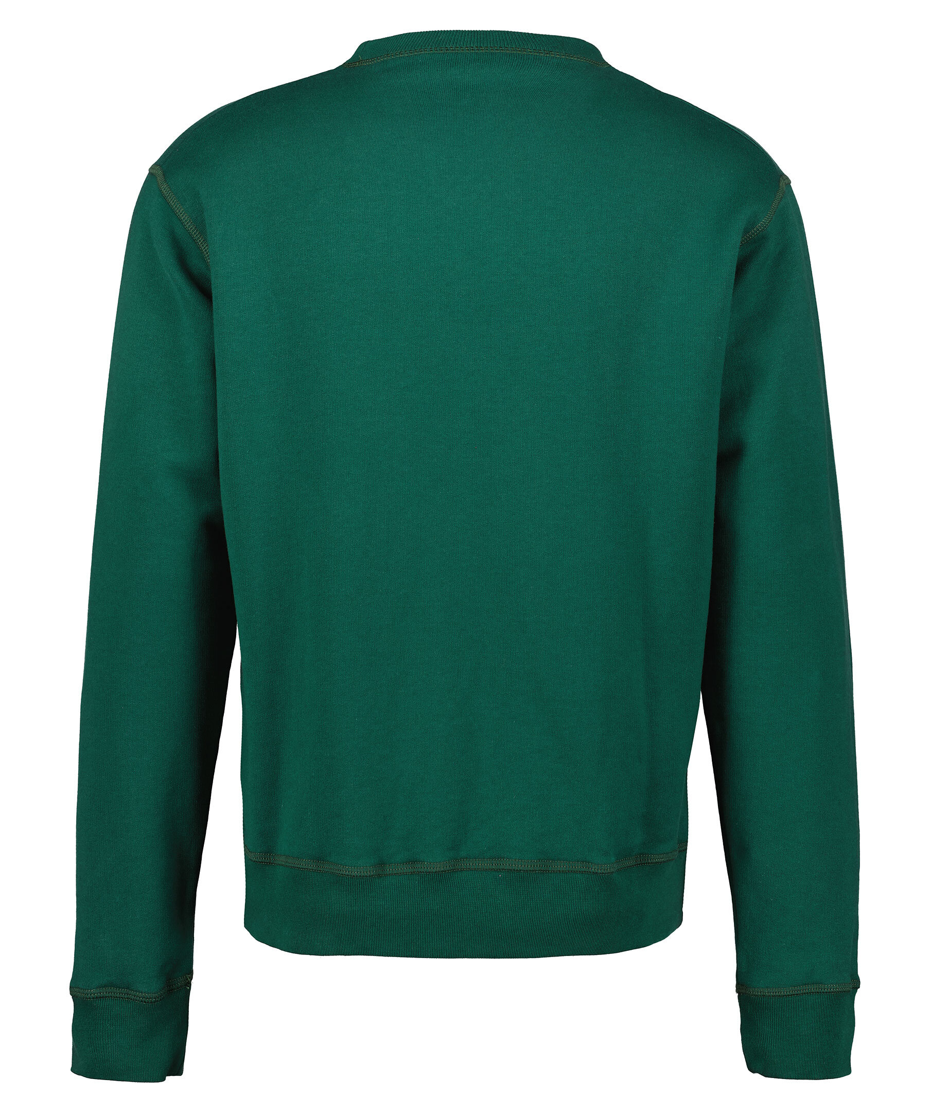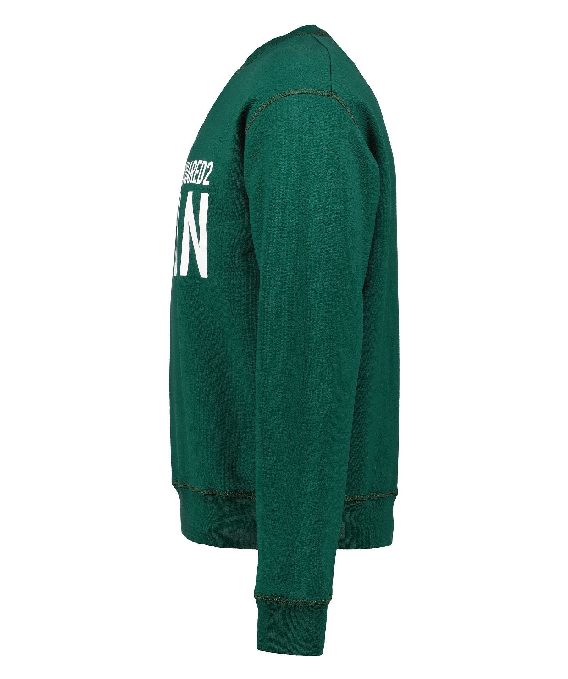 Mörkgrön college sweater från Dsquared2. Rundad halsringning, ribbstickad mudd i halsringningen och ärmslut. Vitt tryckt över bröstet. Borstad insida. Tillverkad i 100% bomull.