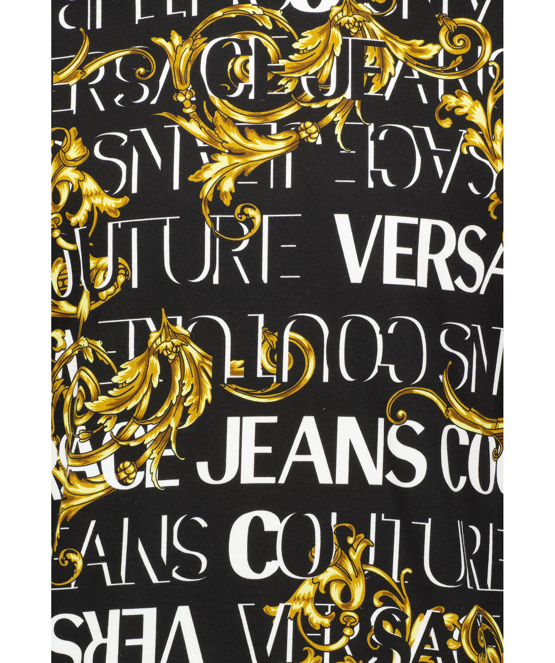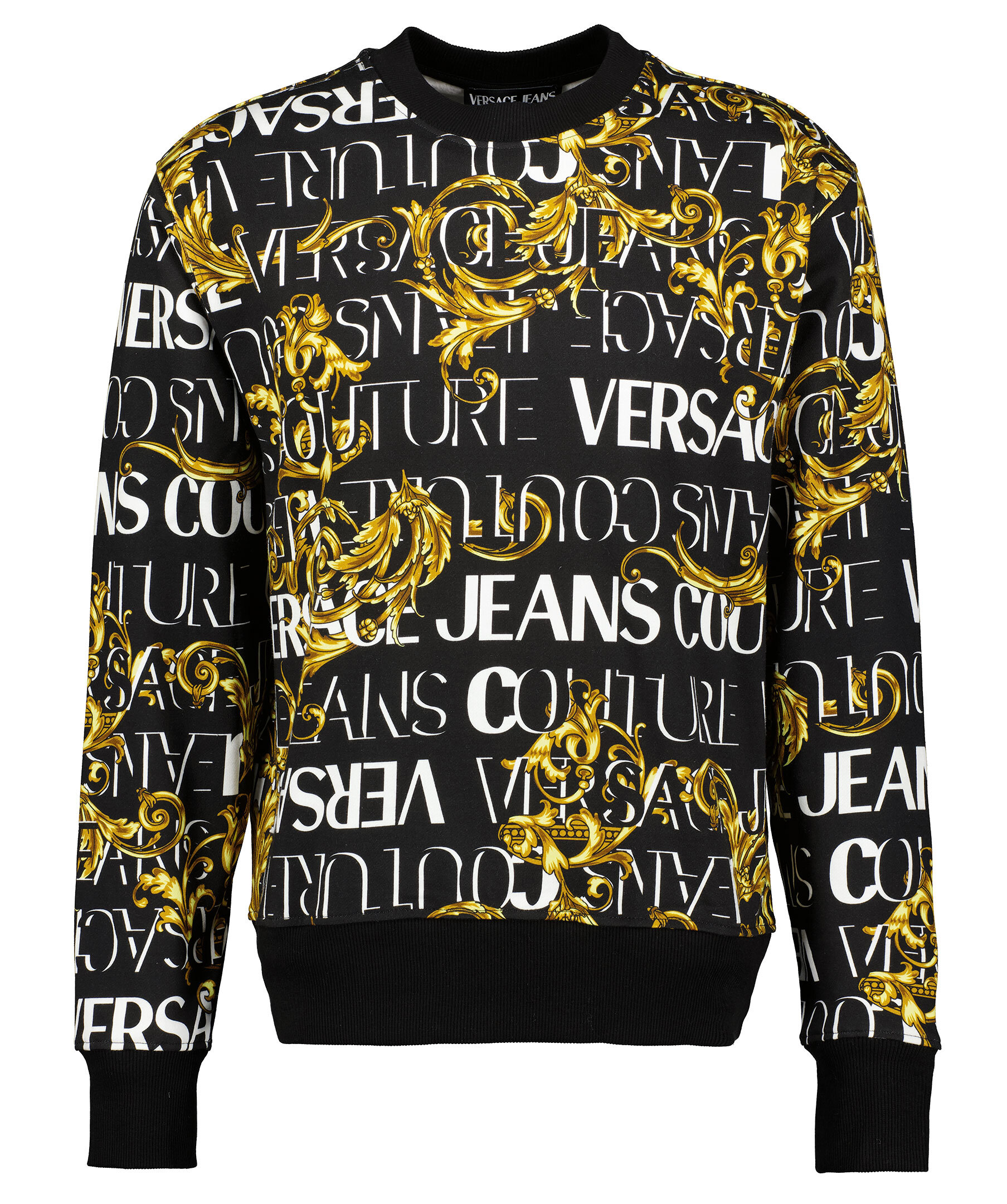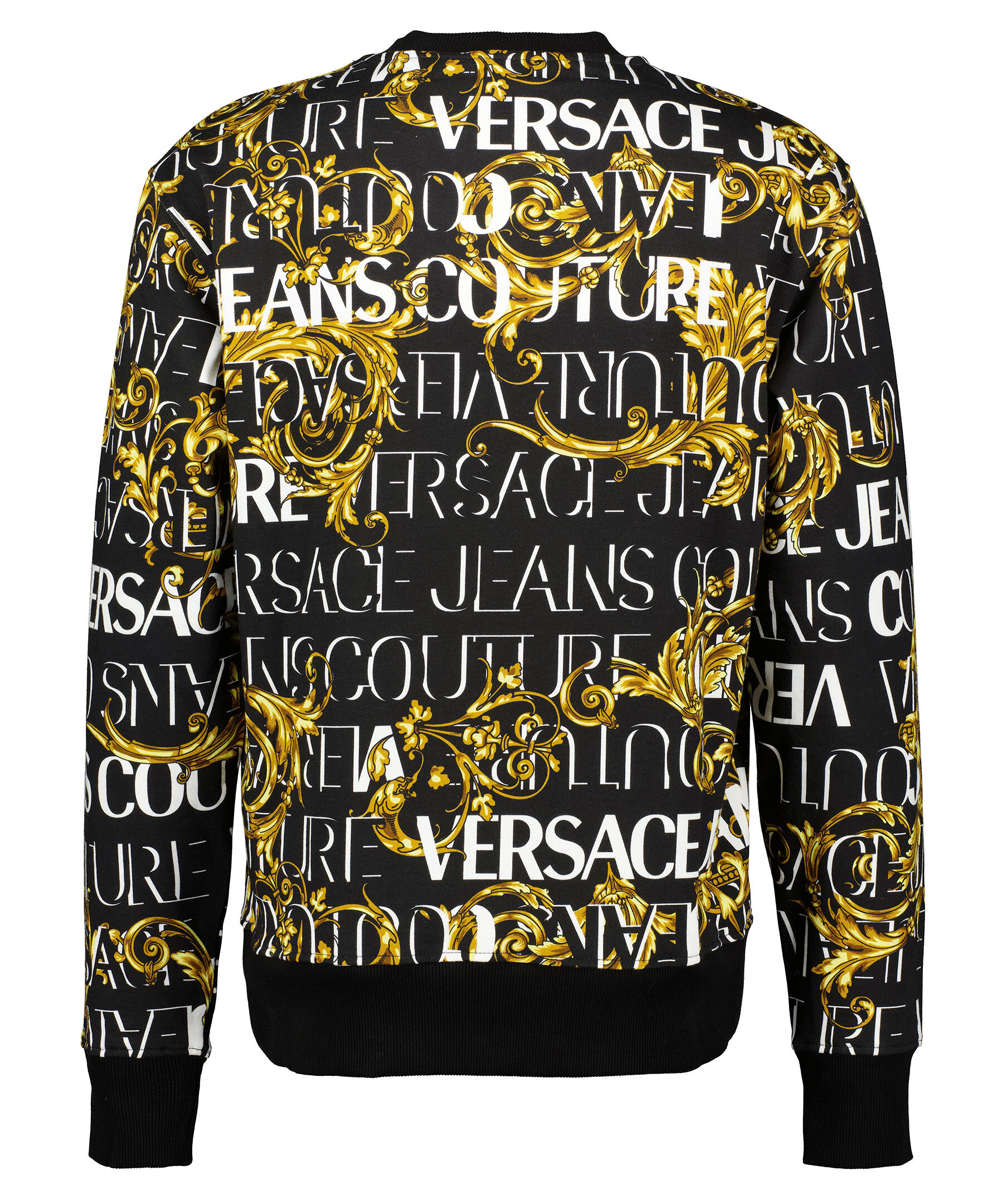 Svart sweatshirt från Versace Jeans Couture. Tröjan är gjord i 100% bomull och har ett logotyp och barockinspirerat mönster över hela tröjan förutom de ribbstickade muddarna.
