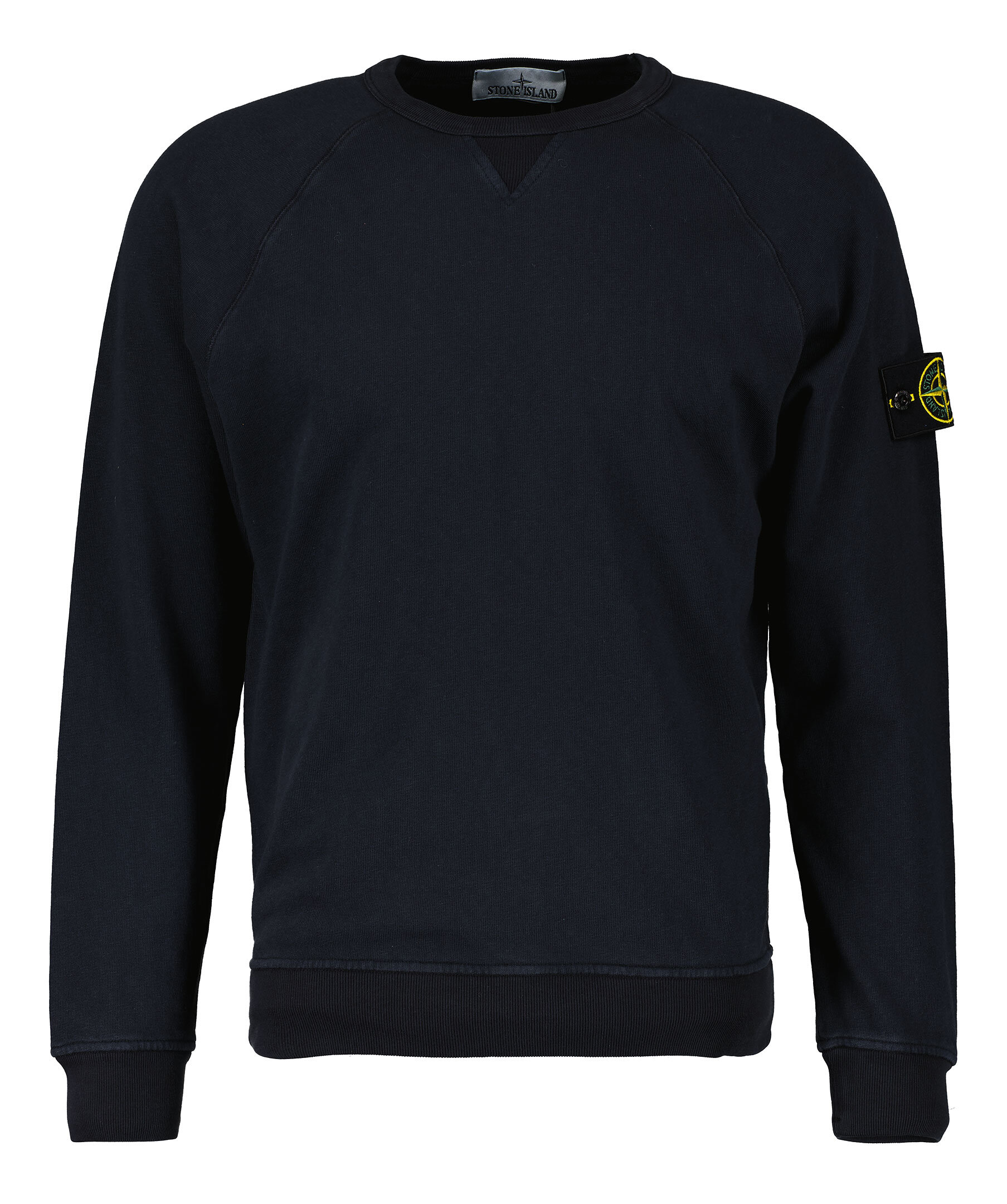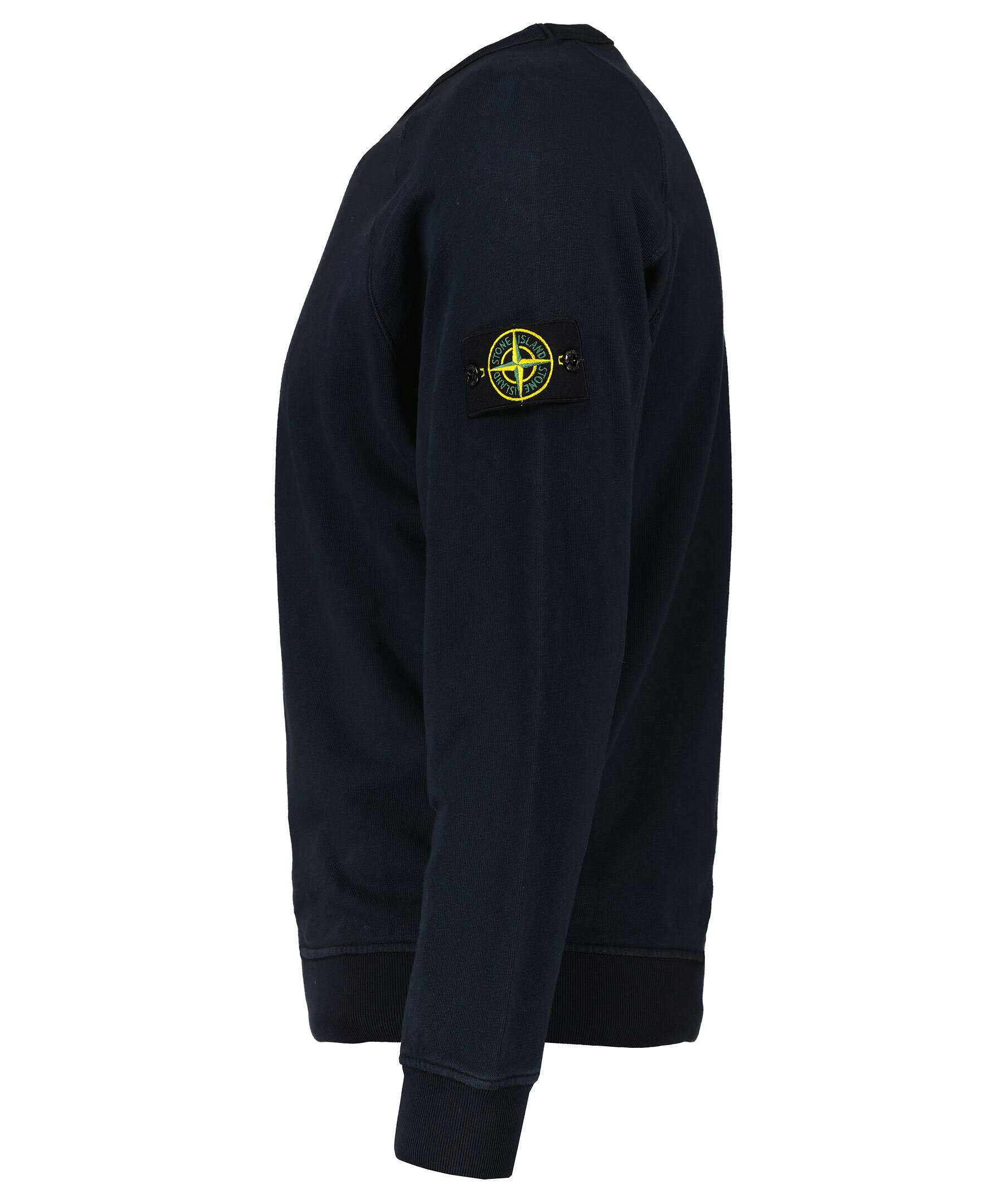 Mörkblå sweatshirt från Stone Island gjord i 100% bomull. Ribbade muddar vid hals, ärm och plaggslut. Avtagbar tygpatch med logotyp på vänster överärm.