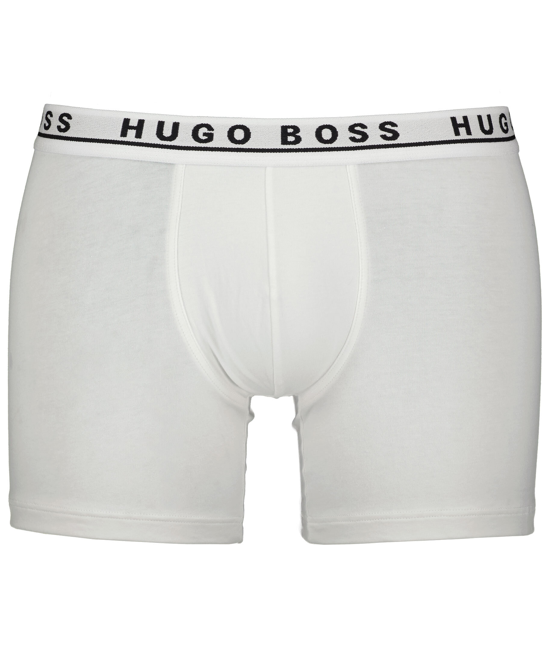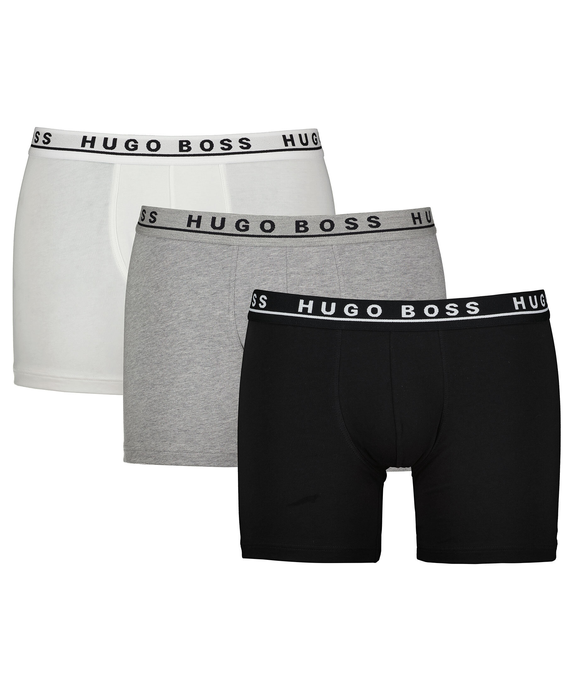 Kalsonger i 3-pack från Hugo Boss. Boxer brief modell i olika färger, en vit, en grå och en svart. Tillverkade i stretchig bomull och har svarta logotyper på resåren.
