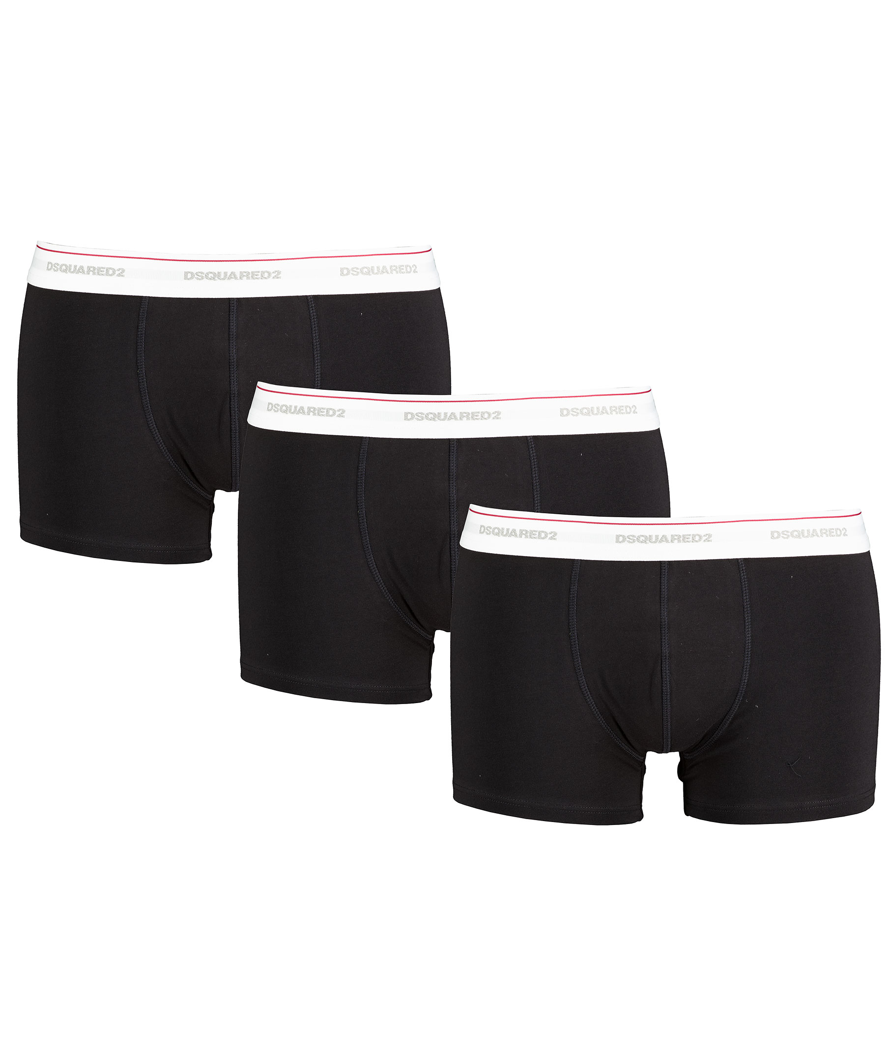 3-pack svarta kalsonger från Dsquared2. Vita resårer med logotyp, cotton stretch trunks.