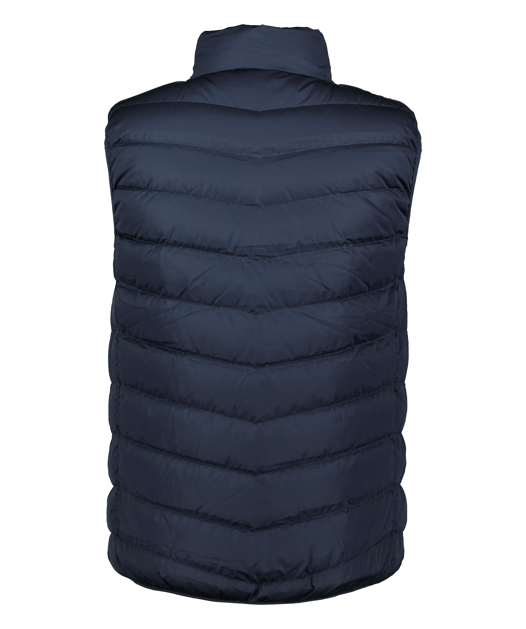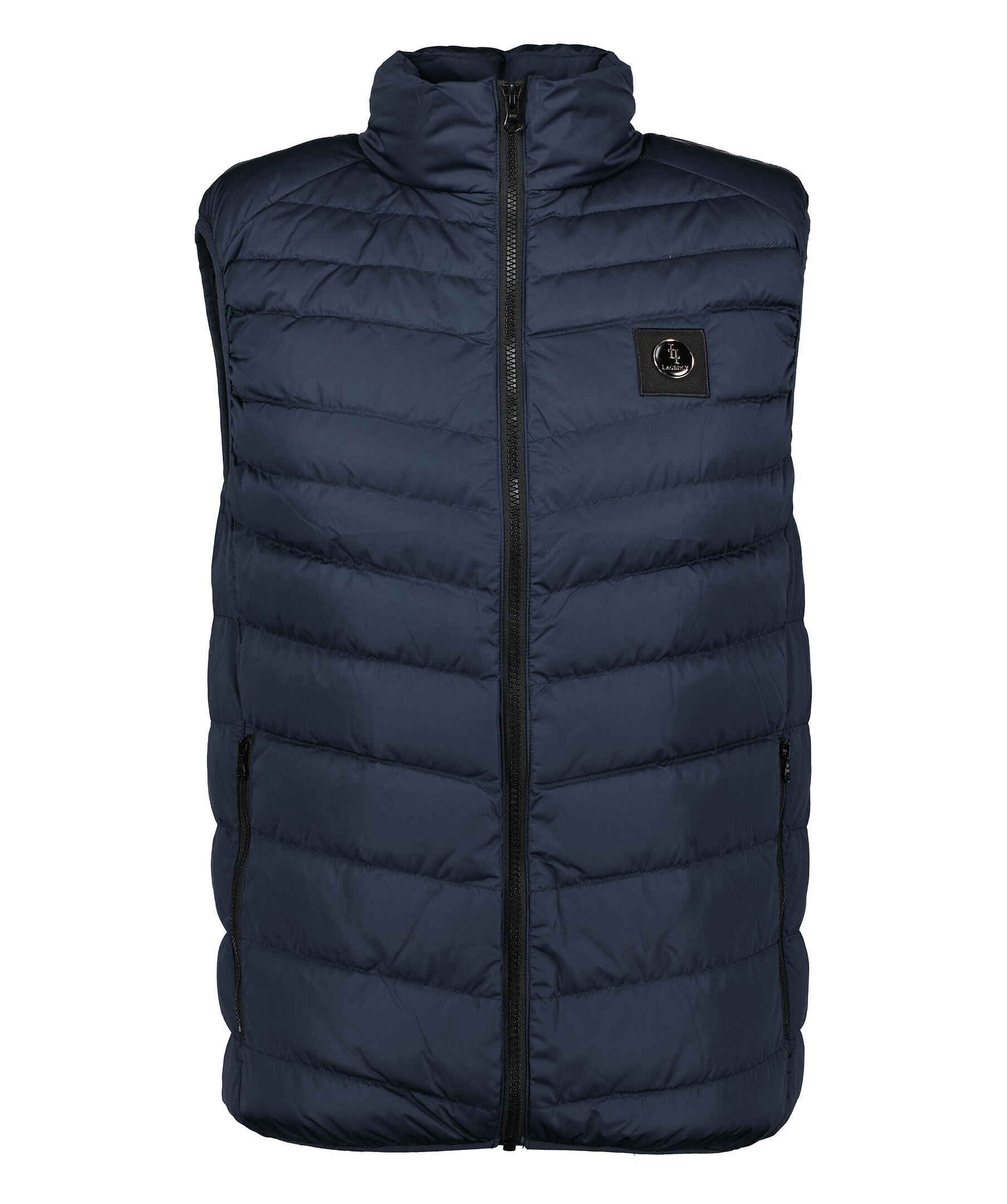 Mörkblå quiltad dunväst från Lagency. Stängs framtill med dragkedja. Två fickor framtill som stängs med dragkedja. Logotyp på vänster bröst. Smala elastika muddar i ärm- och plaggslut.