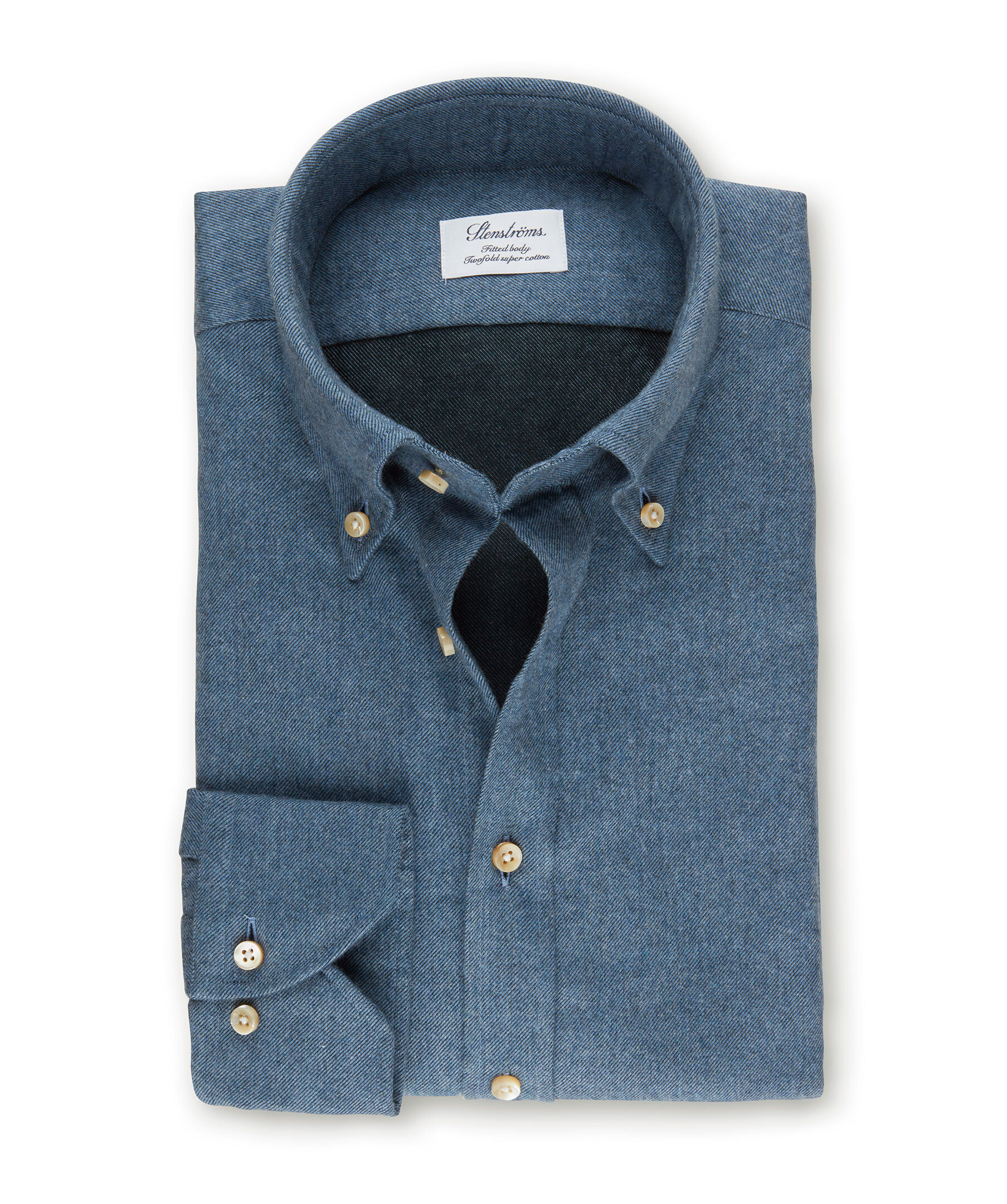 Blå, skjorta i casual fit modell från Stenströms. Skjortan är gjord helt i bomull och har en button down krage.