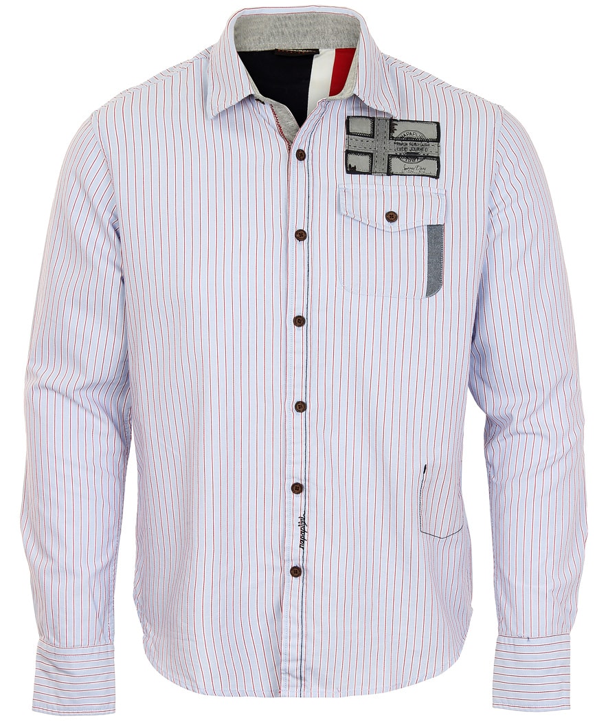 Sportig skjorta med flagga på bröstet och detaljer på undersidan av kragen.