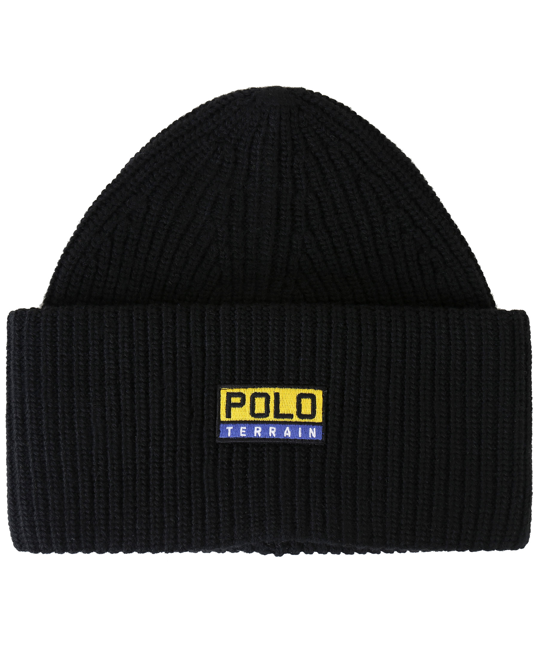 Svart, stickad mössa från Polo Ralph Lauren. Broderad logotyp framtill och vikt kant. Tillverkad i akryl, nylon och ull.