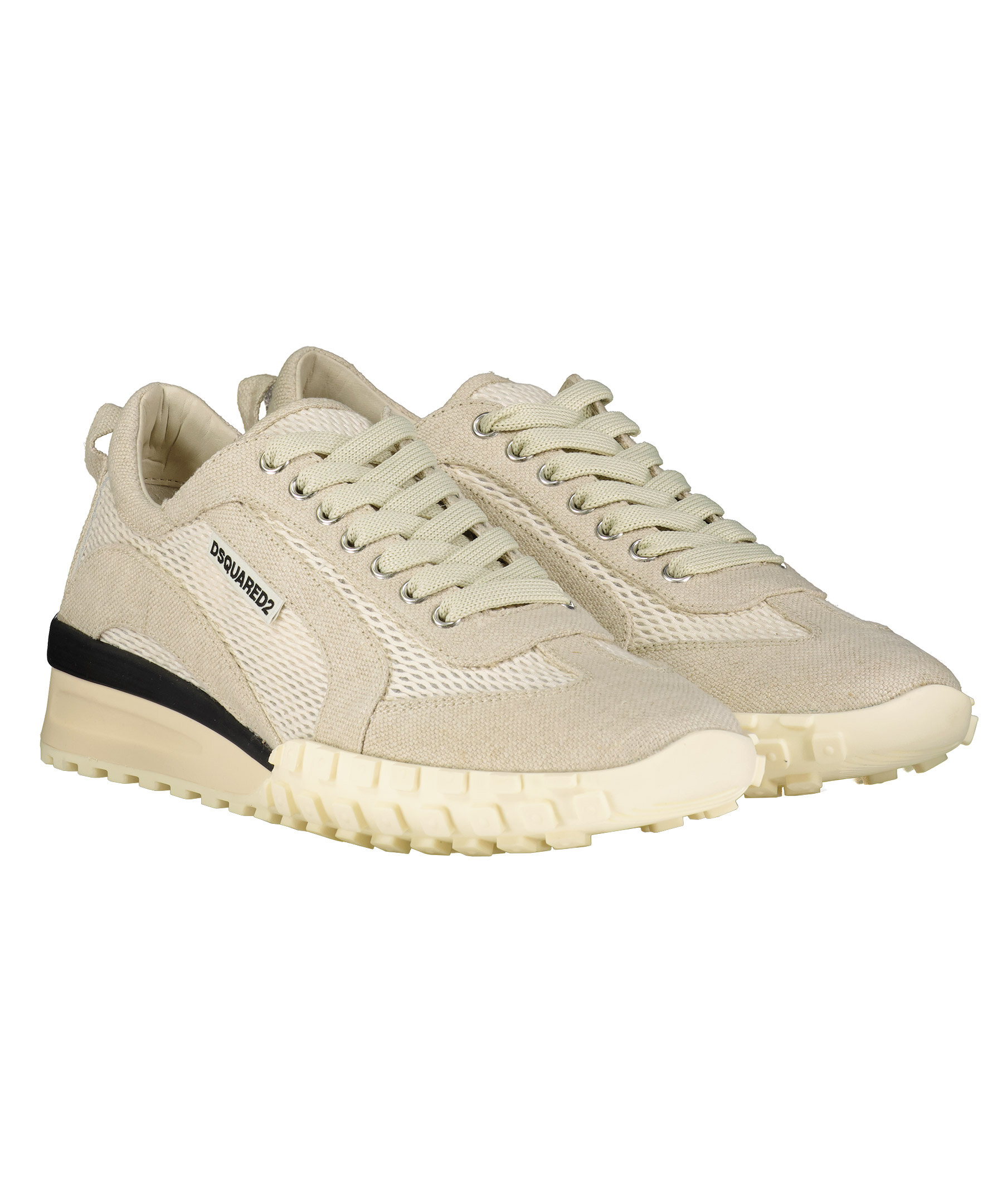 Låga sneakers i mesh från Dsquared2 i beigea toner. Skorna har mocka och textildetaljer. Platt sula med struktur, dragögla baktill och en liten logotyp på sidan. Innersula i skinn.