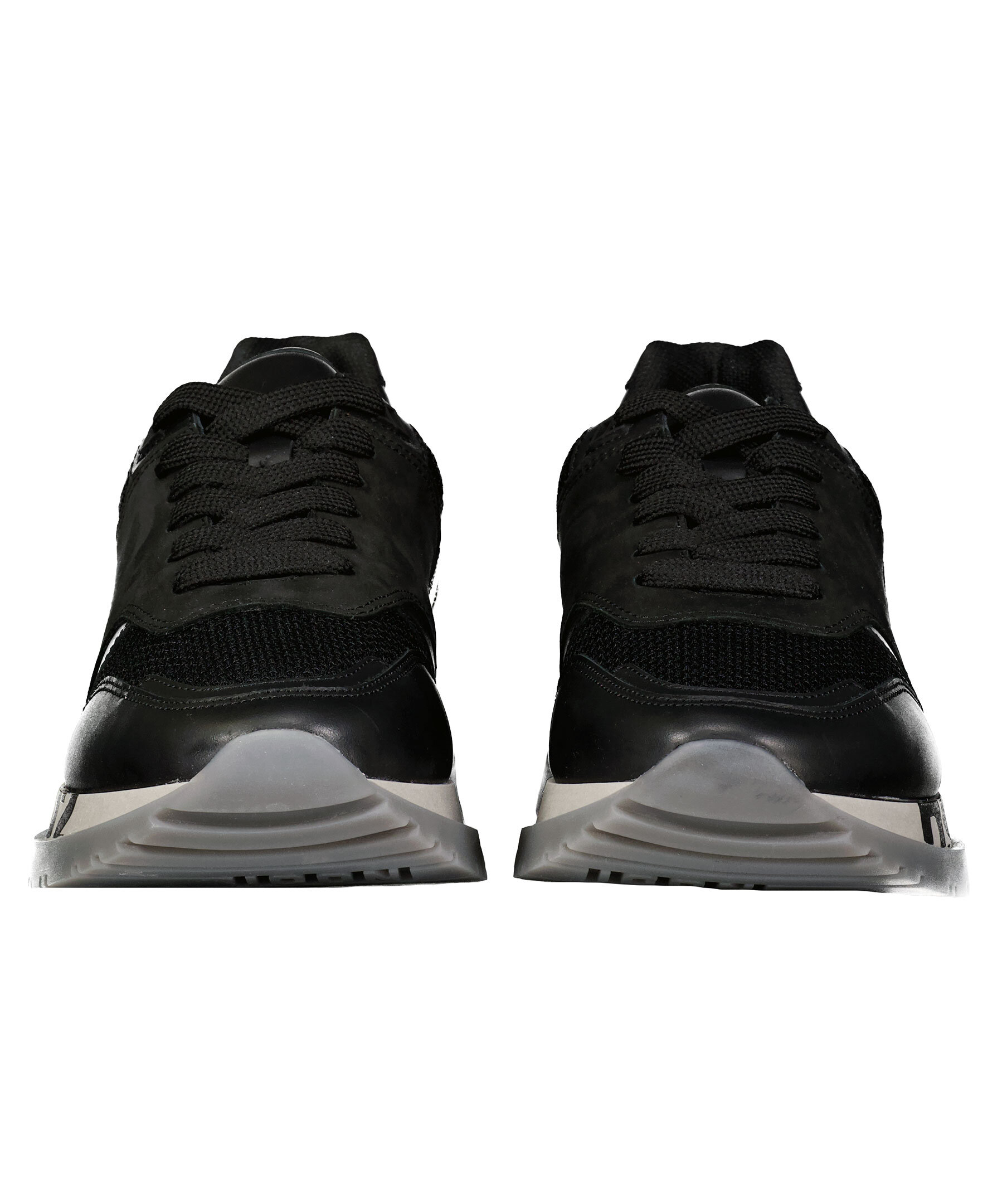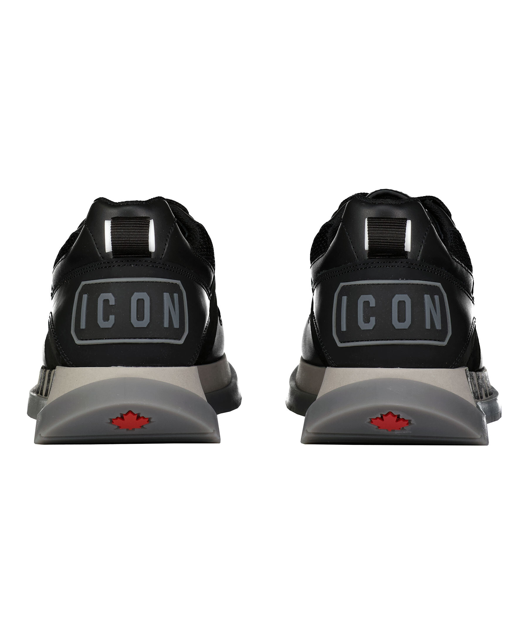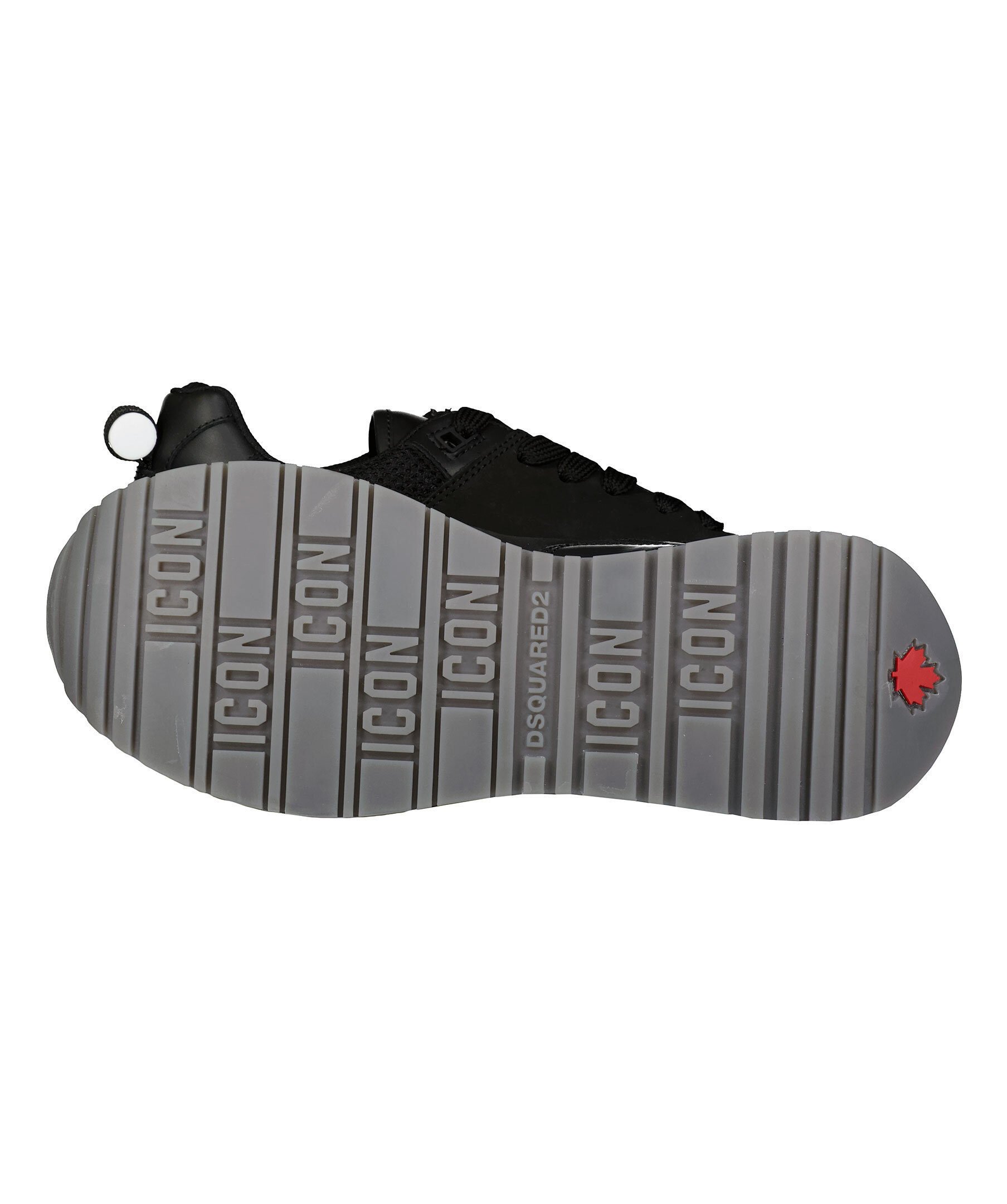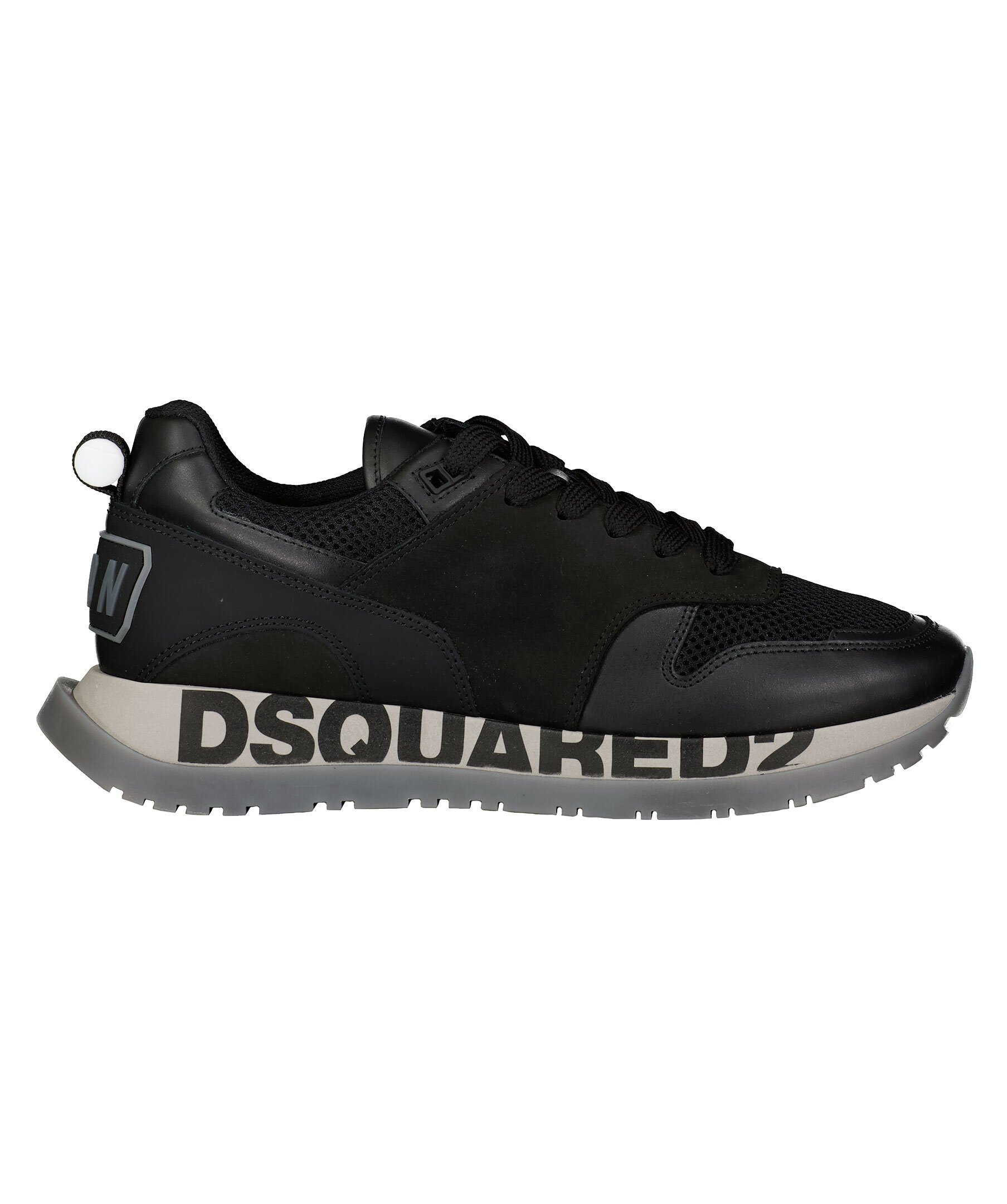 Svarta sneakers från Dsquared2. Detaljer i mocka, läder och mesh. Grå gummisula med logotyp i svart. Svart snörning och gummerad logotyp på hälen.