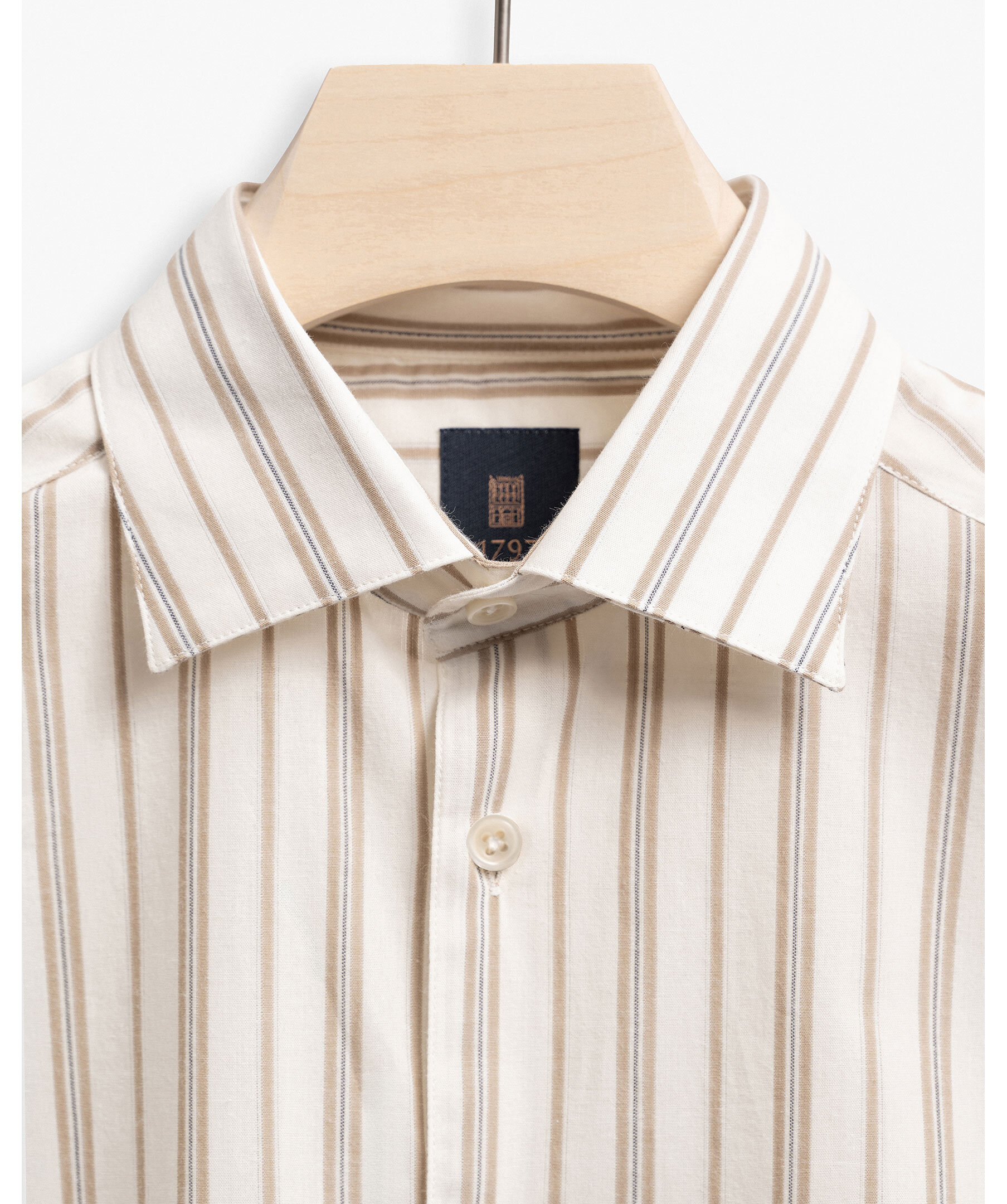 Perfekt beige och randig skjorta för en smart casual stil från varumärket 1797. Skjortan har en modern cut away krage och stängs med knappar framtill. Tillverkad i 100% bomull.