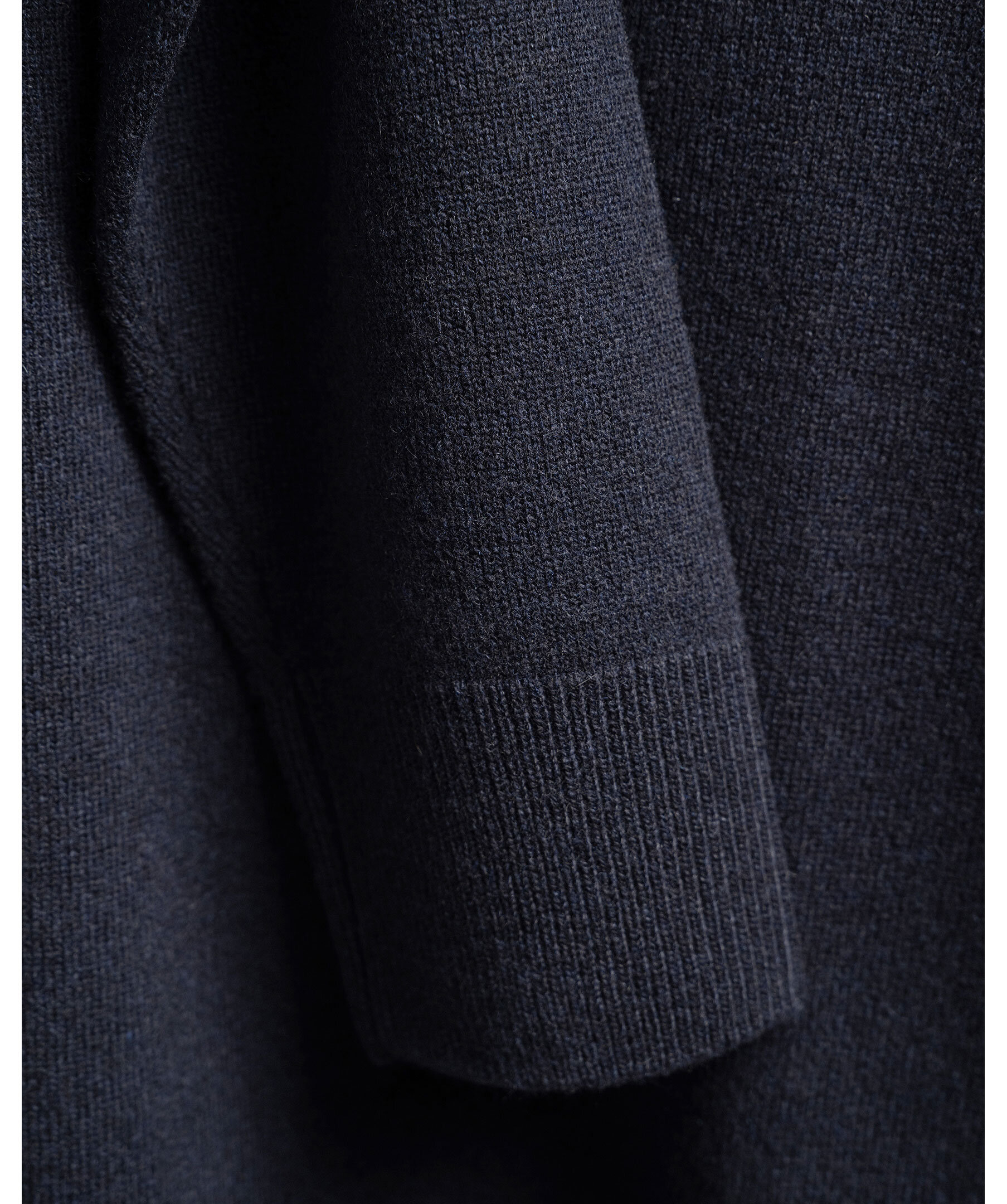 Mörkblå stickad tröja från varumärket 1797. Tröjan är tillverkad i ett exklusivt italienskt garn av merinoull och kashmir. Den mjuka och värmande materialblandningen kombinerar komfort med elegans. Tröjan har en stilren sadelsömsskonstuktion som ger en sofistikerad passform och ett tidlöst uttryck.