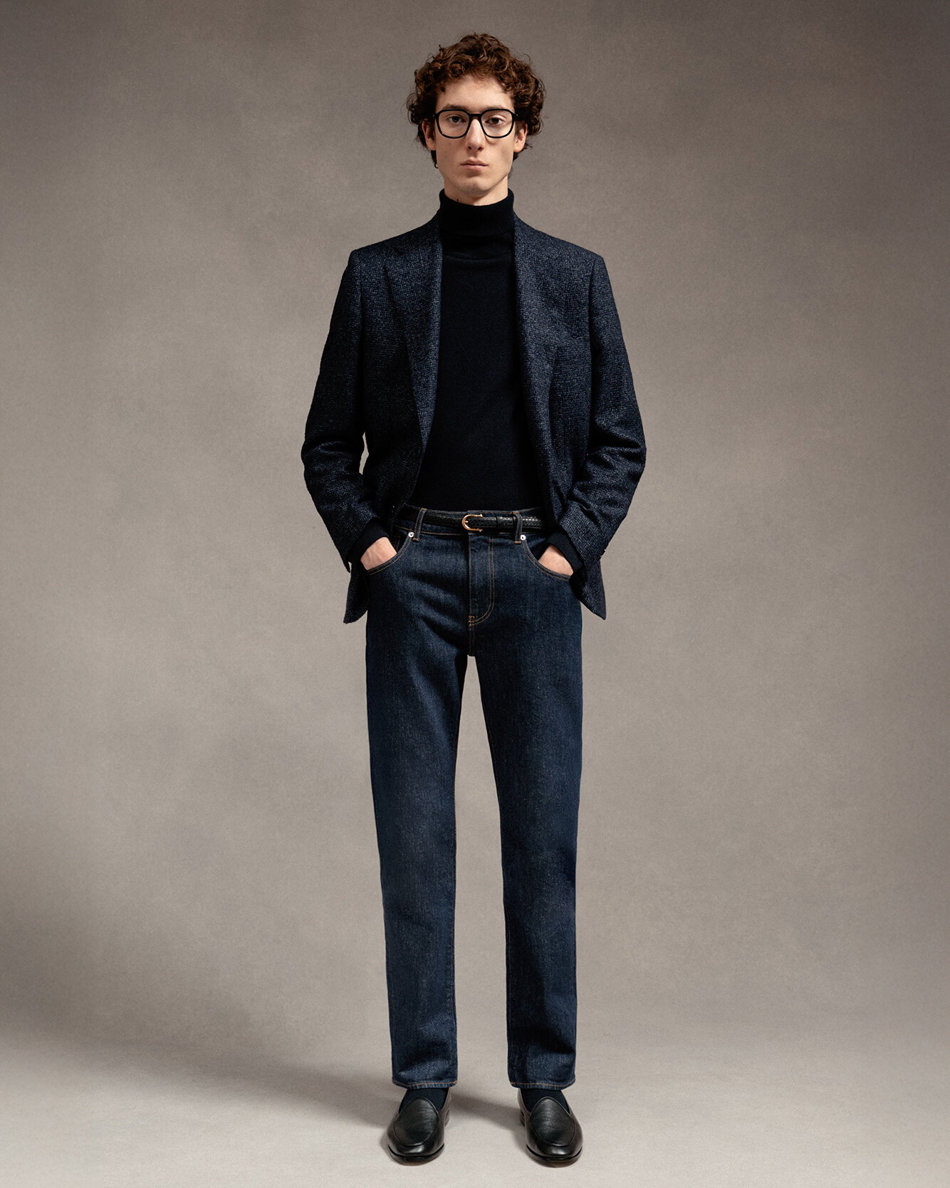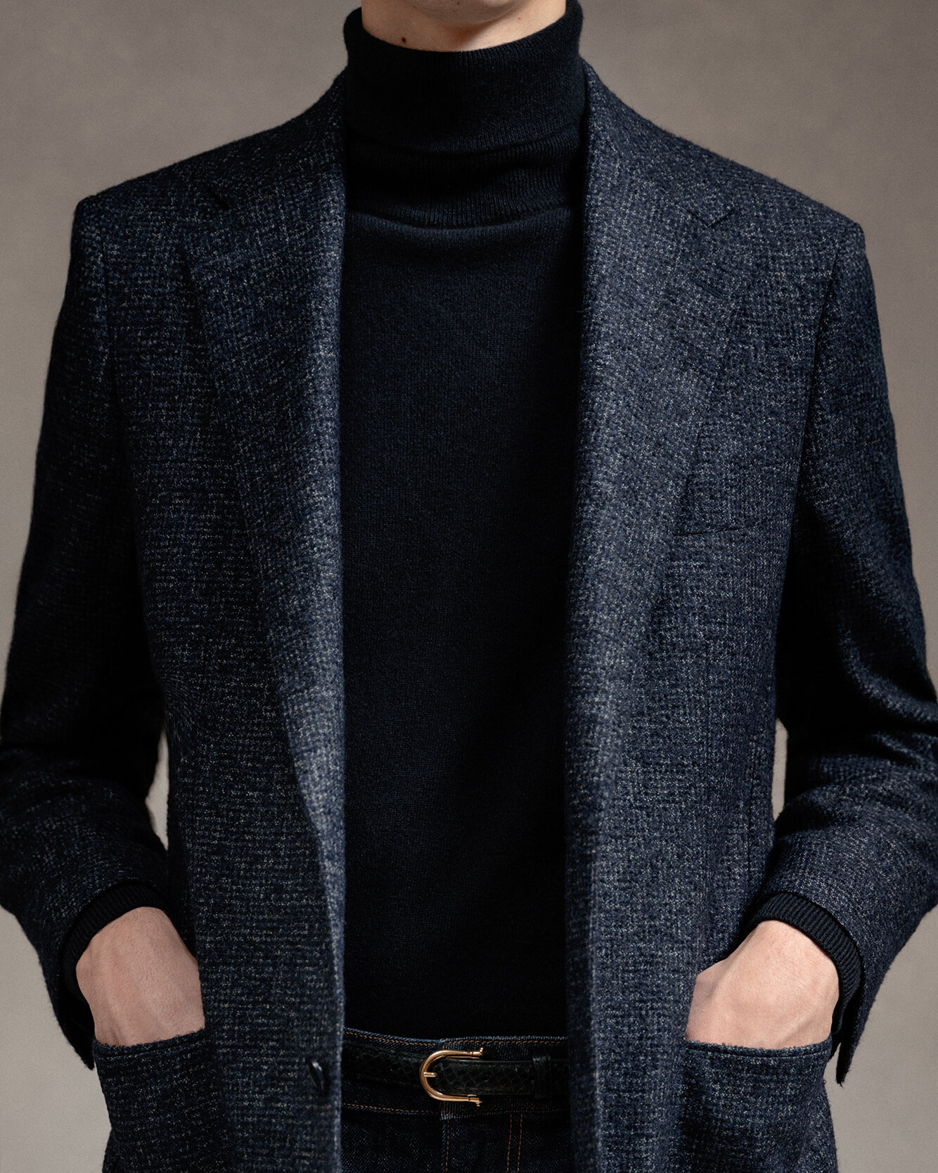 Elegant och subtilt mönstrad enkelknäppt kavaj från 1797, tillverkad i en exklusiv alpackaullsblandning från Loro Piana. Kavajen har två midjefickor med lock, en bröstficka och dubbelt sprund baktill för ökad rörlighet.