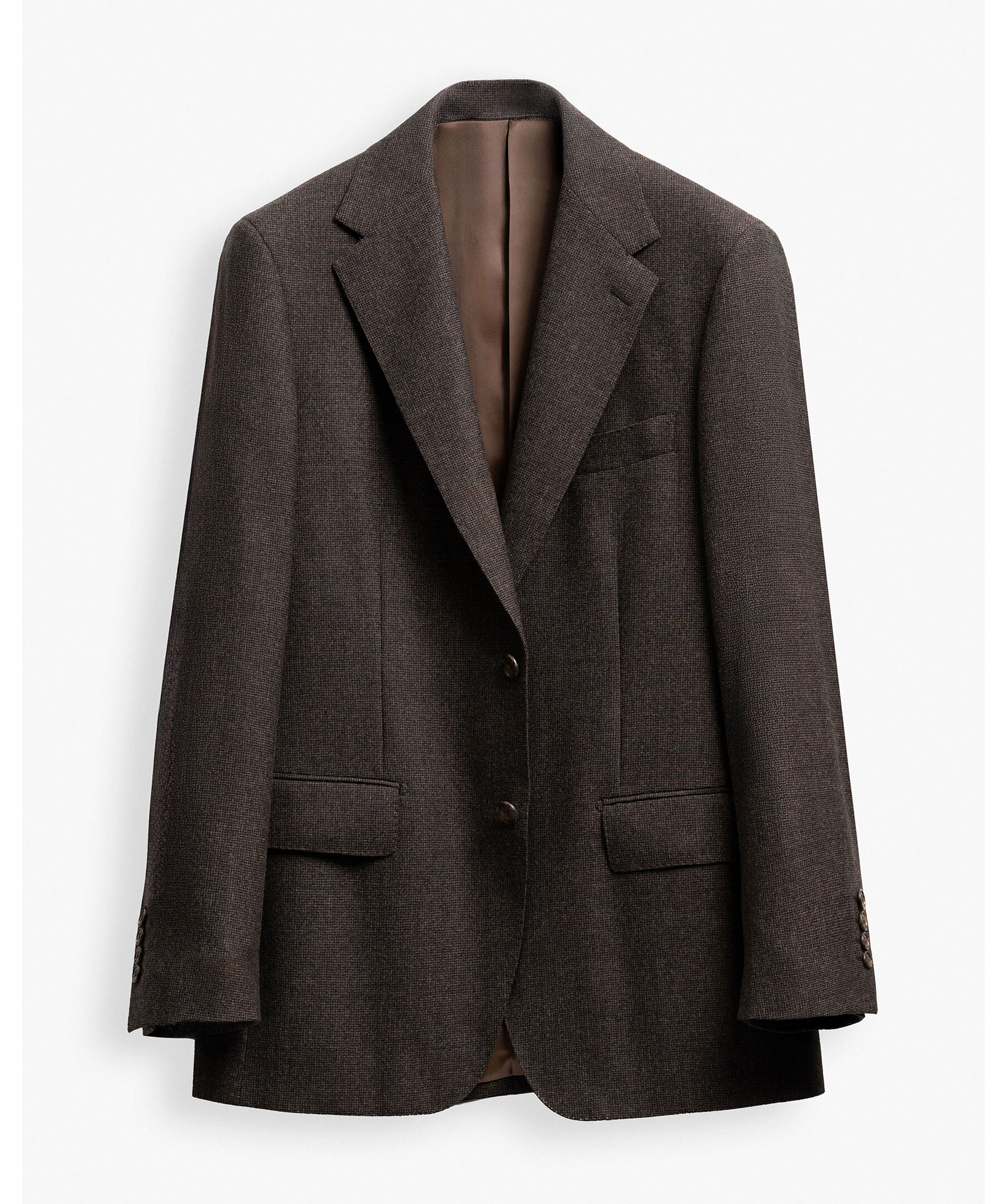 Mörkbrun kavaj med subtilt hundtandsmönster från 1797. Kavajen har två fickor med lock, en bröstficka samt dubbelt sprund. Kavajen är detaljerad med dekorativa AMF-stygn, vilket ger en skräddad och genomarbetad känsla. Halvkanvas-konstruktionen kombinerar stil och komfort på ett sätt som få andra konstruktioner gör. Den ger en elegant och följsam silhuett med perfekt struktur, samtidigt som den är lätt och behaglig att bära – oavsett tillfälle.