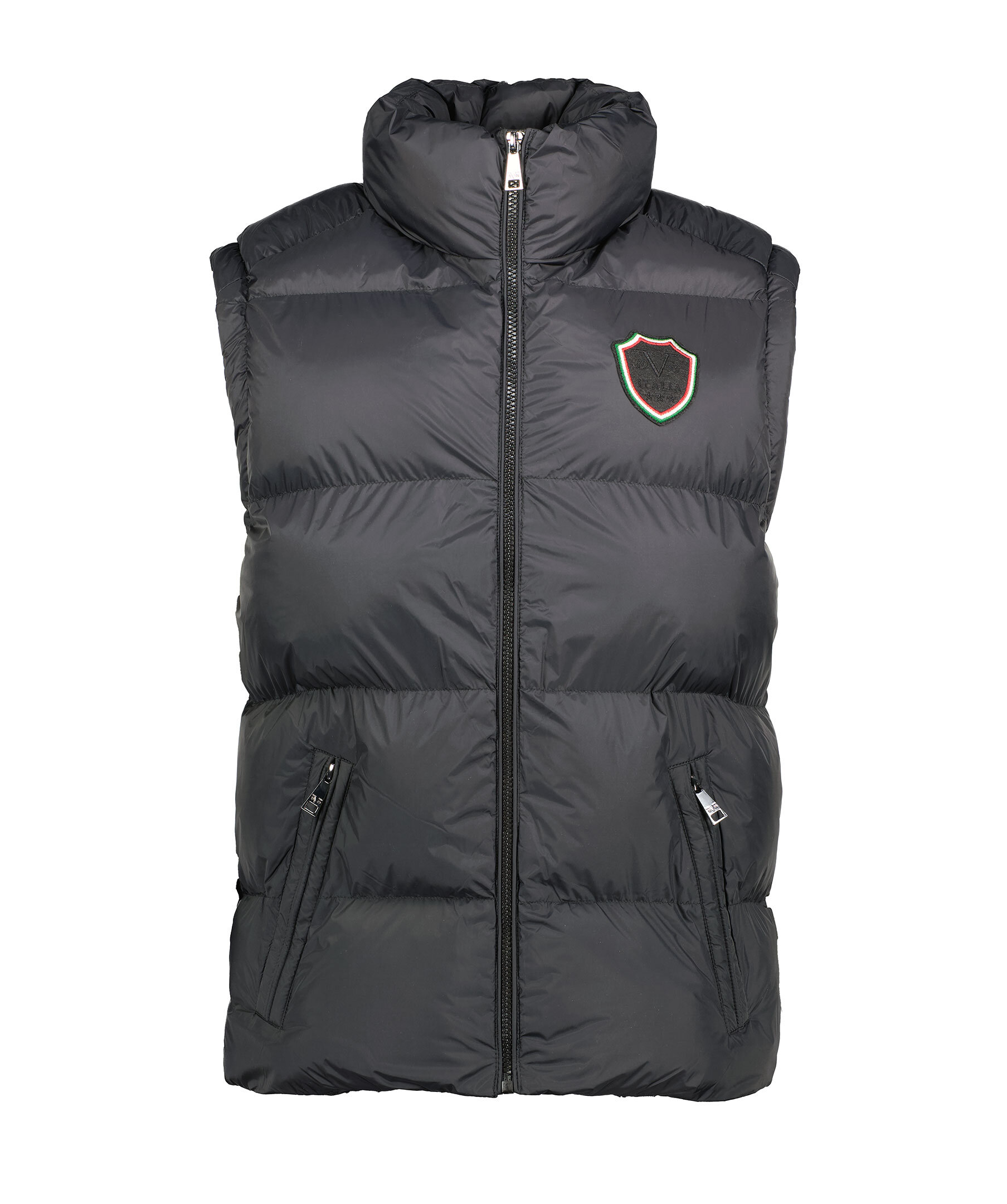 Svart pufferväst från 19V69 Italia by Versace. Västen stängs med dragkedja framtill och har två sidfickor med dragkedja samt logotyp-patch på vänster bröst. Tillverkad i polyamid.