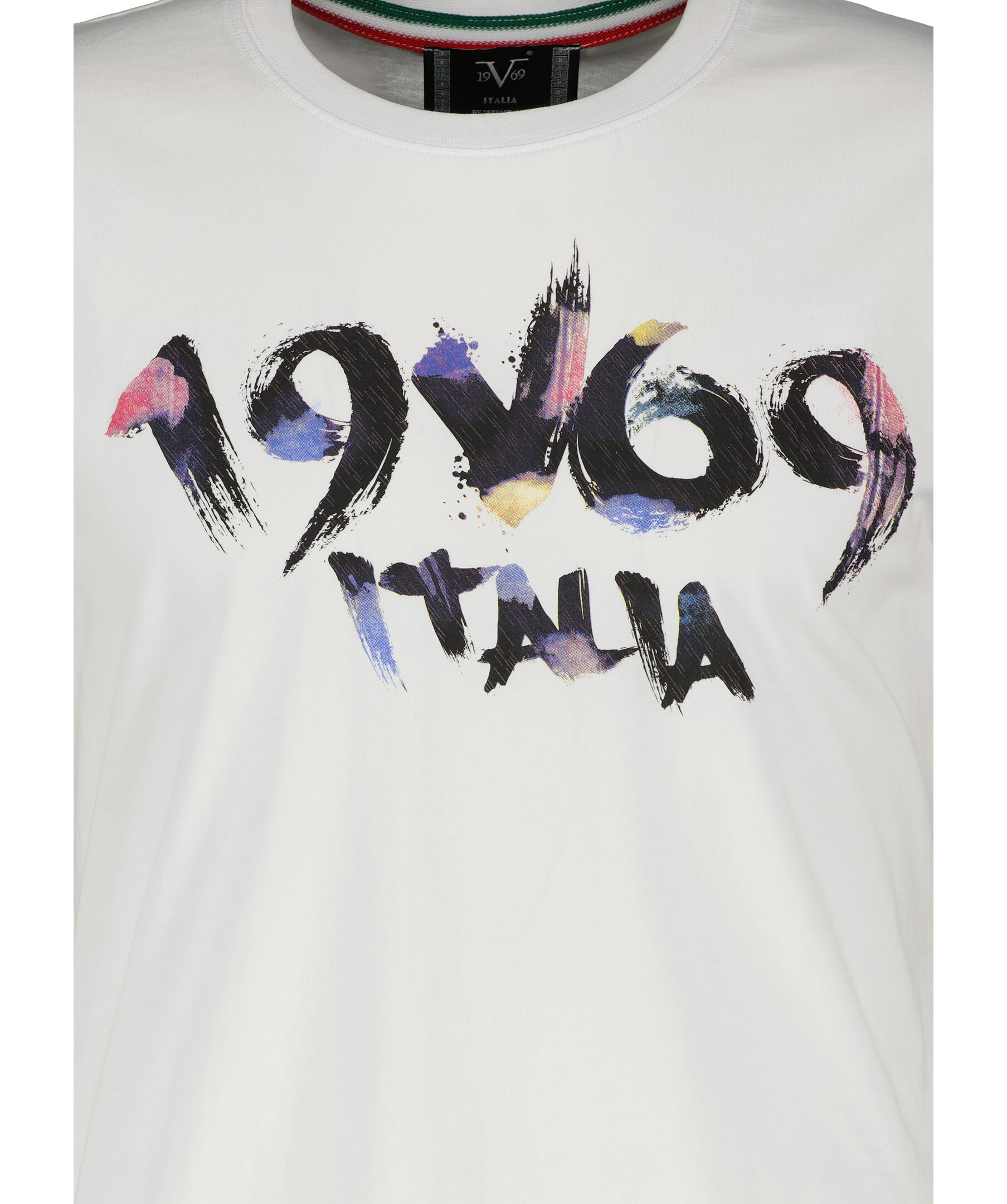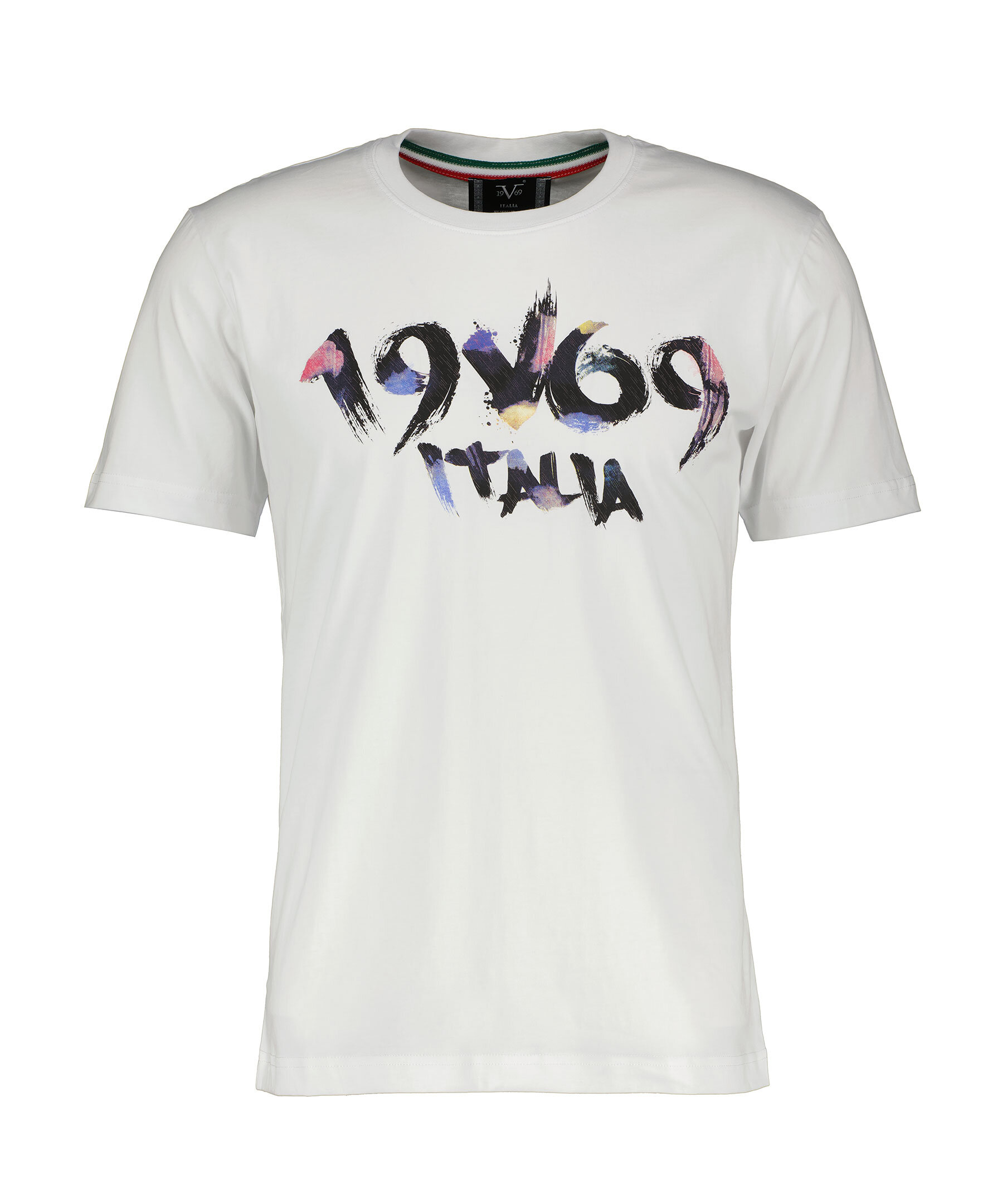 Vit t-shirt med tryck från 19V69 Italia by Versace. Stort logotyptryck på framsidan. Korta ärmar och rund hals. Tillverkad i 100% bomull.