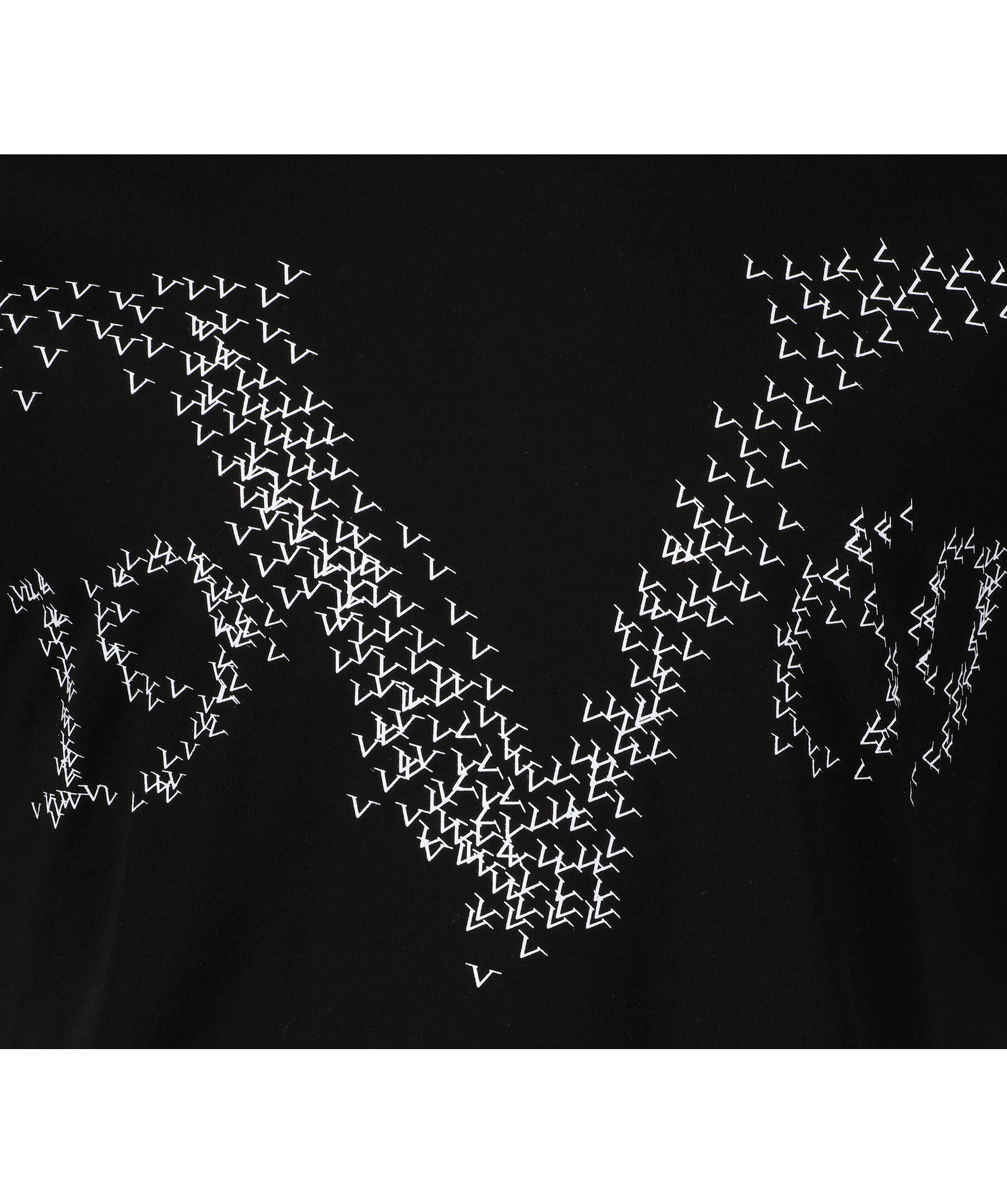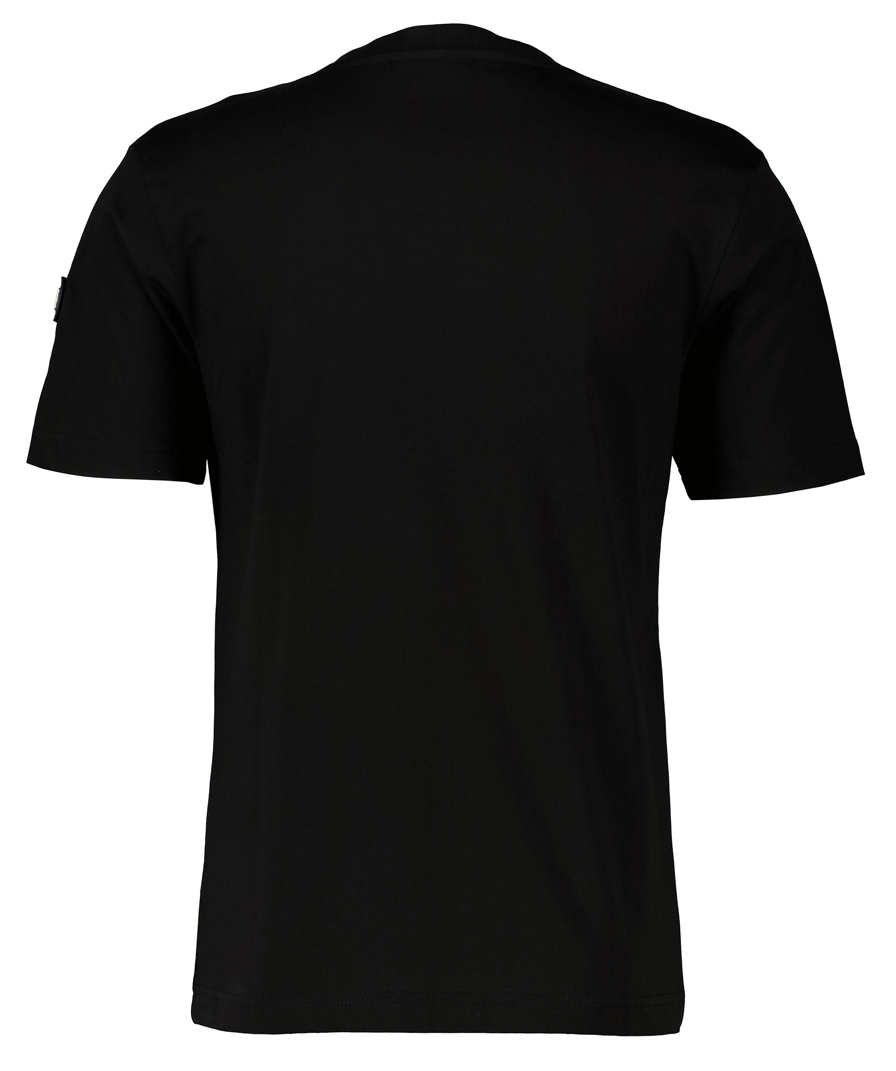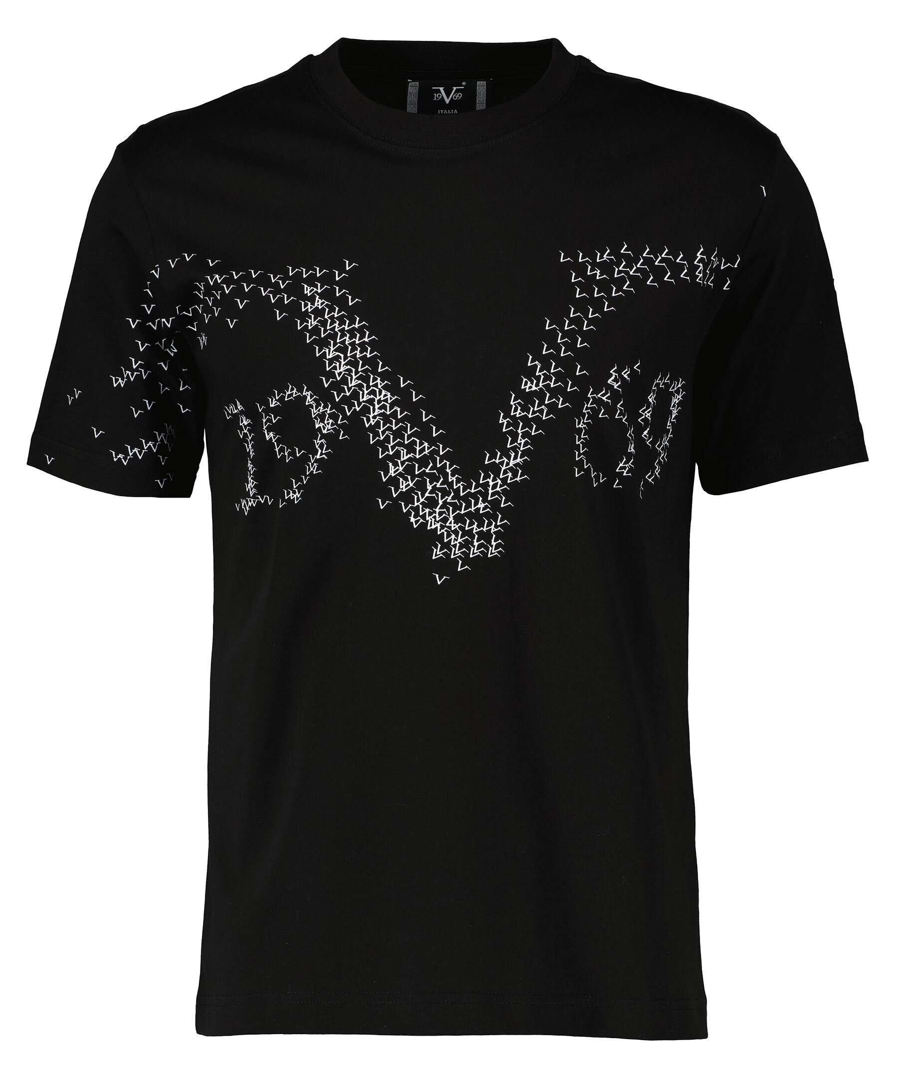 Svart t-shirt från 19V69 Italia by Versace. Tillverkad i 100% bomull. Rundad halsring med ribbstickad mudd. Patch med logotyp i plast och metall på vänster ärm. Vitt tryck mitt på tröjan.