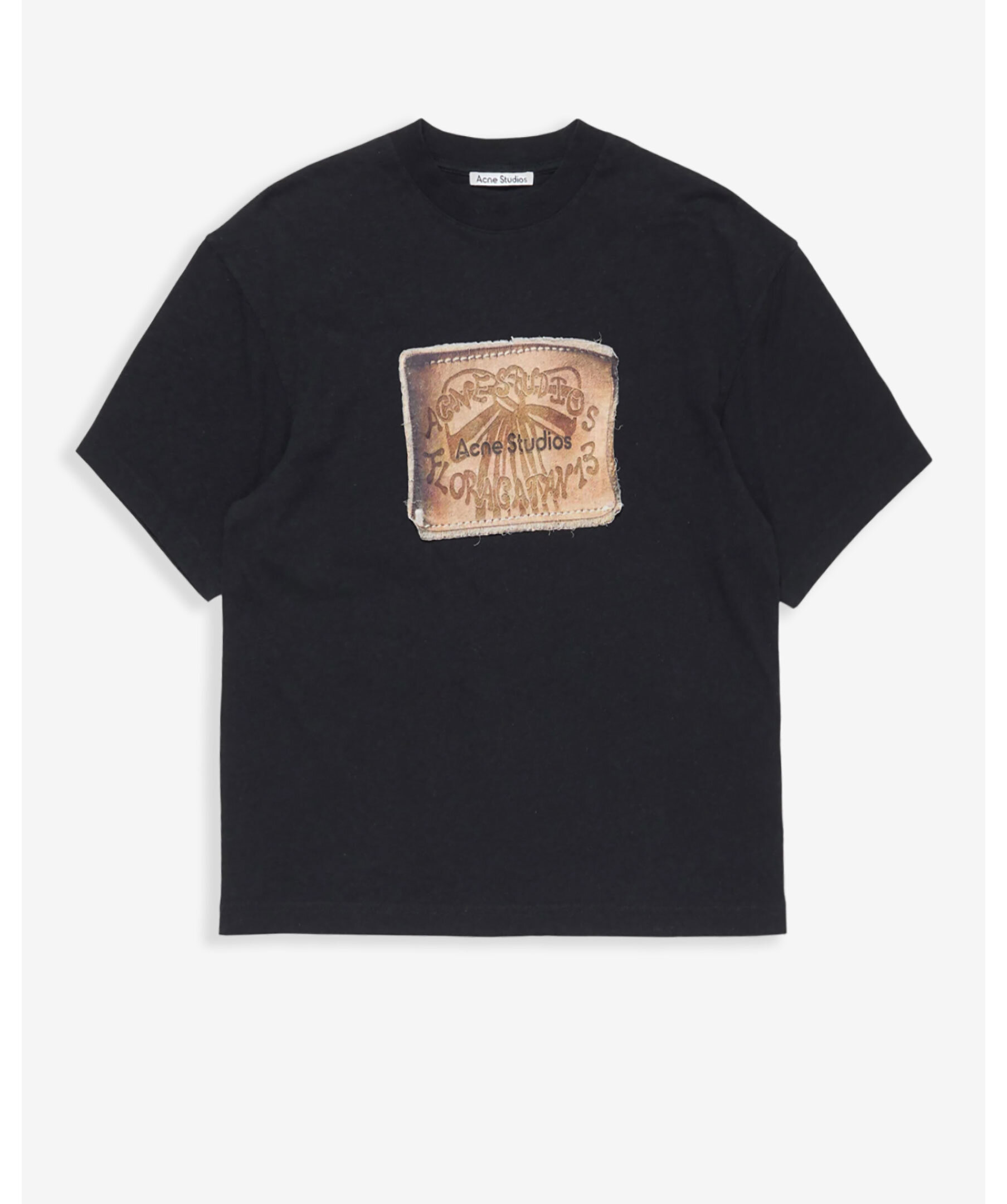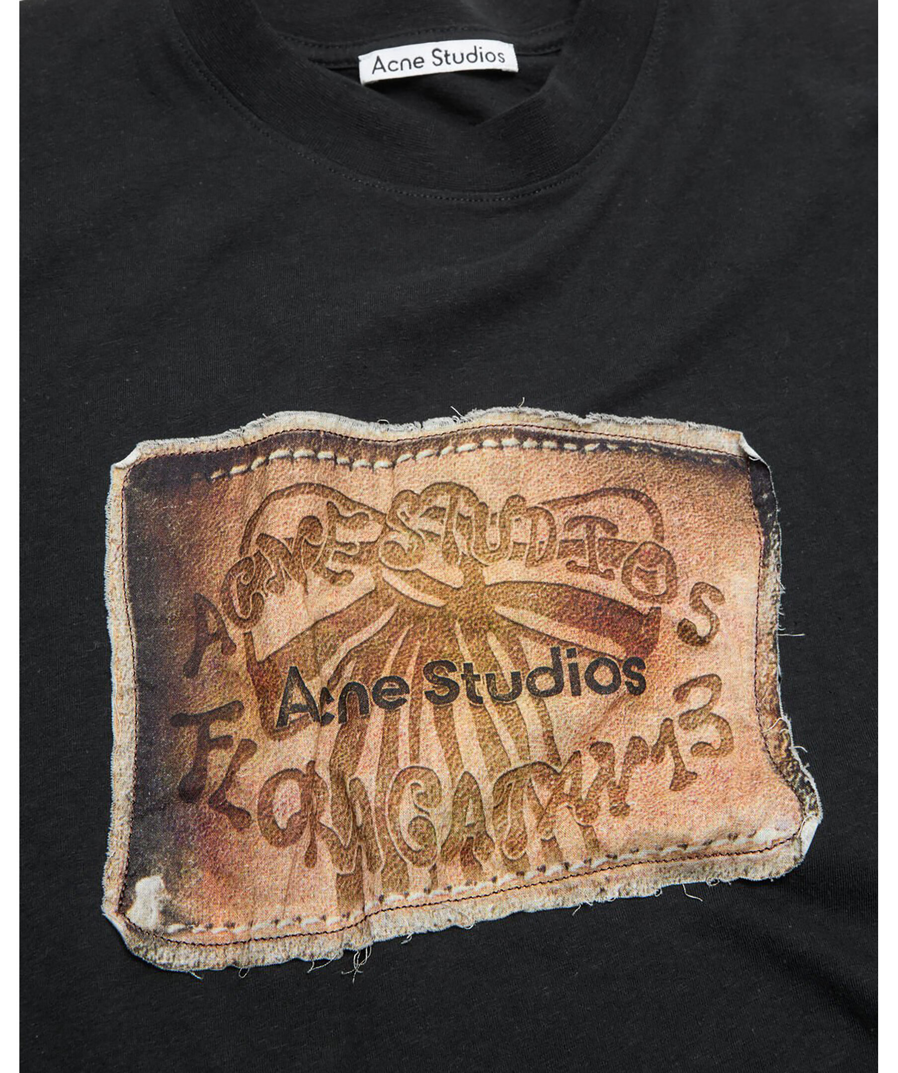 Svart t-shirt med tryck från Acne Studios. T-shirten har rundad halsringning och ett tryck över bröstet med logotyp. Tillverkad av bomullsjersey stickad med slubgarn för en subtilt texturerad, vintageinspirerad yta.
