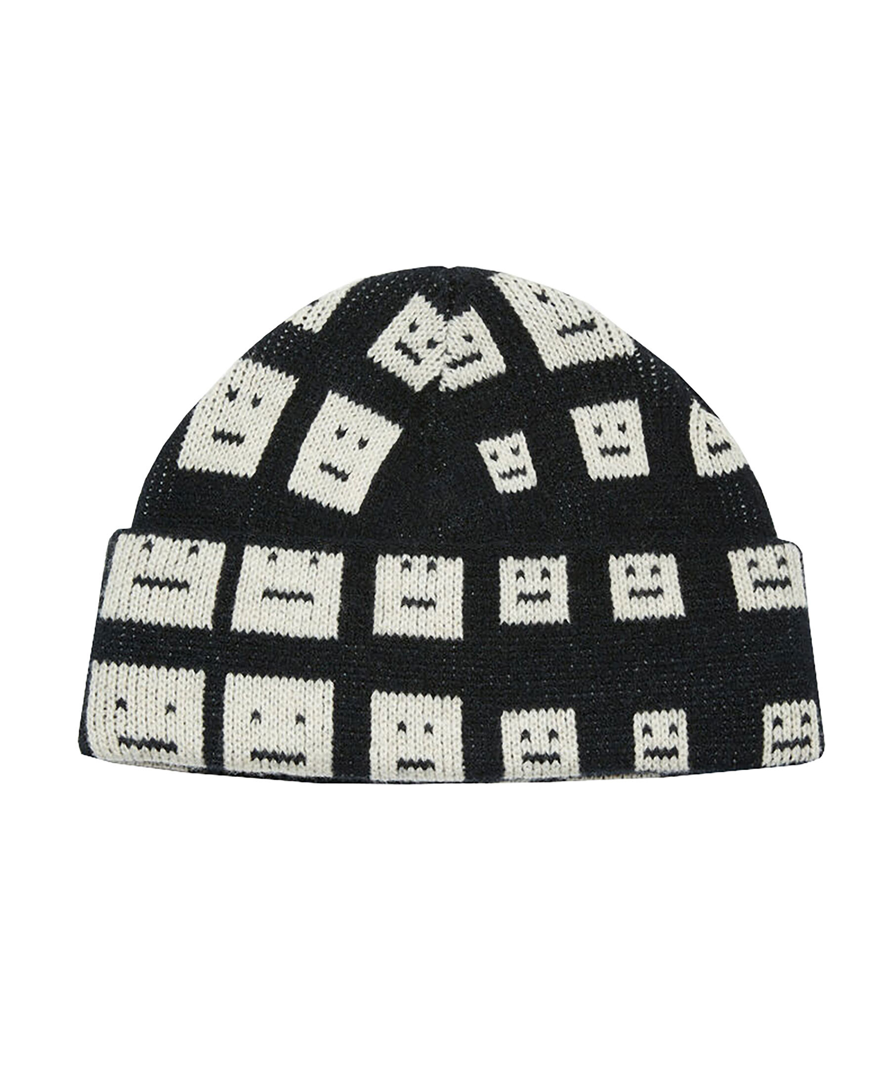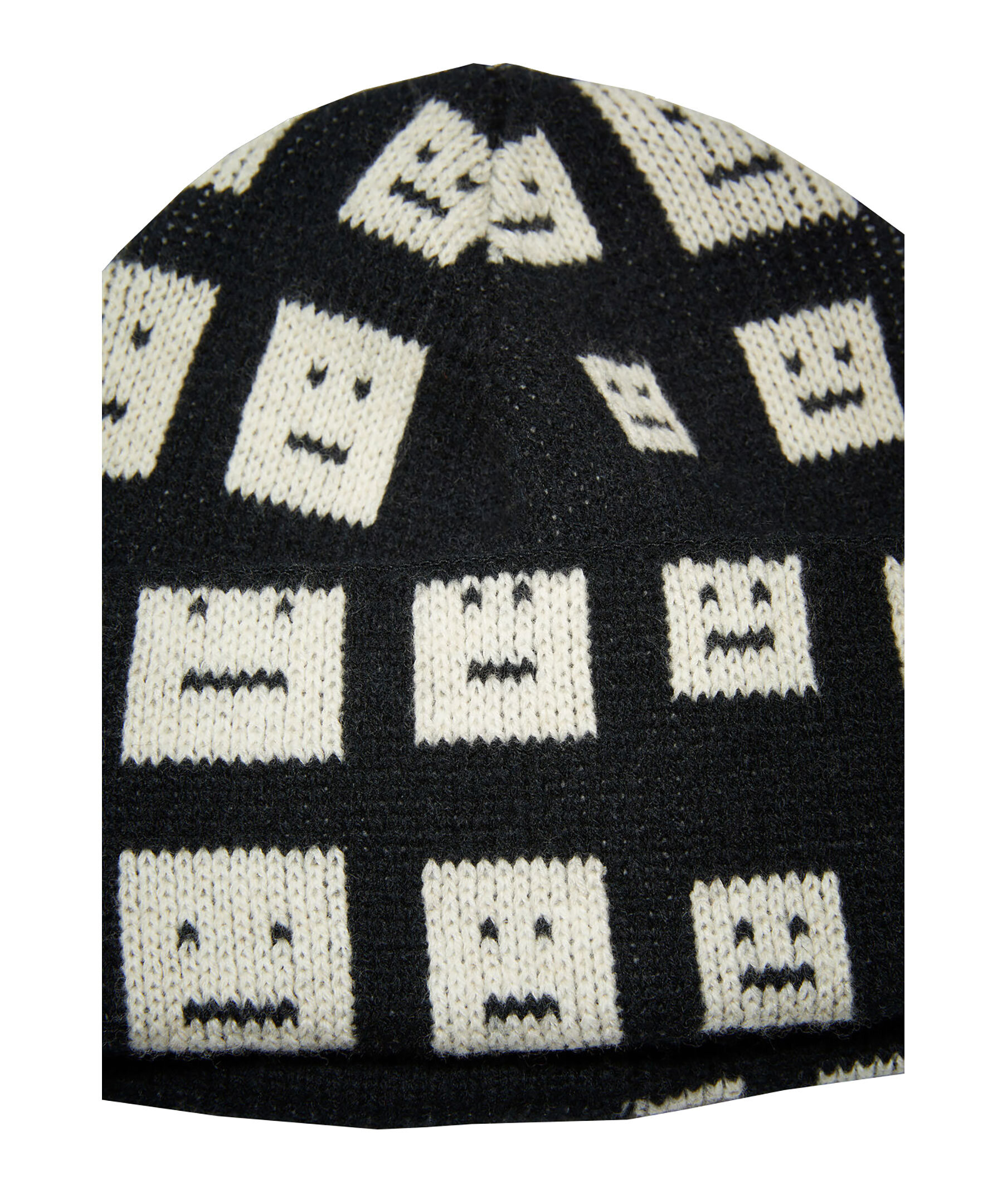 Svart mössa med vita face logo rutor från Acne Studios. Gjord i 100% ull.
