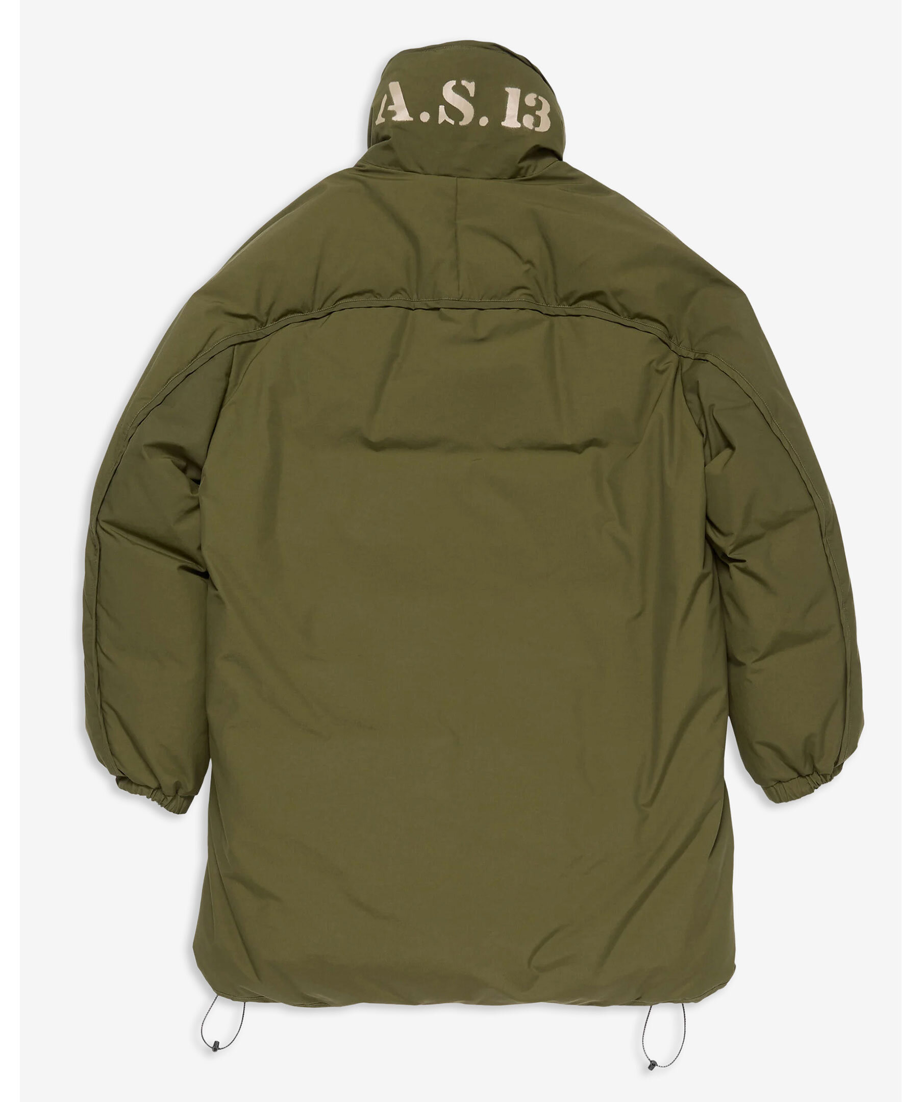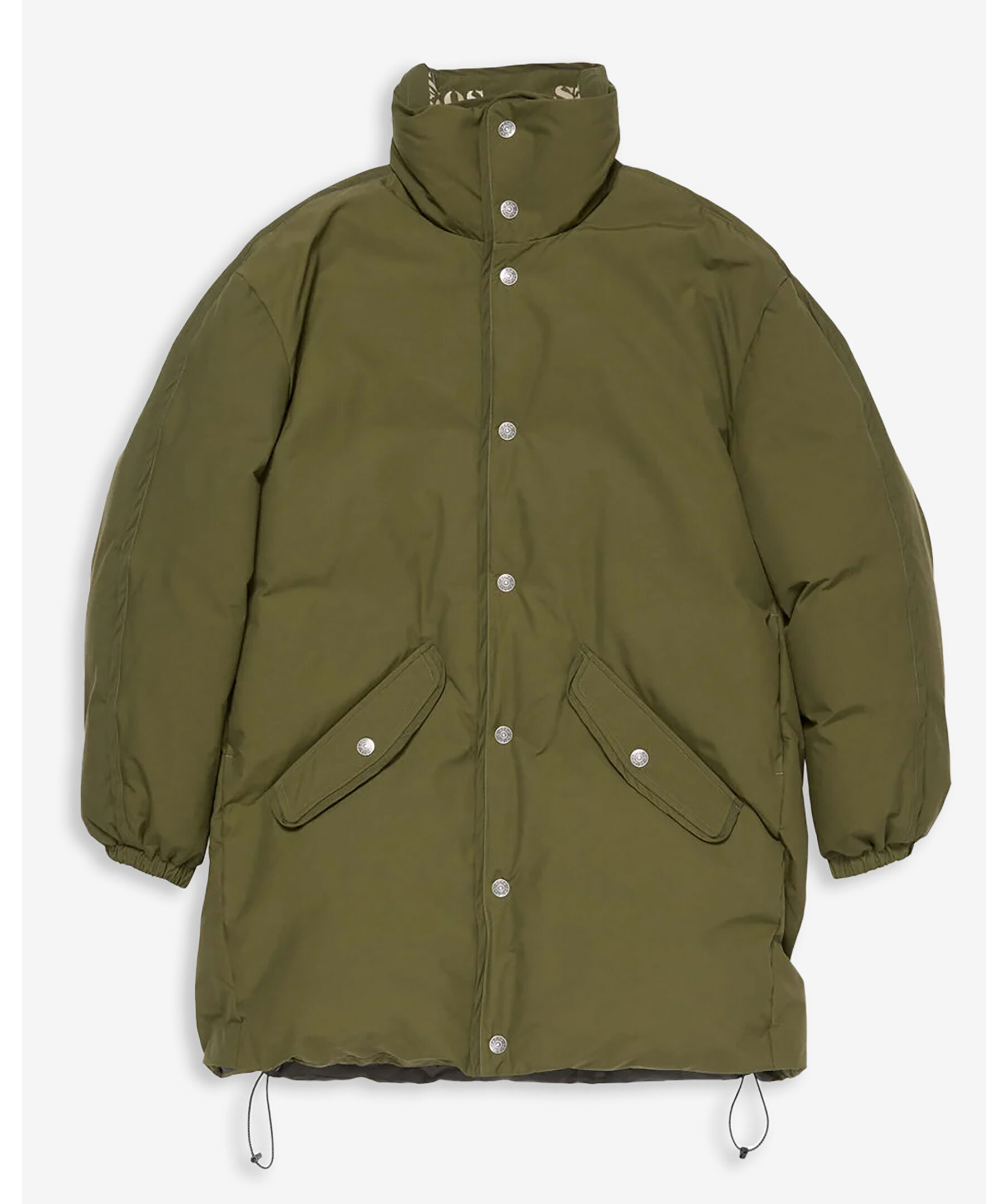 Grön dunjacka från Acne Studios i en rak och elegant design. Jackan har knappstängning framtill, två fickor med ficklock samt sidfickor. Den har en uppställd krage, elastiska ärmslut och en längd som når nedanför knäna.