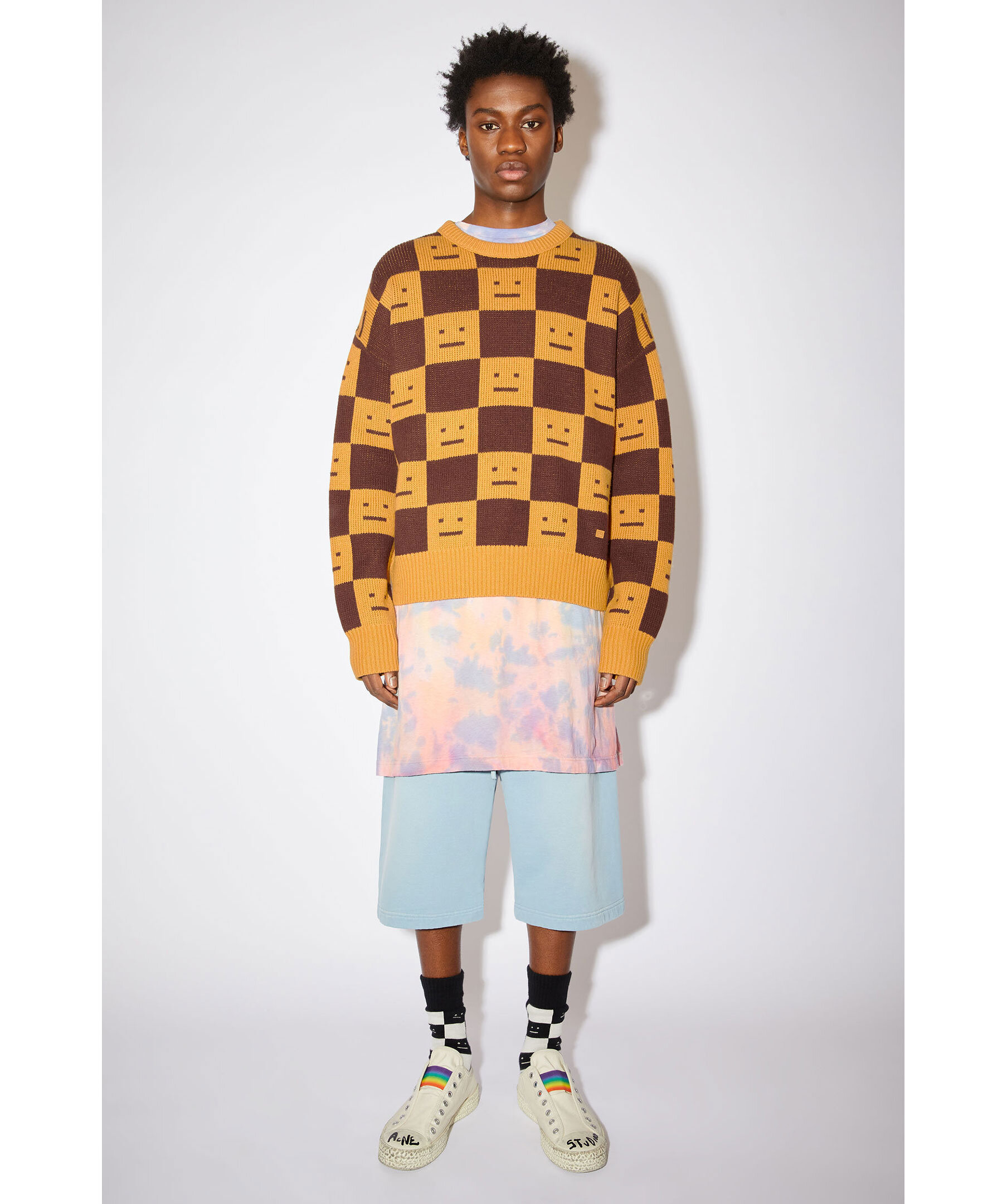 Svarta/havregrynsbeigea strumpor från Acne Studios. Rutiga jacquardstrumpor med Acnes Face-logga och är gjorda av en bomullsblandning.