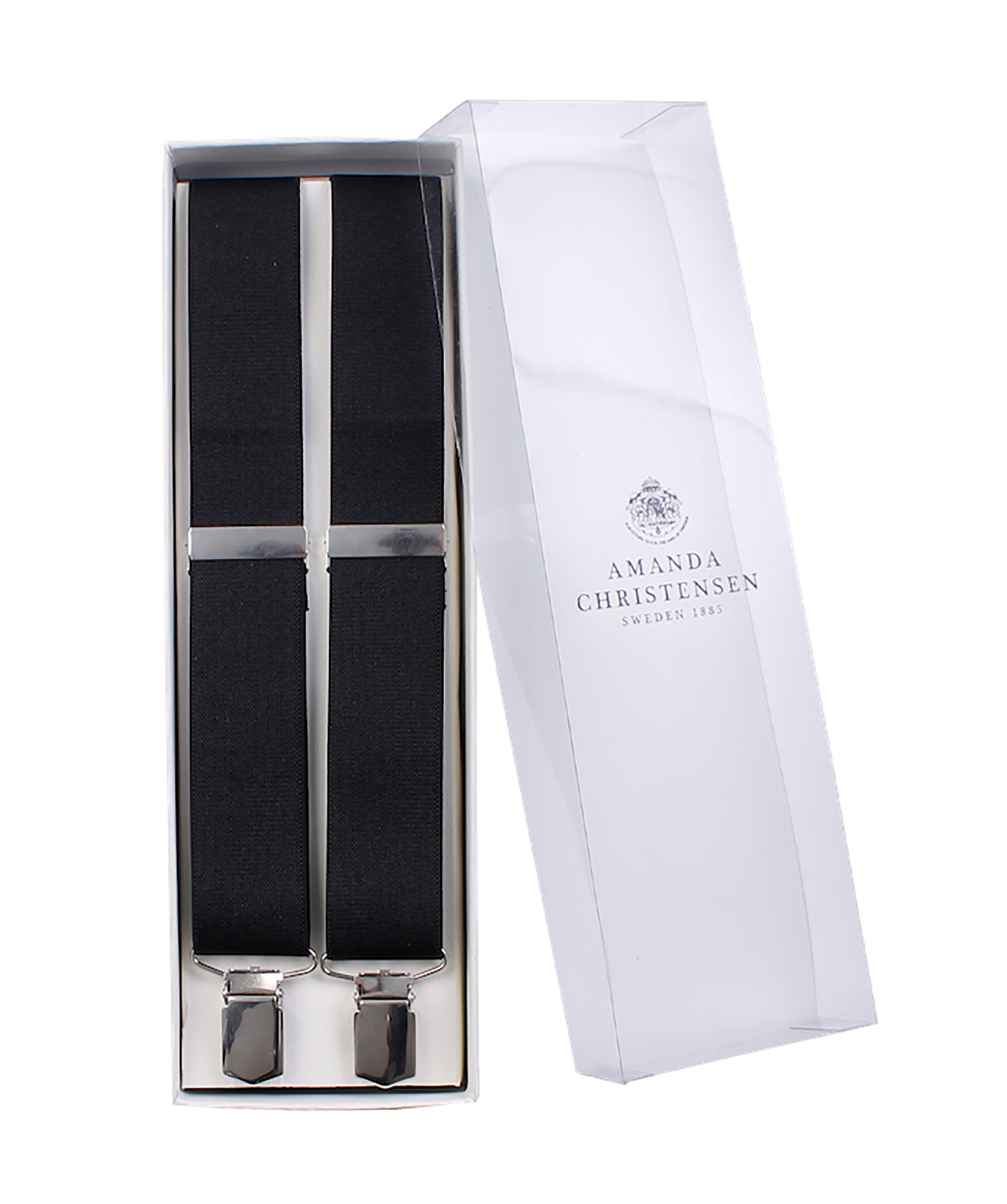 Svarta hängslen från Amanda Christensen. Tillverkade i en polyesterblandning. Mått: B: 3,5 cm.