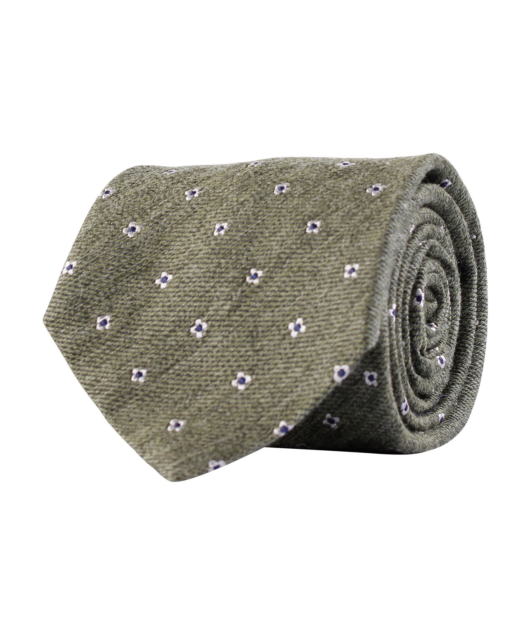Grön, blommönstrad, jacquardslips från Amanda Christensen. Tillverkad i silkesblandning. Mått: B: 8 cm.