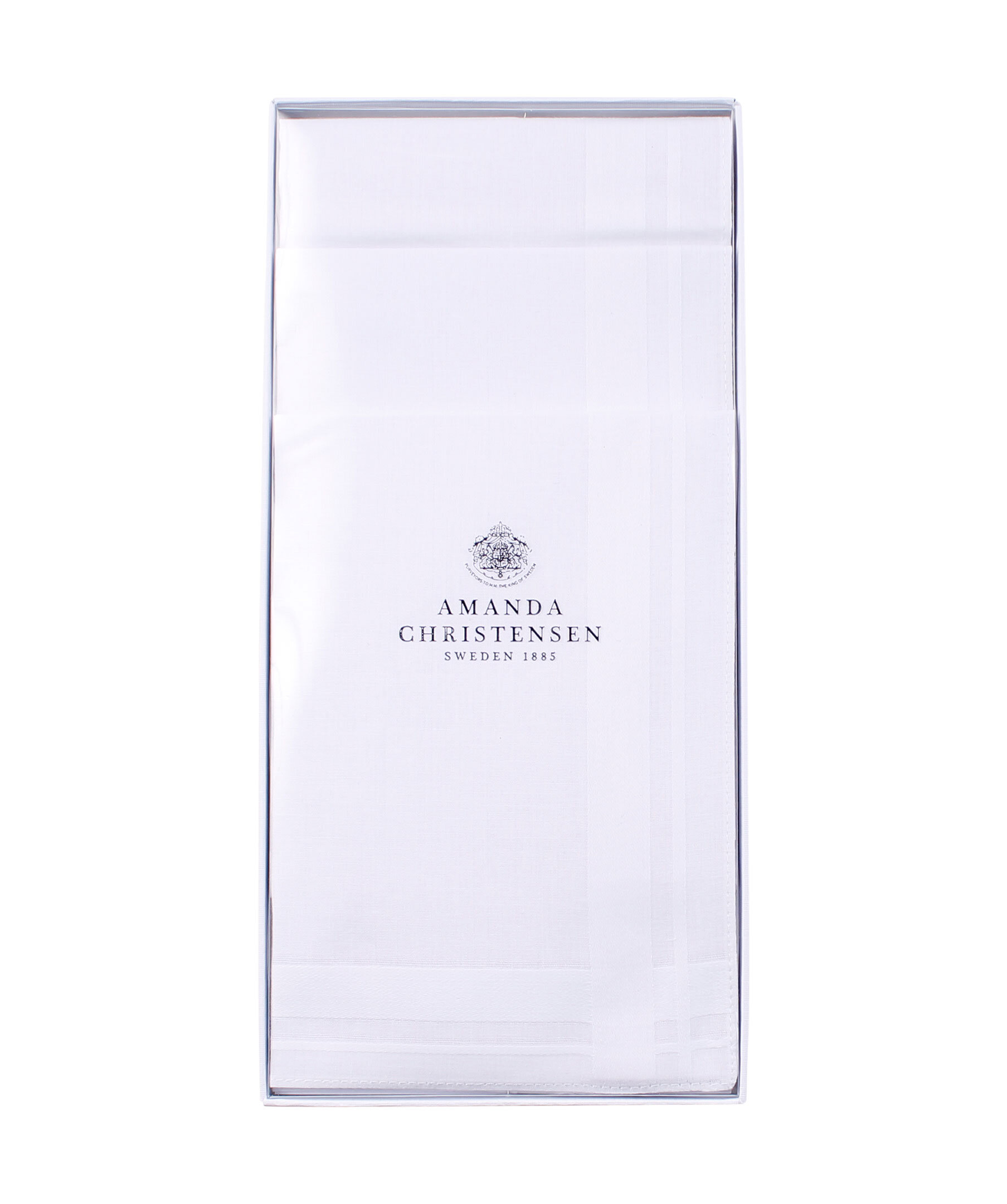 3-pack vita handkerchief från Amanda Christensen. Näsdukarna har vita ränder längs kanterna. Tillverkade i 100% bomull. Mått: 40 x 40 cm.