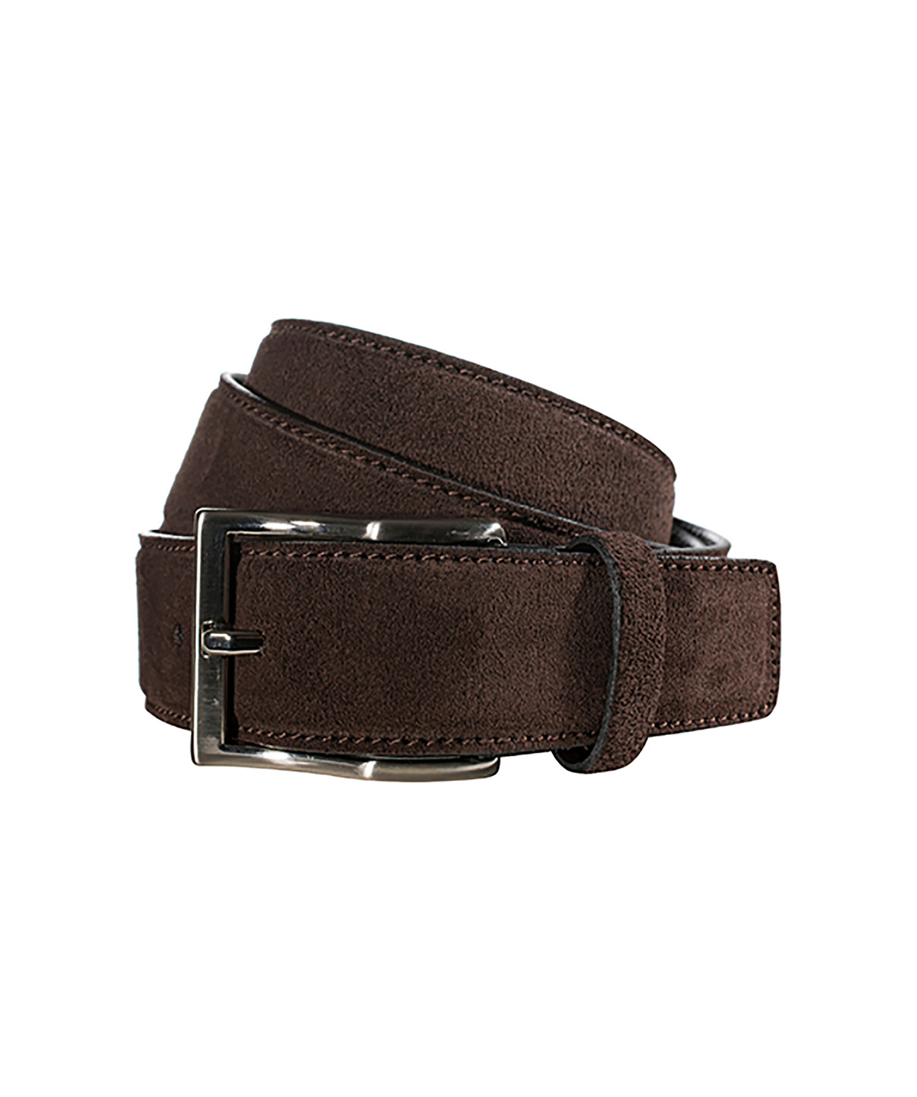 Mörkbrunt bälte i fullnarvskinn i mocka från Amanda Christensen. Tillverkat i 100% läder. Mått: 110 x 3,3 cm.