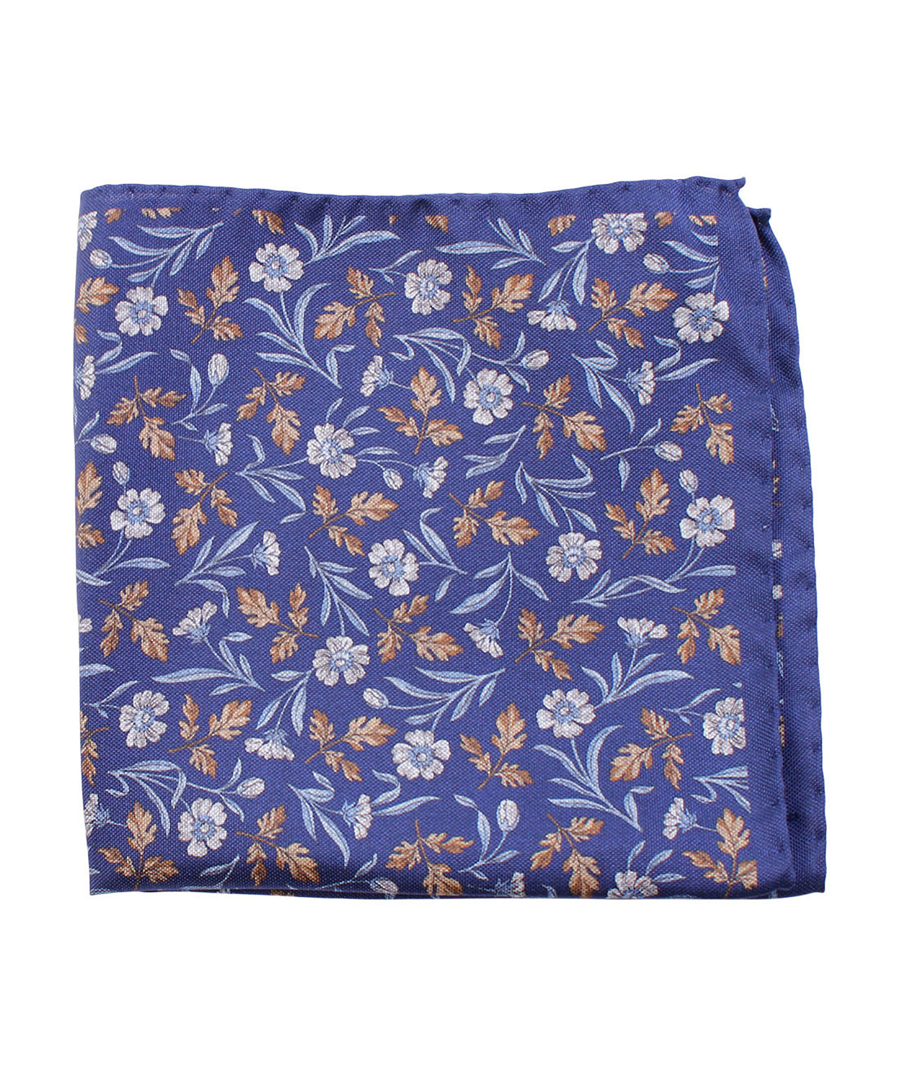 Marinblå, blommönstrad ficknäsduk från Amanda Christensen. Tillverkad i silke. Mått: 33 x 33 cm.