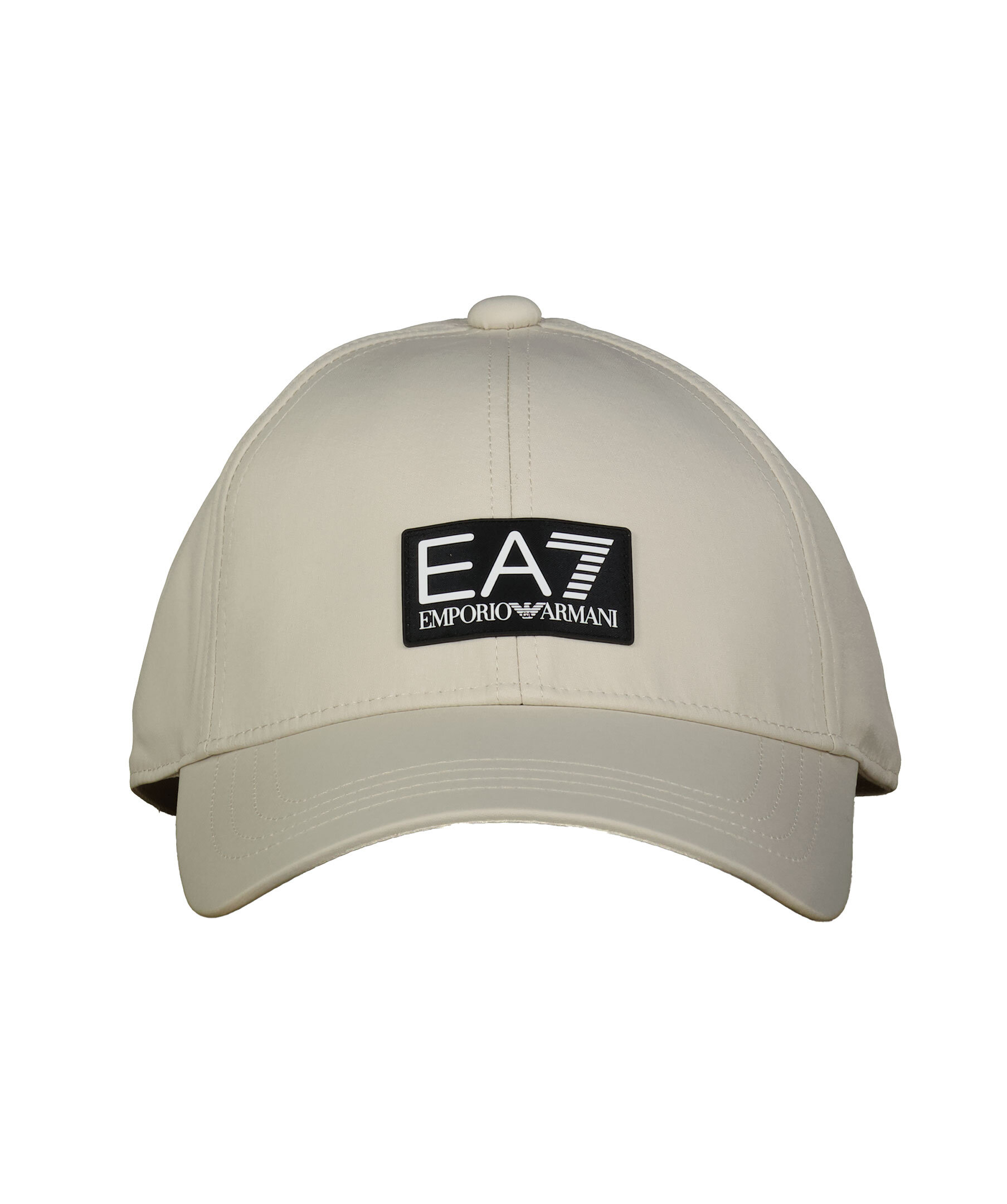 Sandfärgad keps från Armani EA7. Gummerad logotyp på framsidan. Tillverkad i en polyesterblandning.