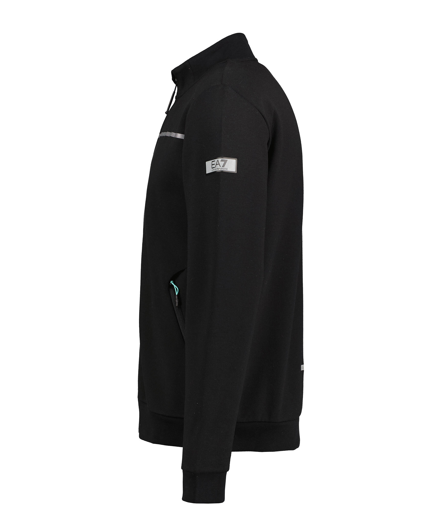 Svart sweatshirt med hel dragkedja framtill från Armani EA7. Tröjan har logotyp i reflex på vänster ärm samt på bröstet och bak i svanken. Två sidfickor med dragkedja. Normal passform. Tillverkad i en polyester- och bomullsblandning.