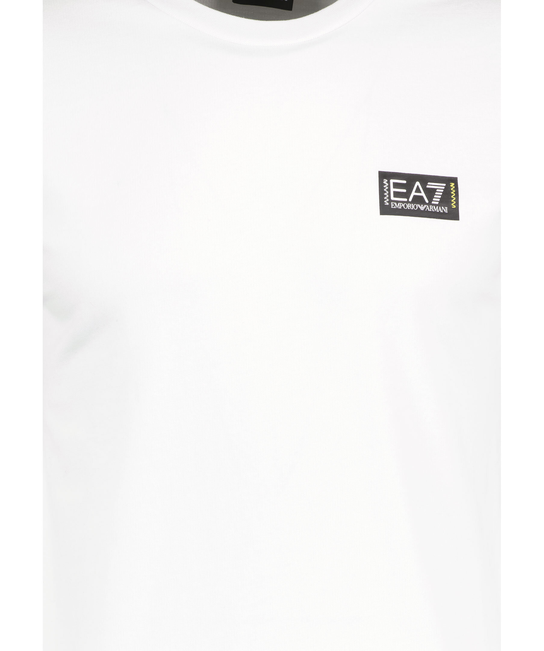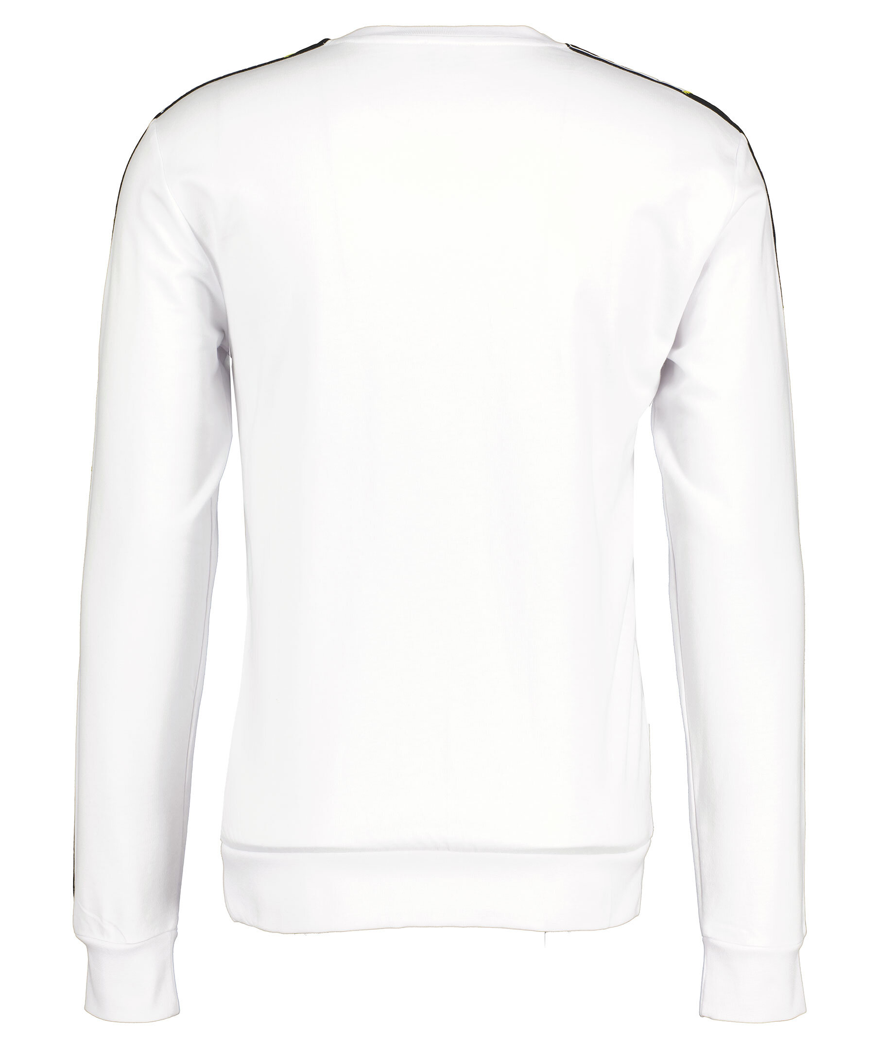 Vit sweatshirt från Armani EA7. Svarta och vita revärer med gummerade logotyper. Gummerad logotyp på vänster bröst. Ribbstickade muddar vid kragen, ärm- och plaggslut.