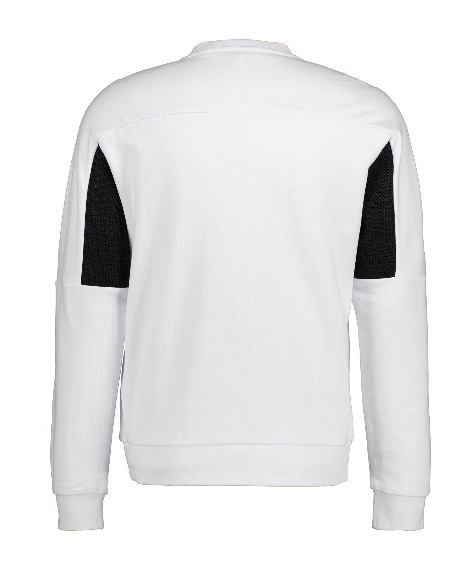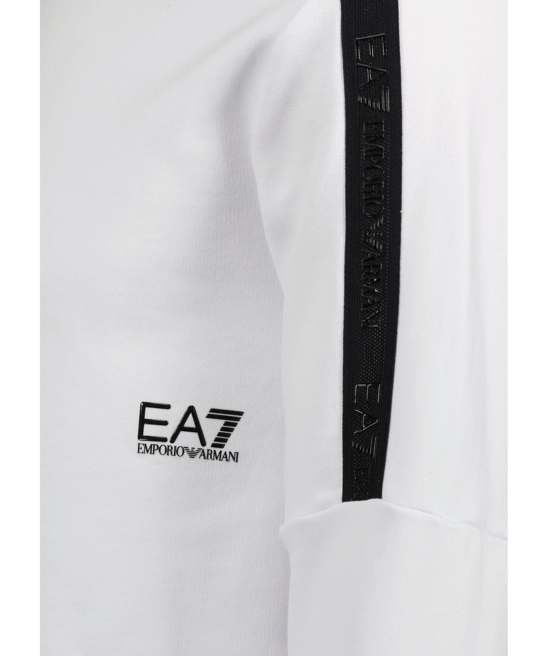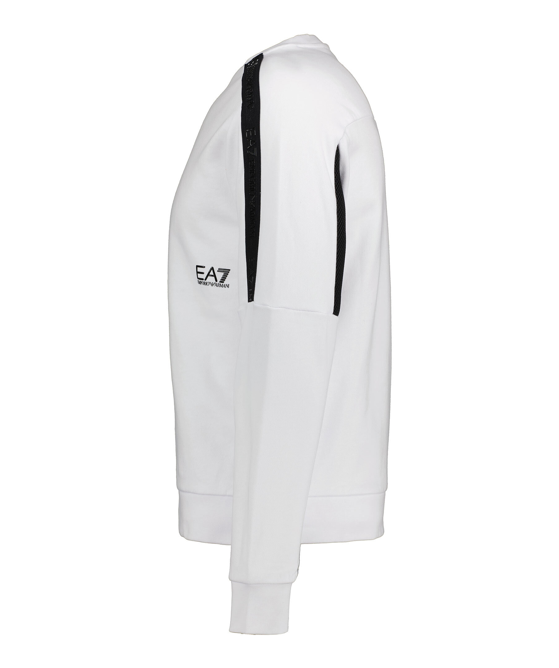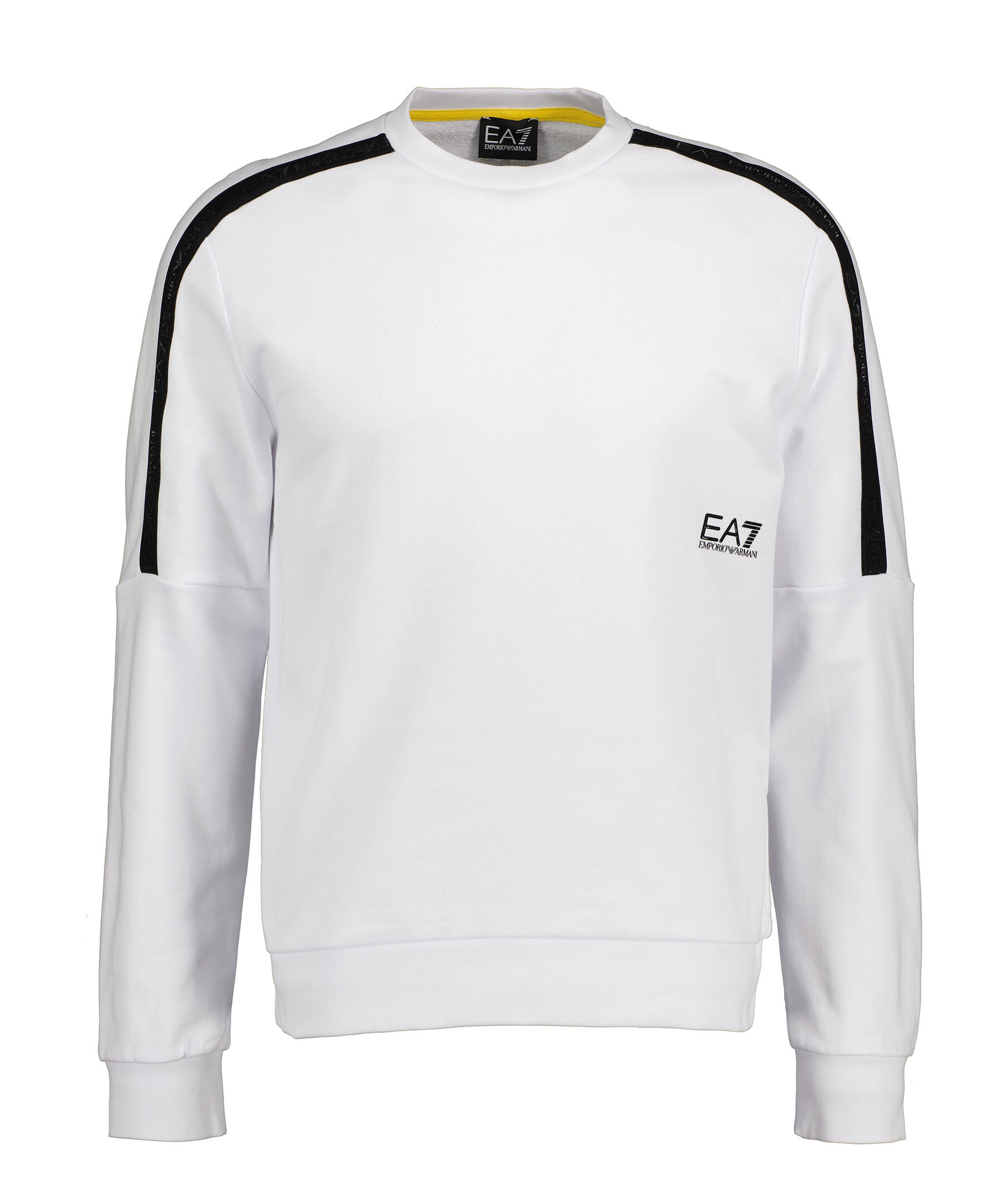 Vit sweatshirt från Armani EA7. Svarta revärer med gummerad logotyp samt gummerad logotyp på bröstet. Ventilationspatches vid armhålorna. Ribbstickade muddar samt halsringning. Tillverkad i 100% bomull.