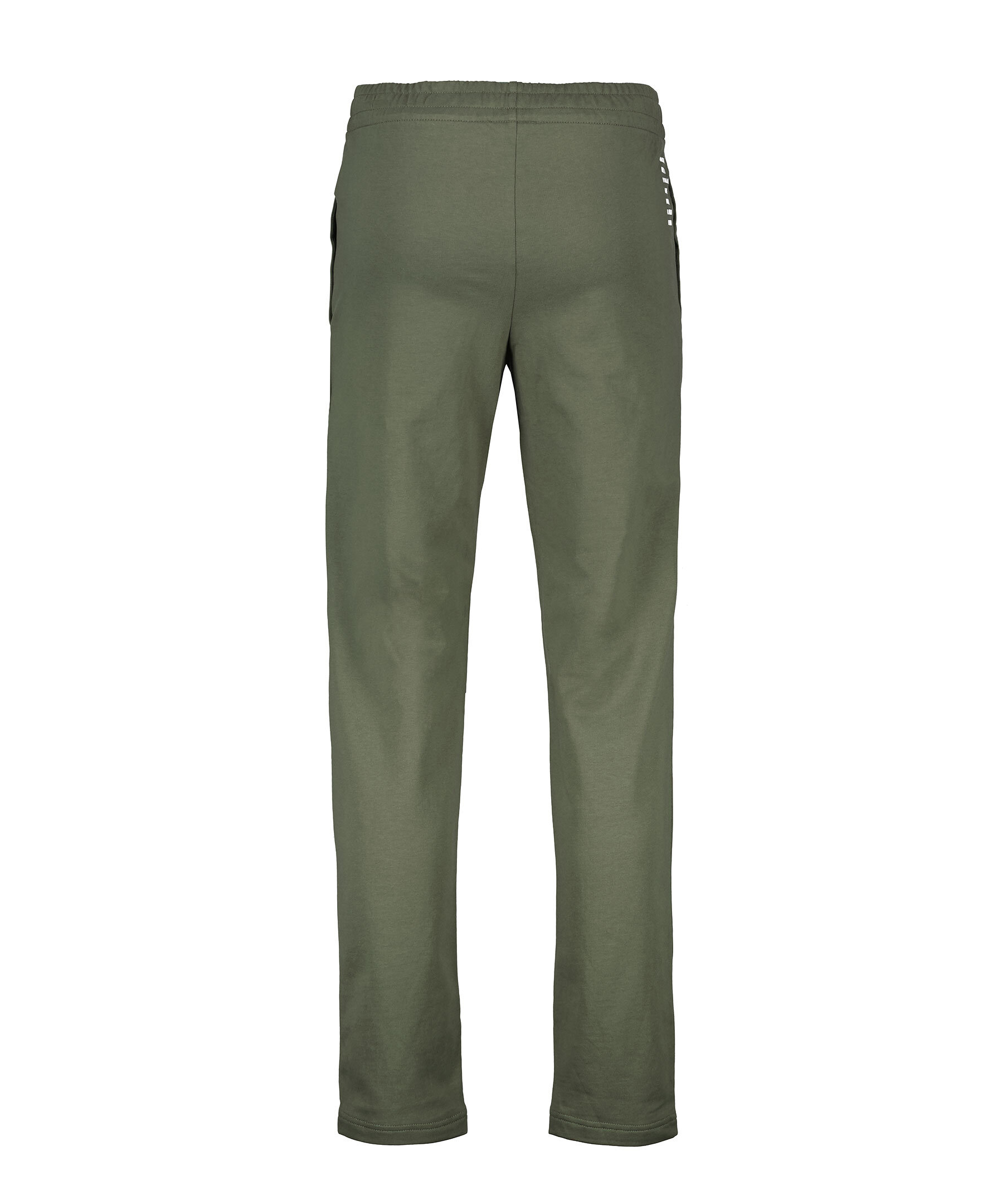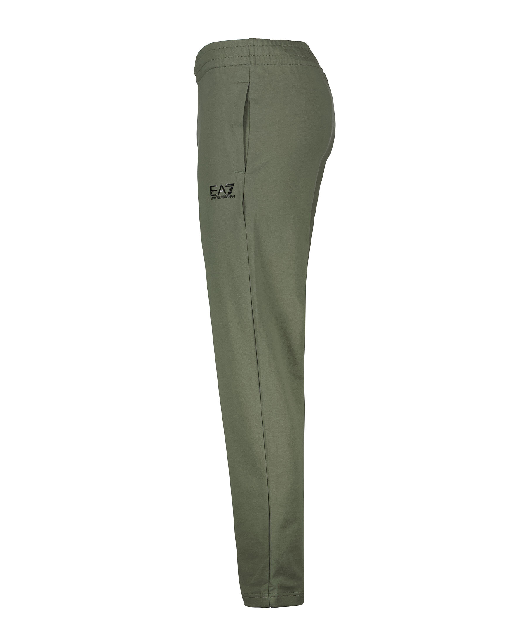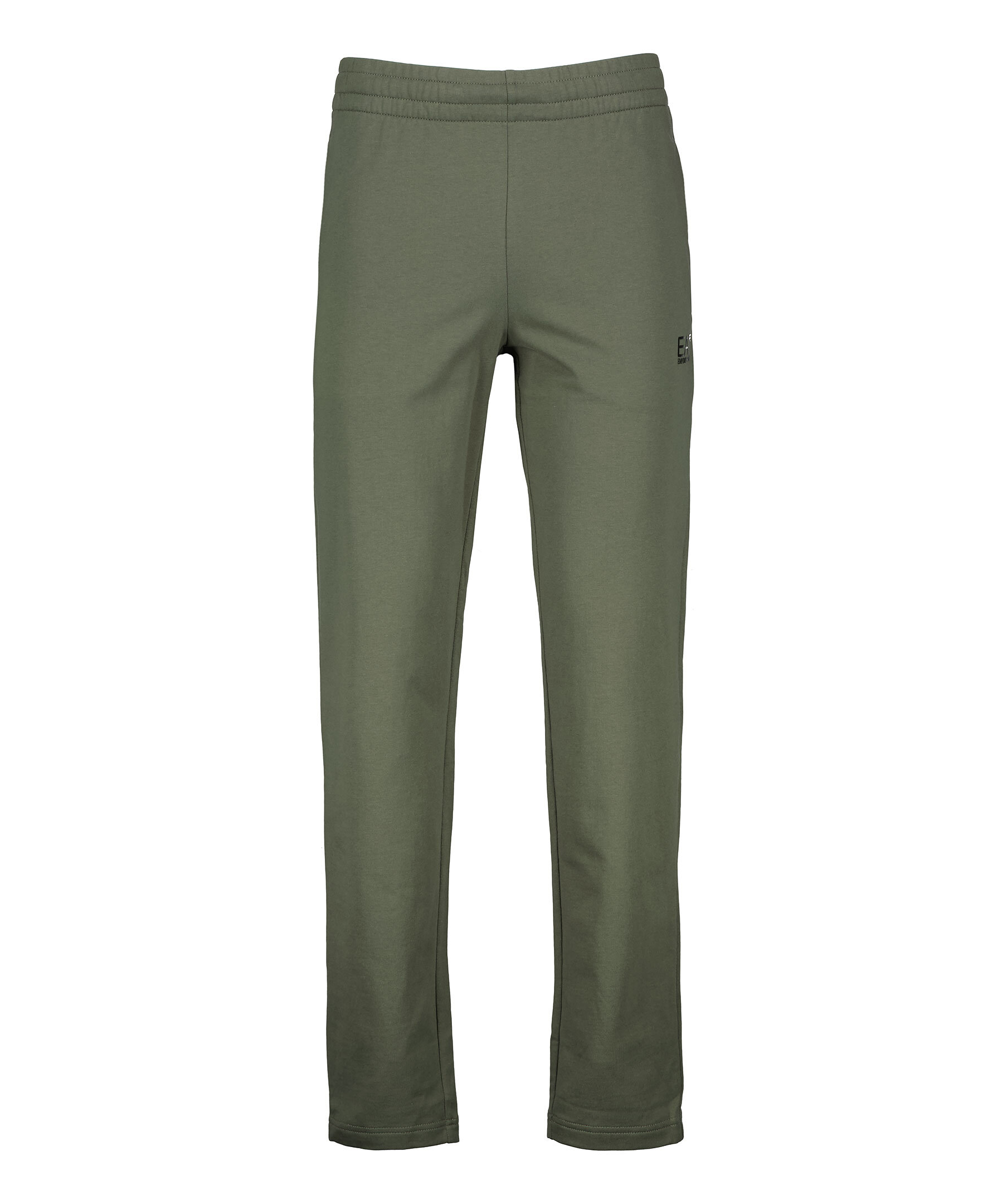Mörkgrönt tracksuit set från Armani EA7. Tillverkad av mjuk bomull. Den består av en sweatshirt med stativkrage, hel dragkedja, två sidfickor, resårkanter och gummerad, svart logotyp. Tillsammans med tröjan kommer joggingbyxor med dragsko i midjan, två sidfickor och gummerad, svart logotyp på ena benet.