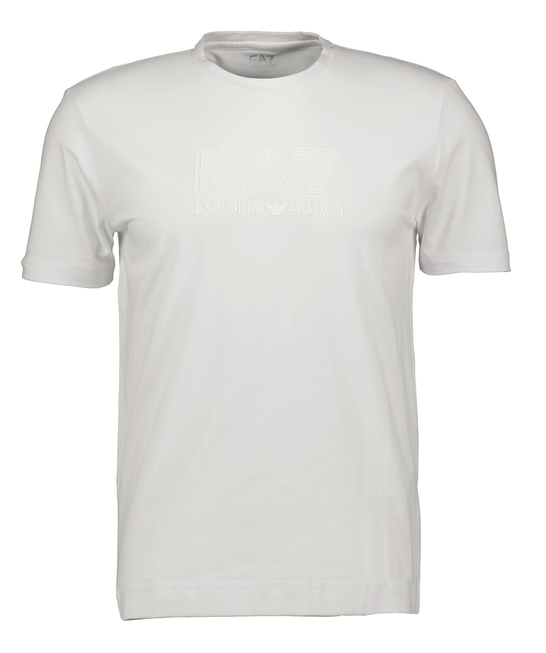 Vit T-shirt från Armani EA7. Gummerad logotyp i vitt. Rundad halsringning. Tillverkad i bomullsblandning.