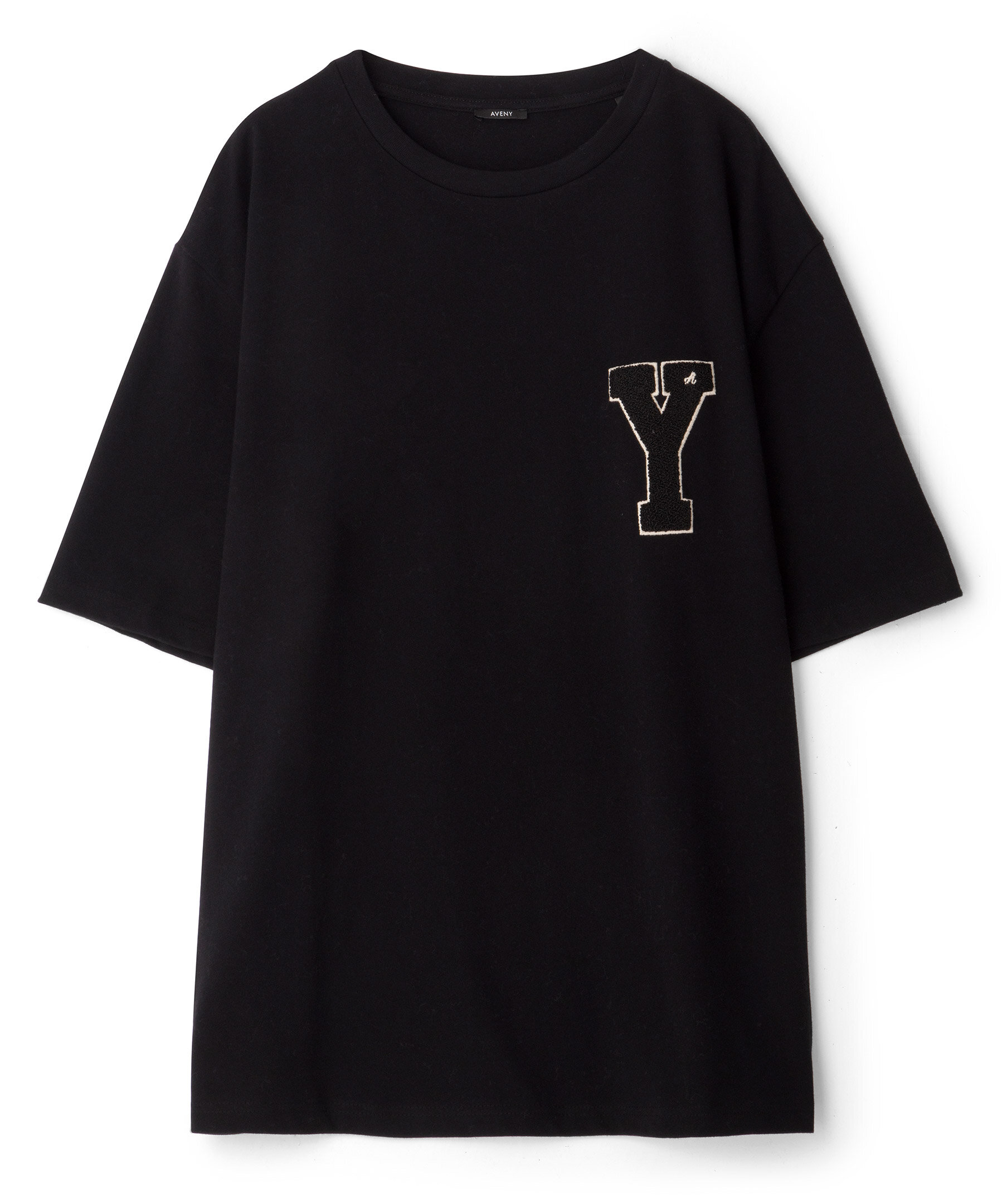 Svart T-shirt från Aveny. Rundad halsringning. Patch i froté på vänster bröst. Tillverkad i 100% Bomull.