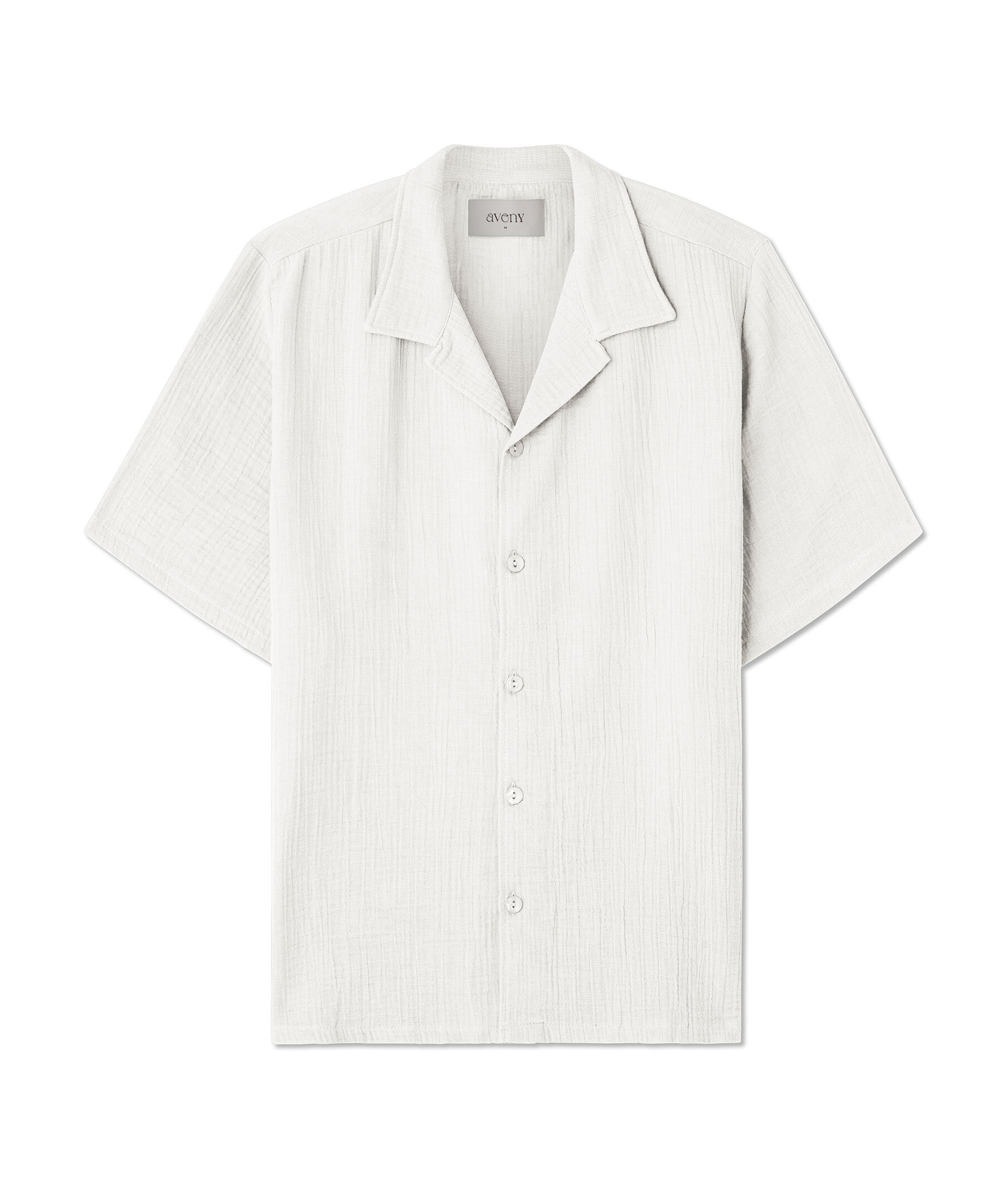Vit skjorta från Aveny. Skjortan är kortärmad och har en bowlingkrage, stängs med pärlknappar fram. Tillverkad av bomull, i ett stilfullt skrynkligt tyg.