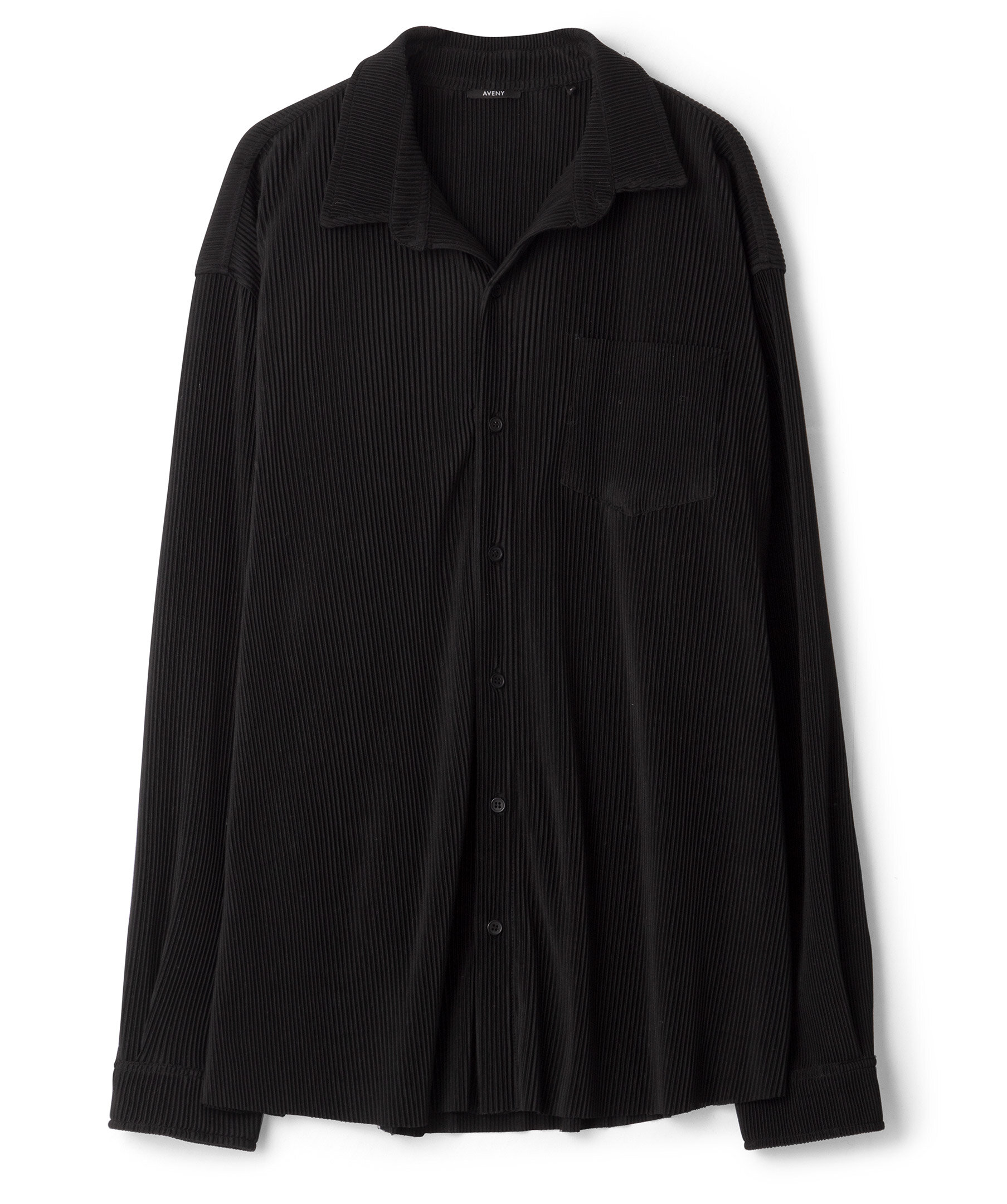 Svart plisserad skjorta från Aveny. Stängs framtill med knappar. Manschetter. Bröstficka på vänster sida. Tillverkad i 100% återvunnet polyester.