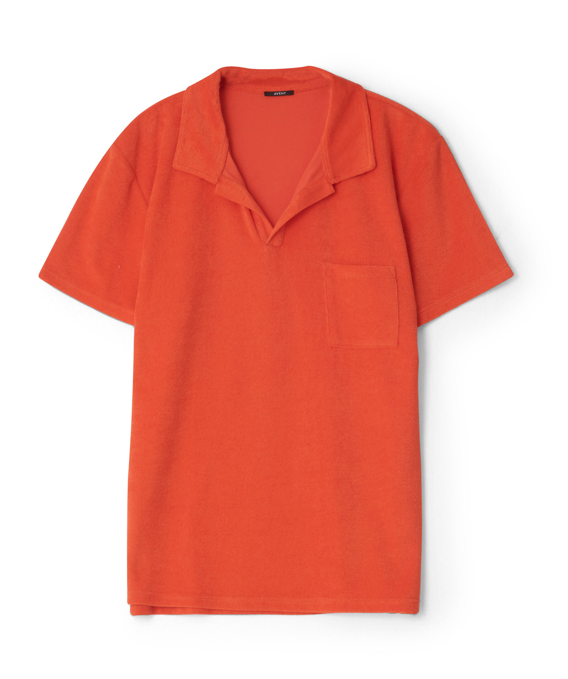 Orange piké i froté material från Aveny. Avslappnad passform. Bröstficka på vänster sida. Bowlingkrage. Tillverkad i bomullsblandning.
