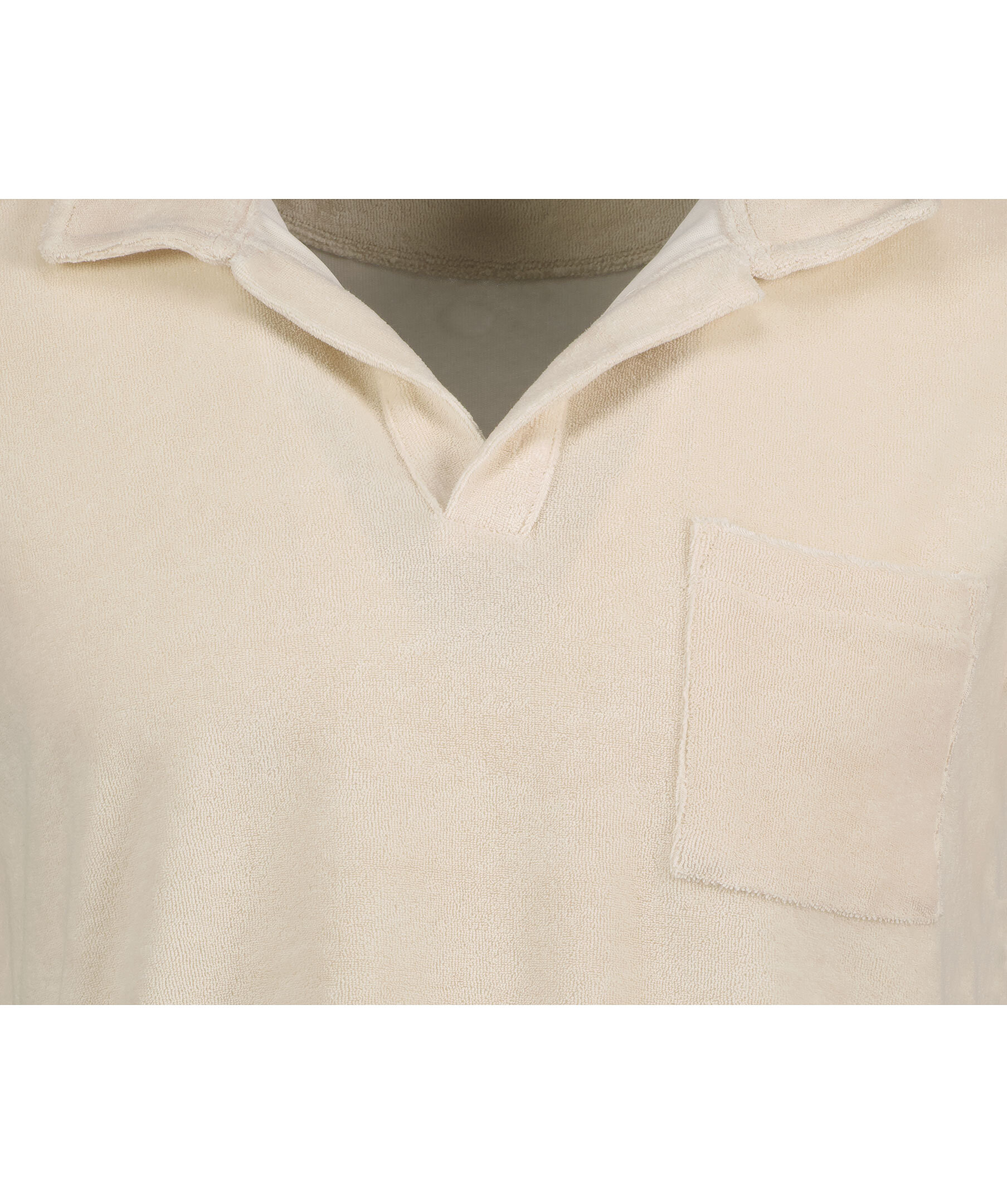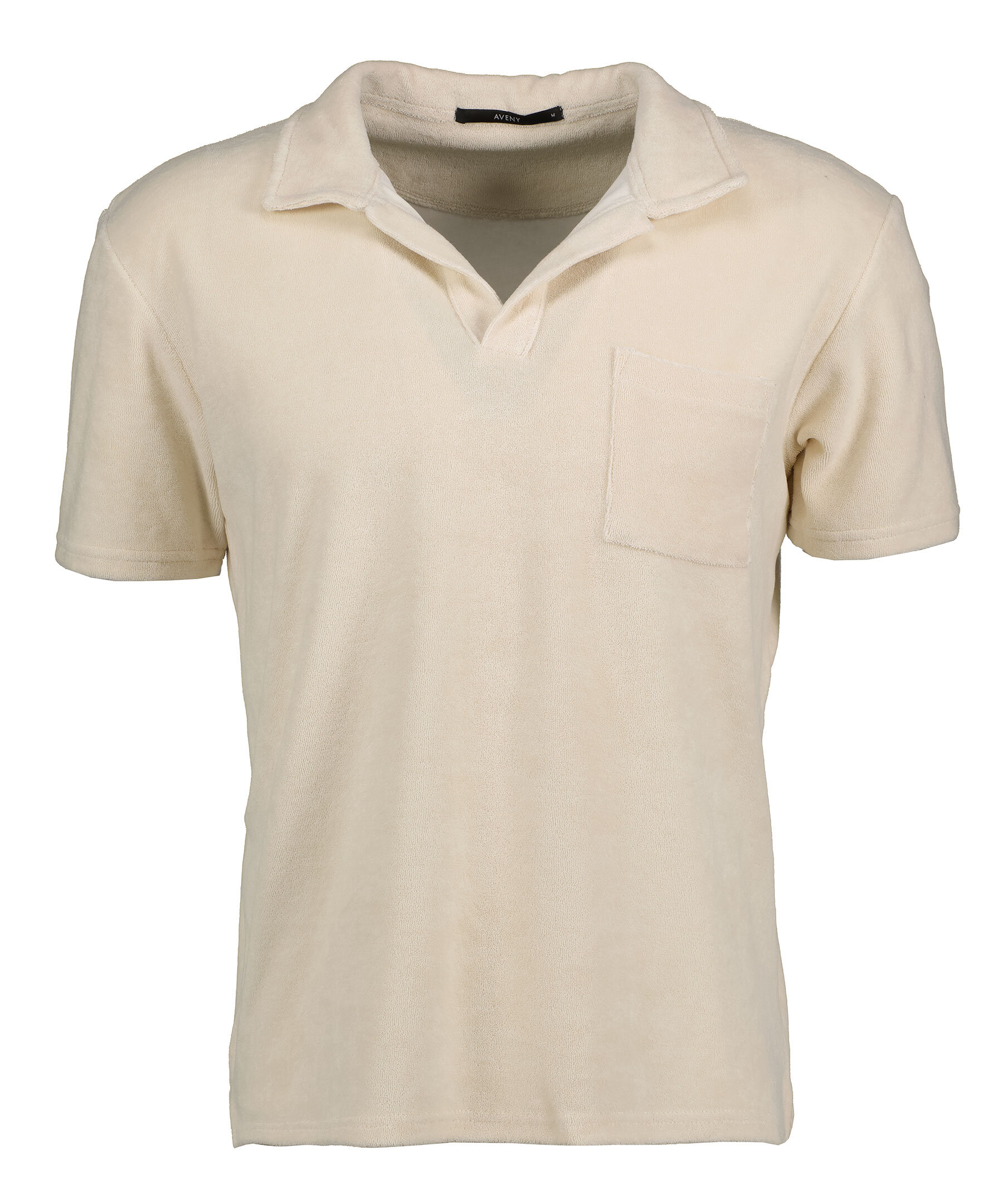 Benvit, klassisk handdukspikétröja från Aveny. Tillverkad i en bomullsblandning. Klassisk krage, rak avslappnad passform med en ficka på vänster sida. Normal i storlek och avsedd för ett vanligt snitt.
