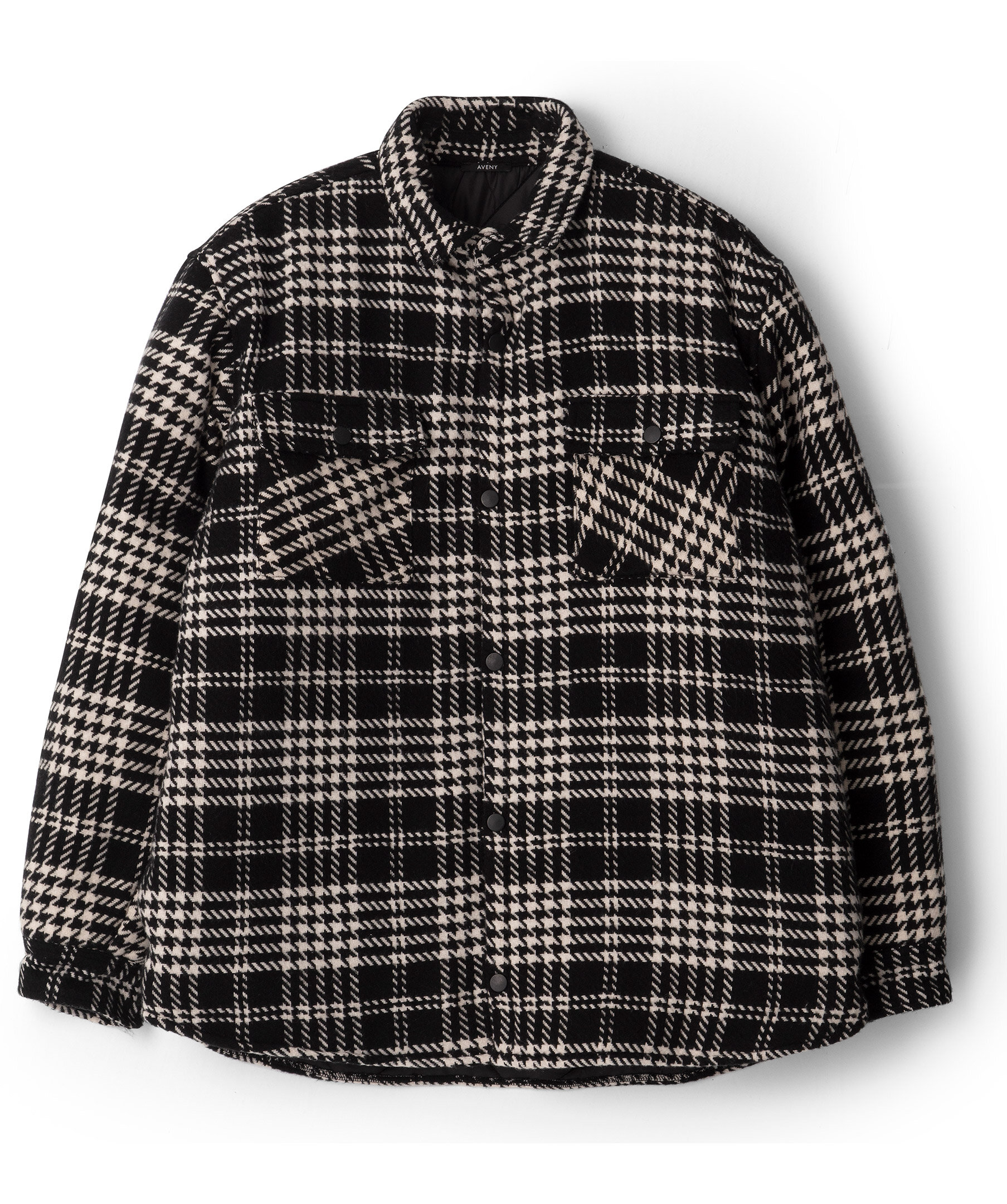Svart och vit hundtands mönstrad overshirt från Aveny. Stängs framtill med knappar. Två bröstfickor som stängs med knappar. Enkla manschetter.